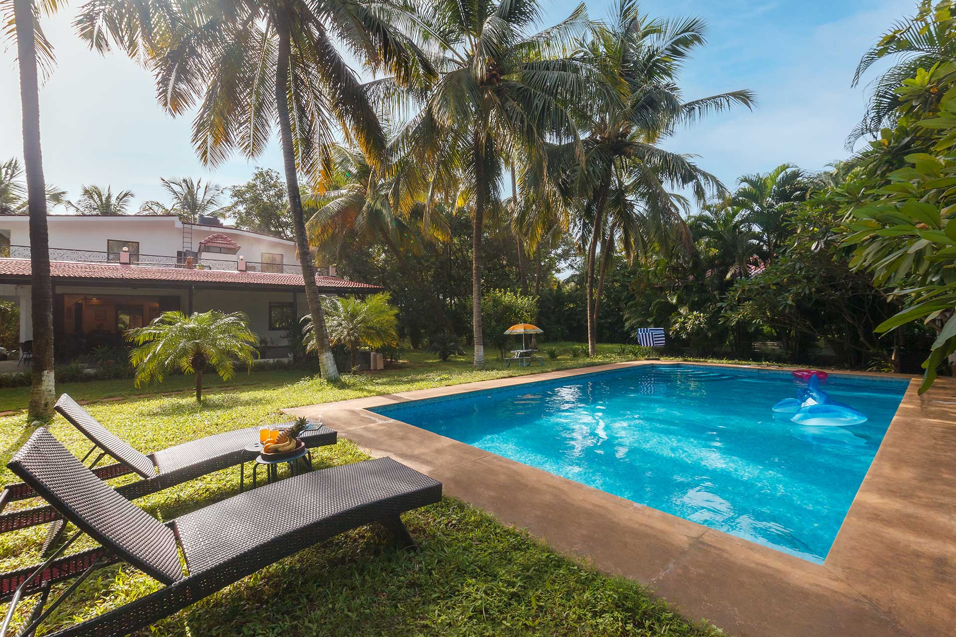 Enter through the gates of this blissful holiday home and welcome green verdancy, swaying palm trees...