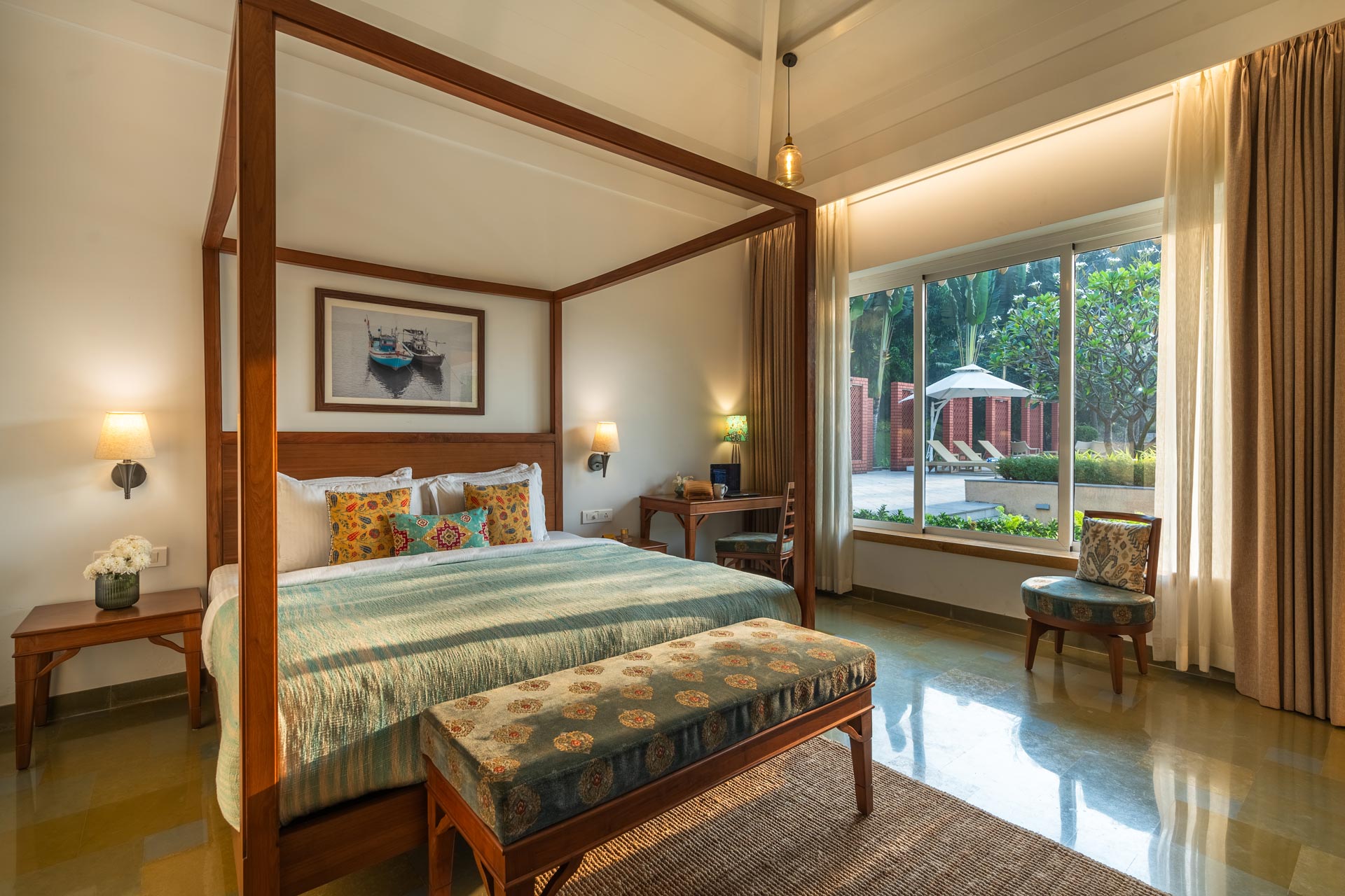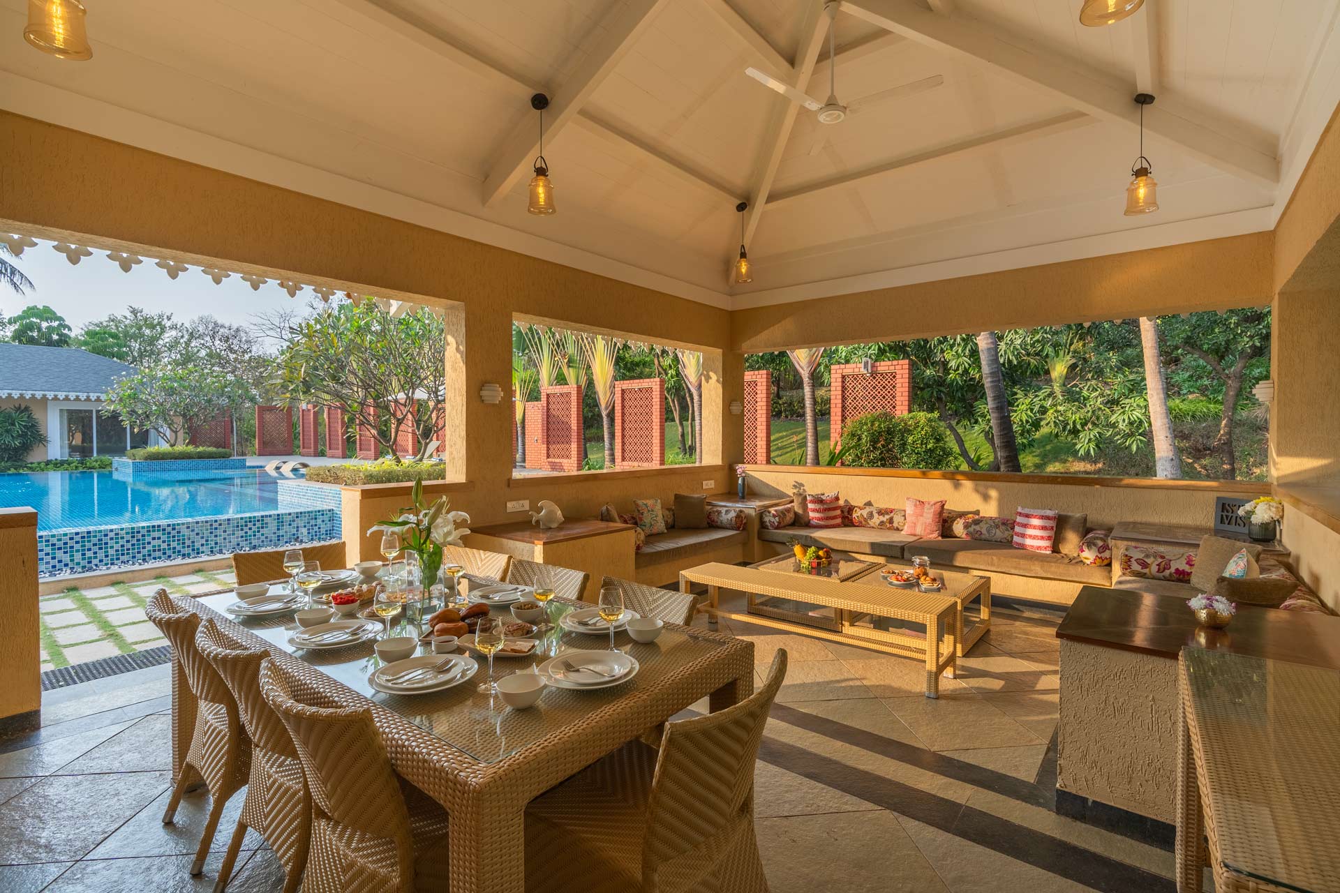 Swing a little further from Alibaug and you’ll encounter what is truly one of the most extravagant homes to take over as your own. Framed by meticulously landscaped gardens, a glistening swimming pool and greenery aplenty, this gorgeous boutique stay located between Alibaug and Roha rivals the splendour that surrounds it. At Amara, a sense of solidity is prevalent: large open deck, ample social areas, gallery-like interiors, and sunshine flooding through the glass walls makes it a sensory experience.