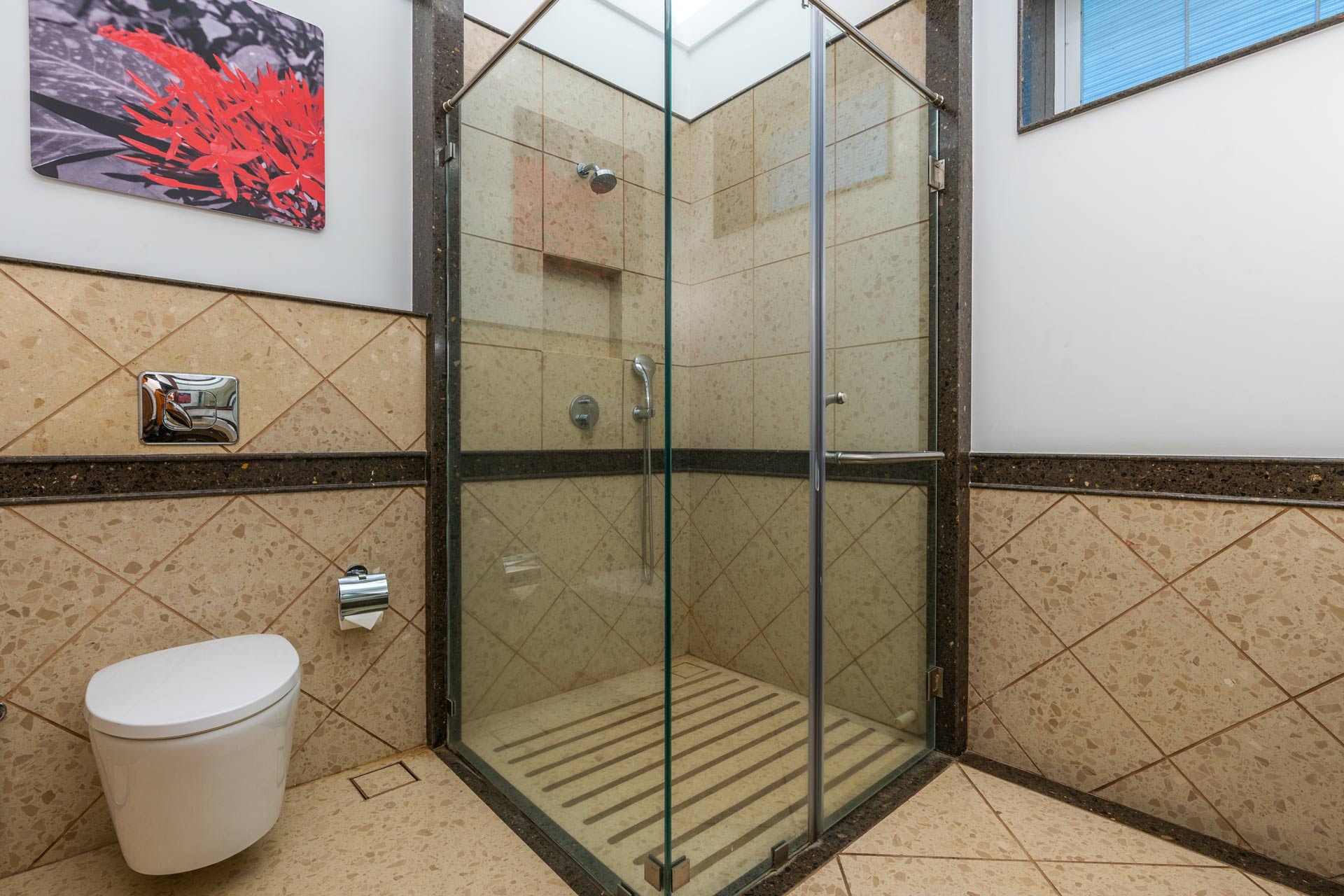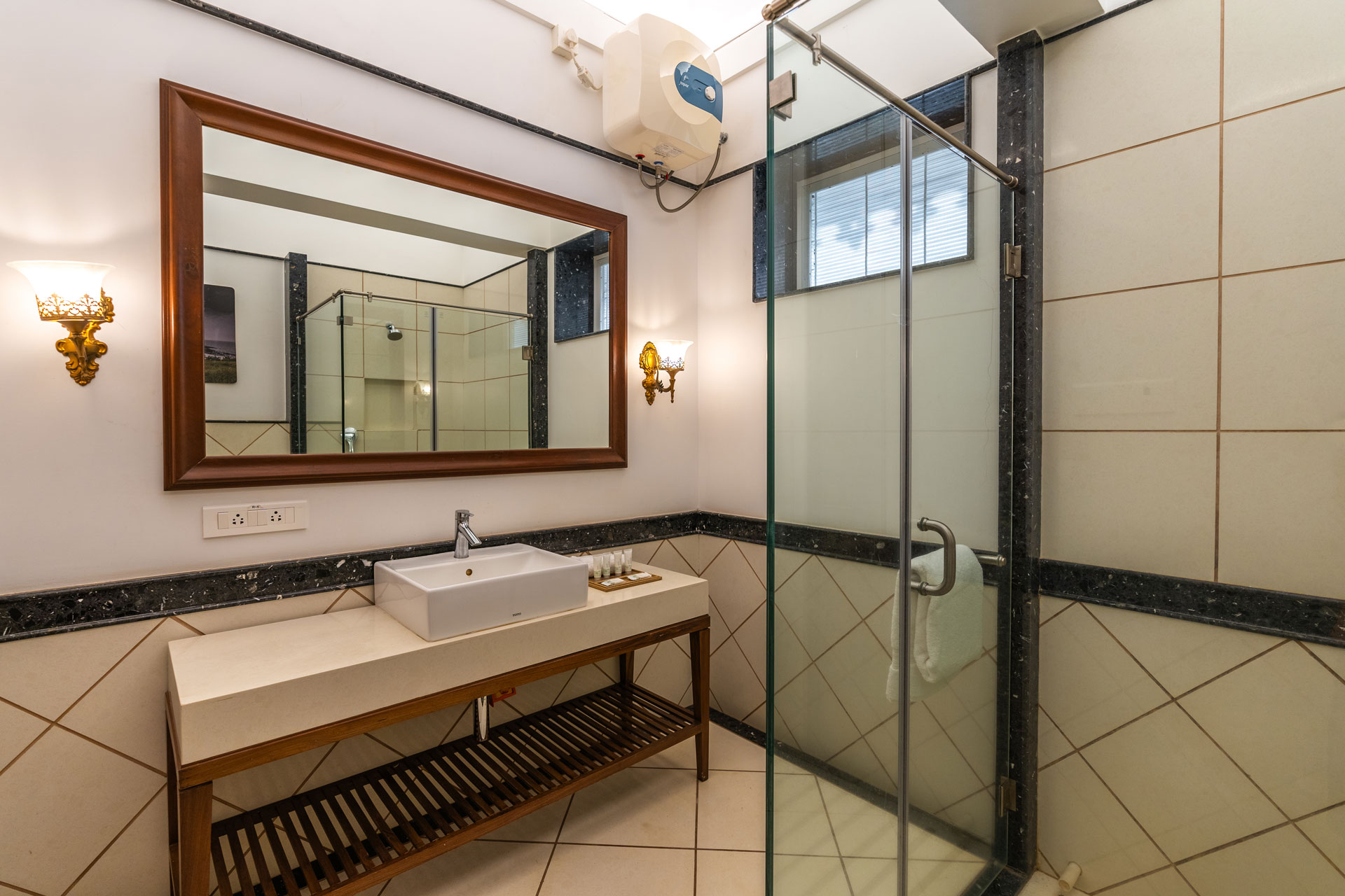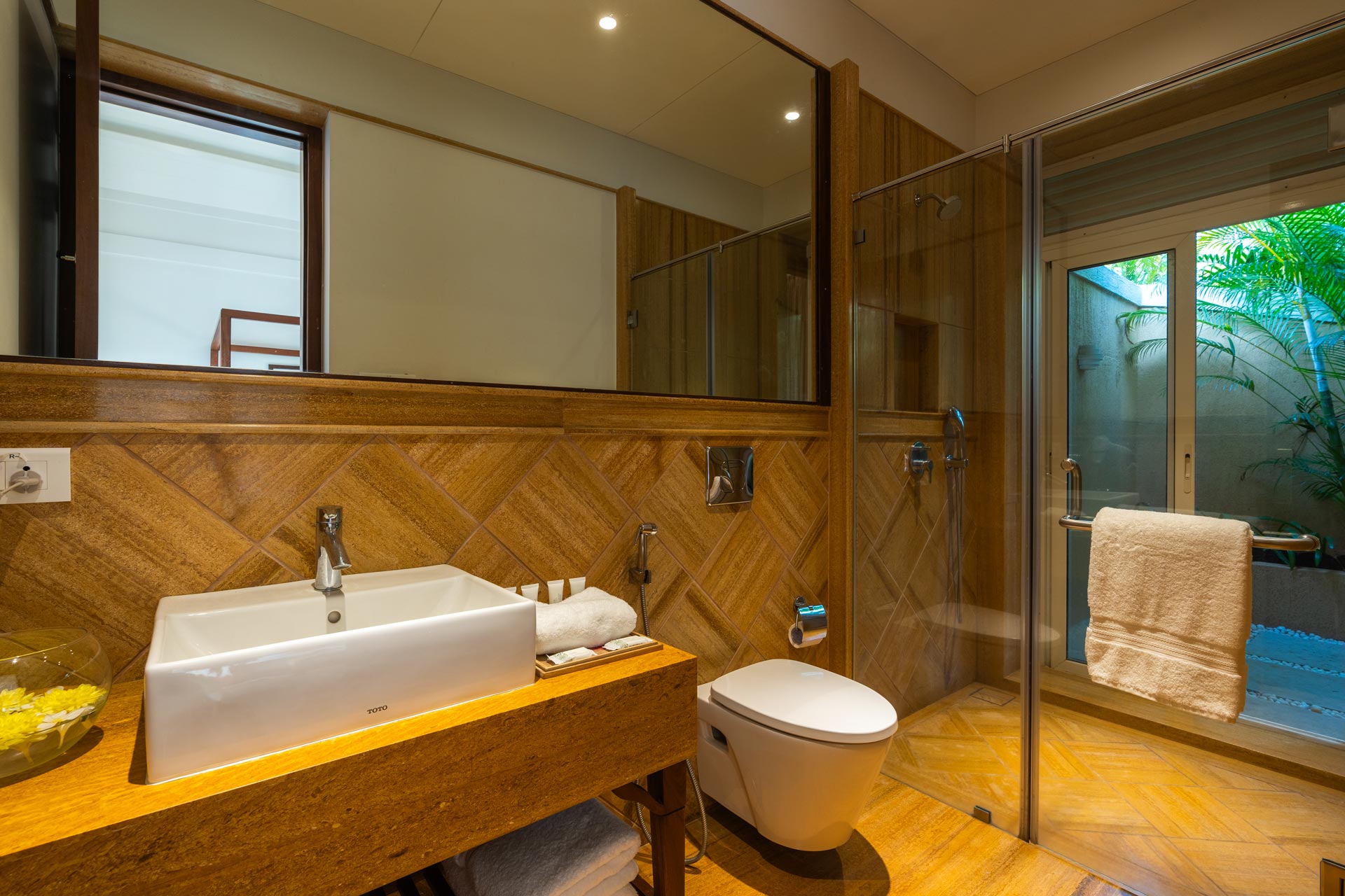 – There are 9 bathrooms in the villa – 8 attached, equipped with geysers, towels and basic toiletries, and 1 poolside common bathroom.