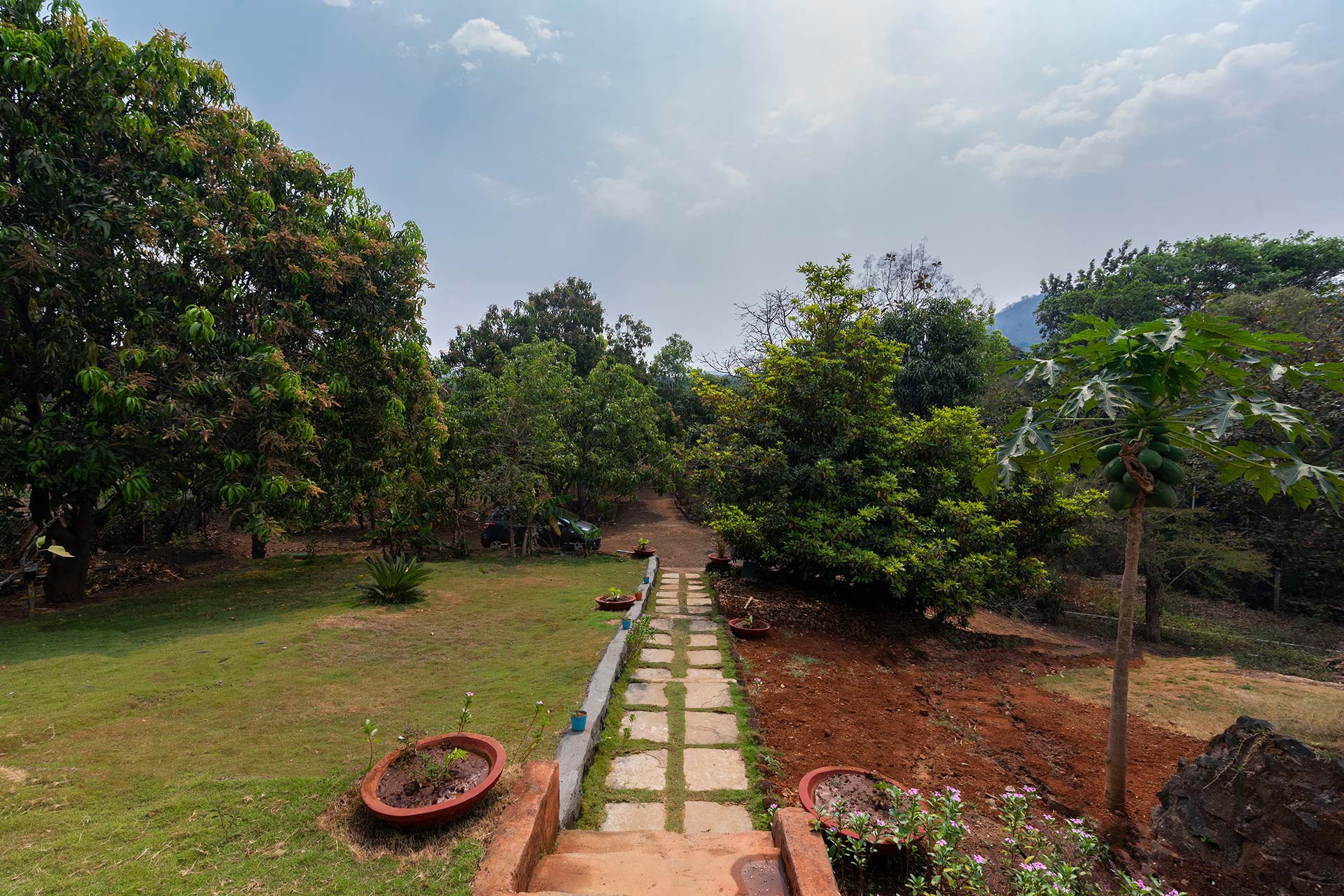 – The exteriors of the property boast a beautiful lawn, 4000 sq. metres in size.