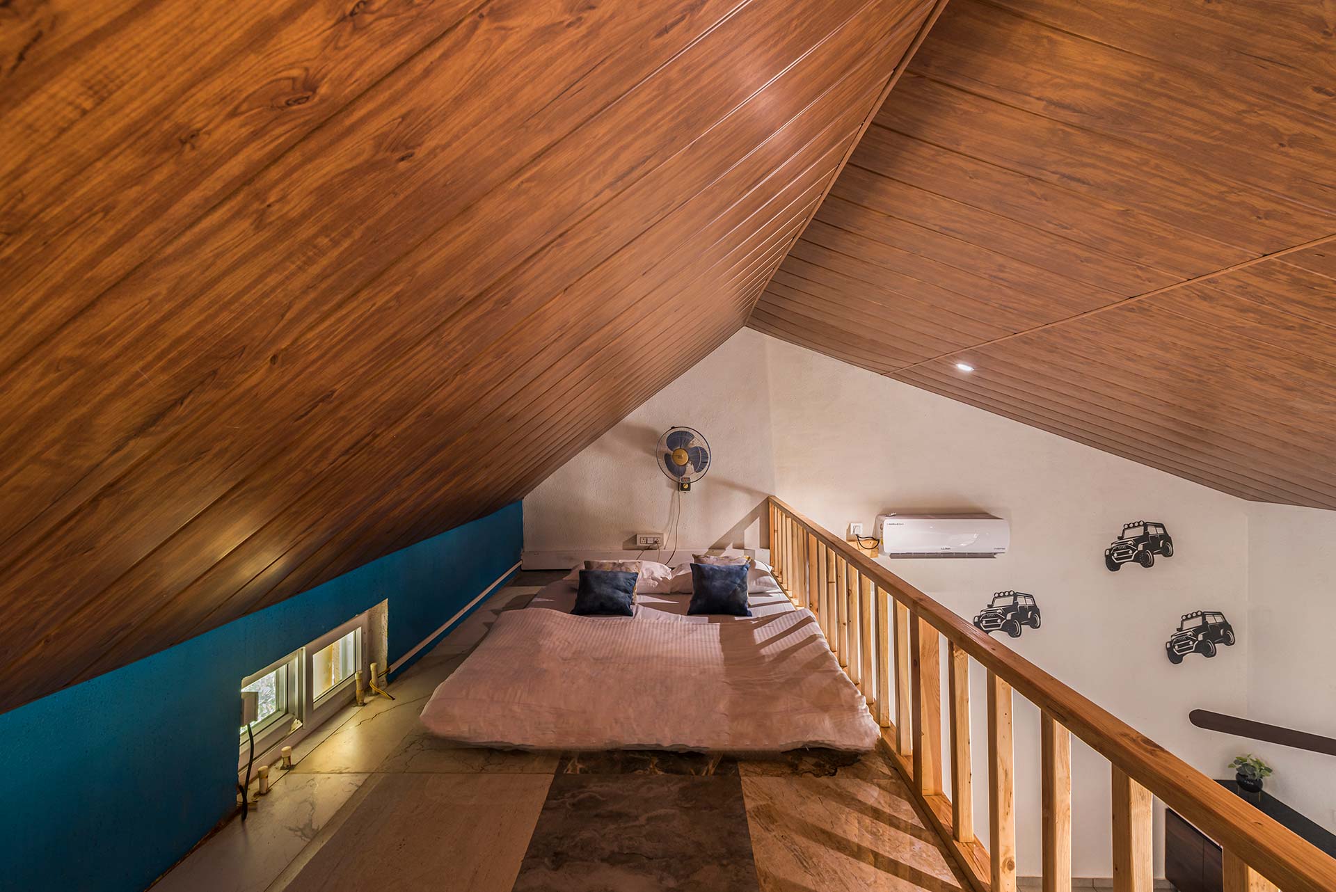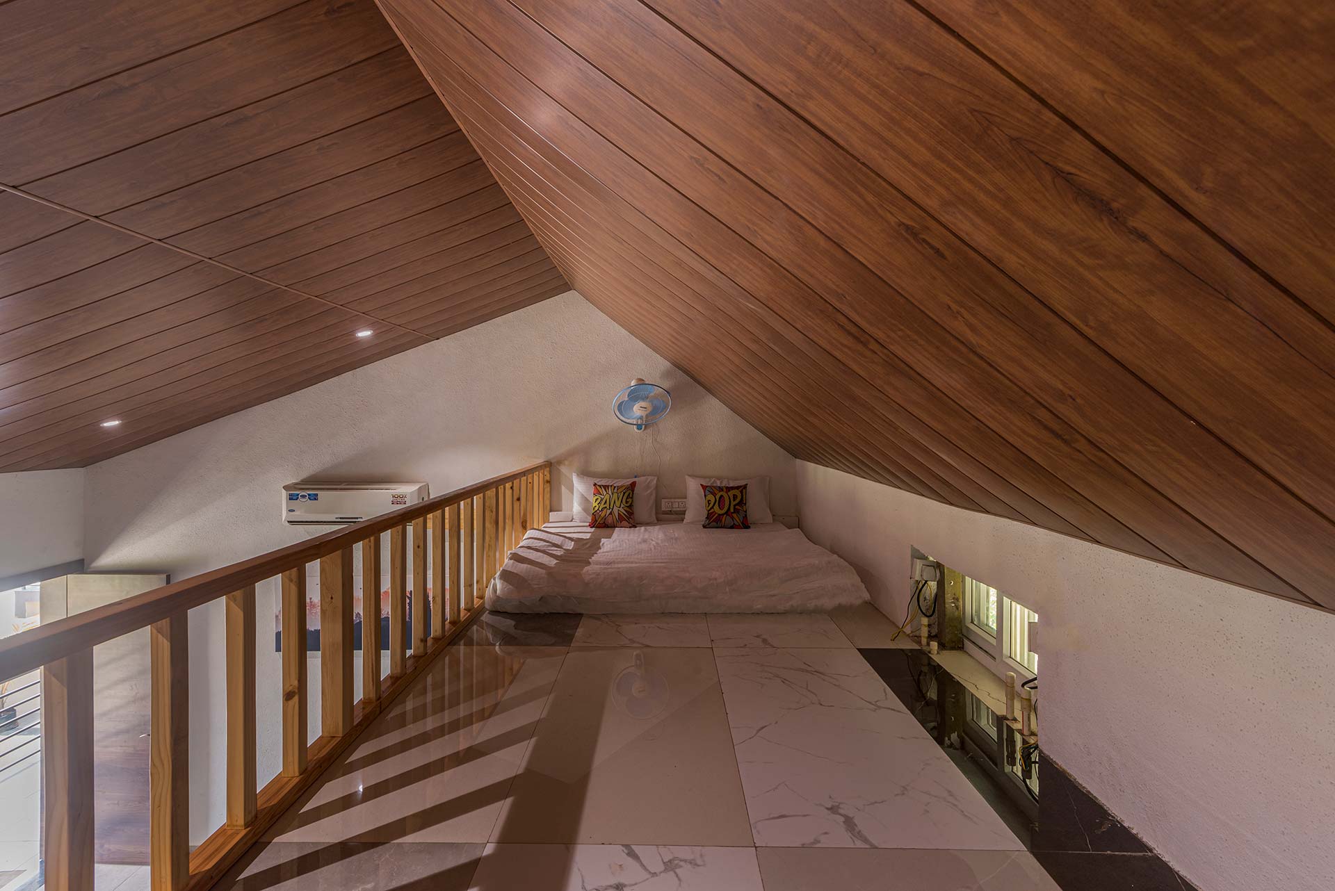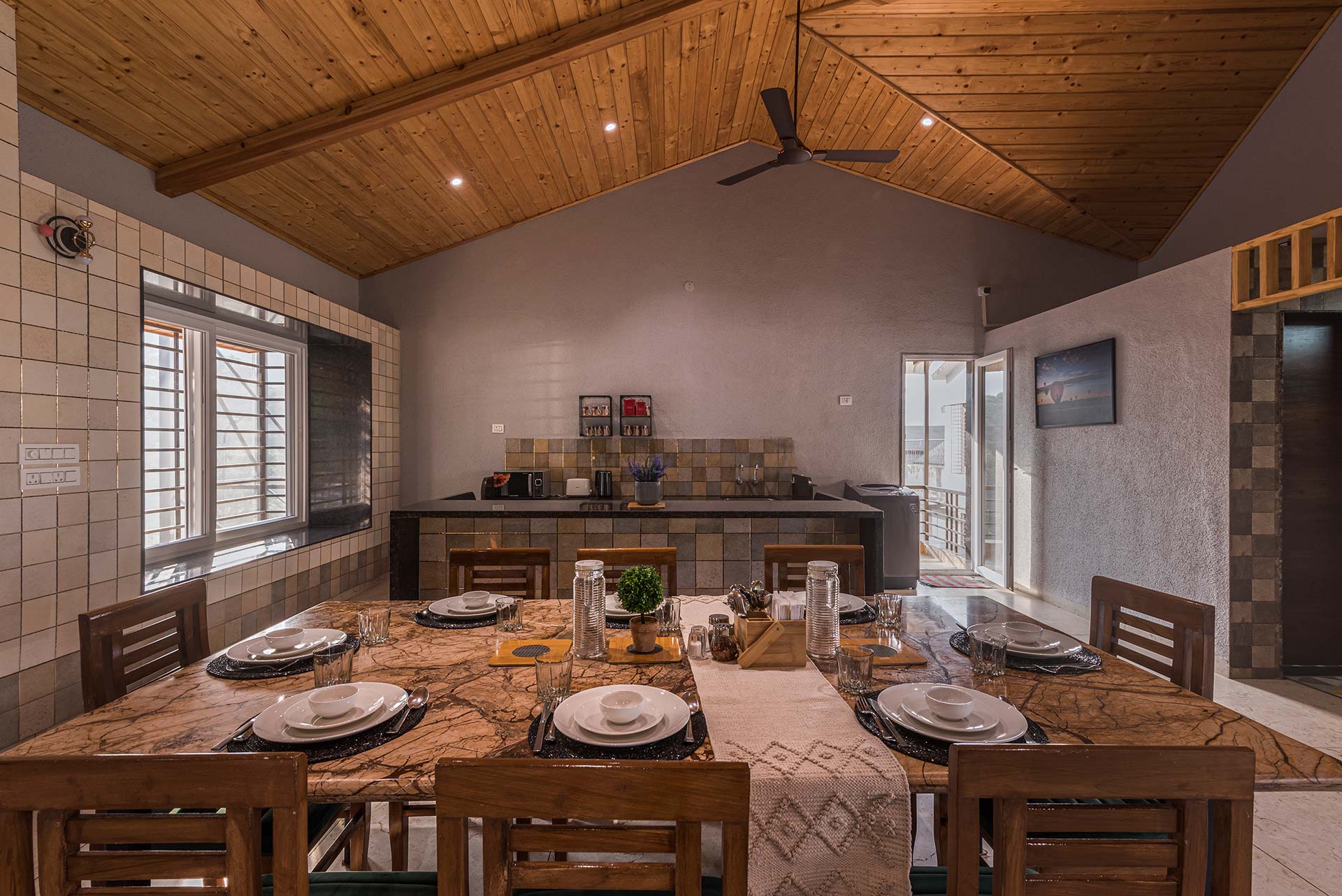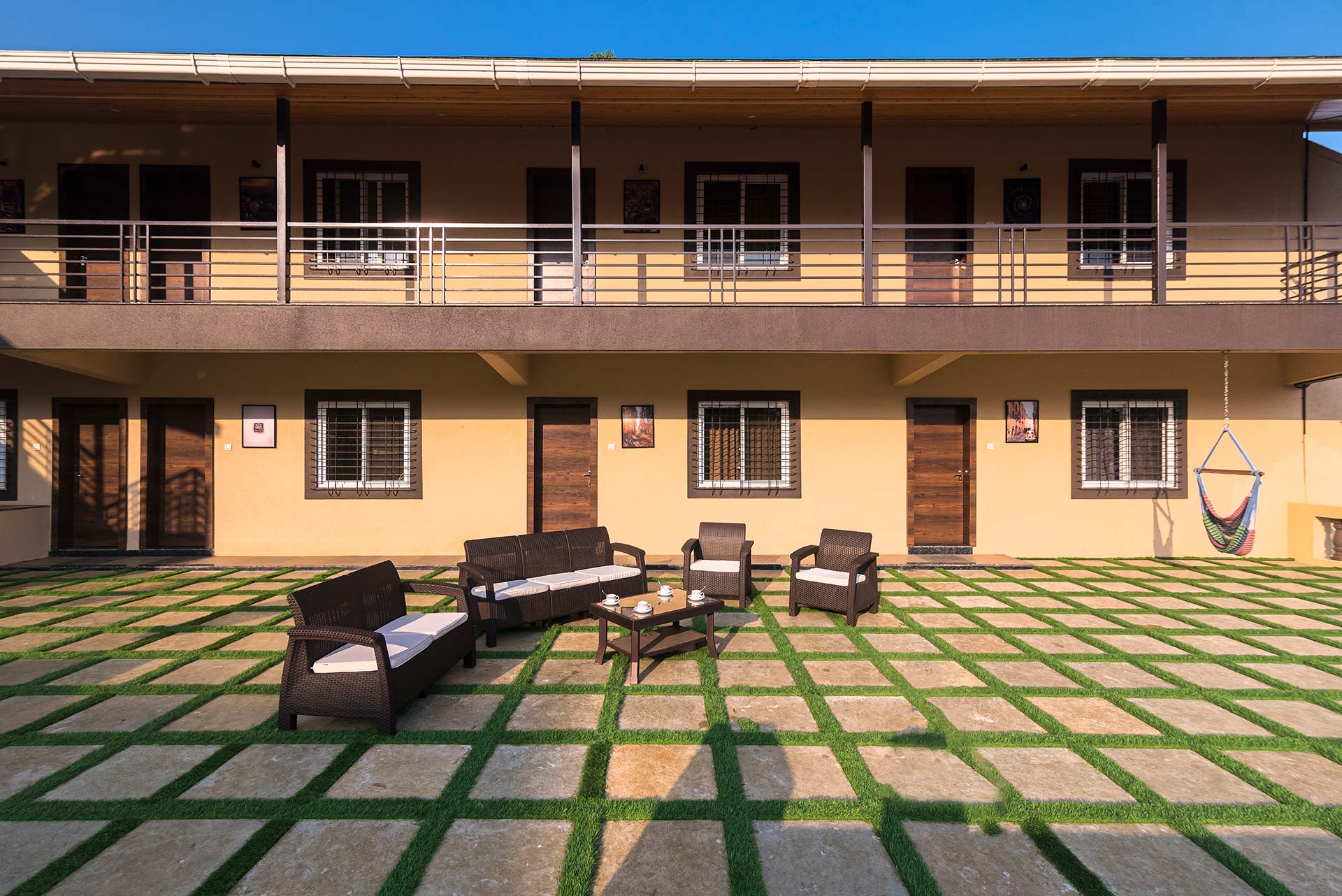 – Each room exuding a warm yet vibrant aura, is replete with a range of modern amenities such as a king-sized bed, extra mattresses, AC, Wi-Fi access, wardrobe, and an electric kettle.
