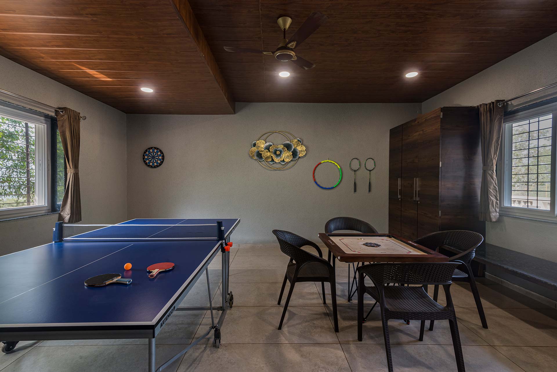 – Designated games area with table tennis, carrom, and more