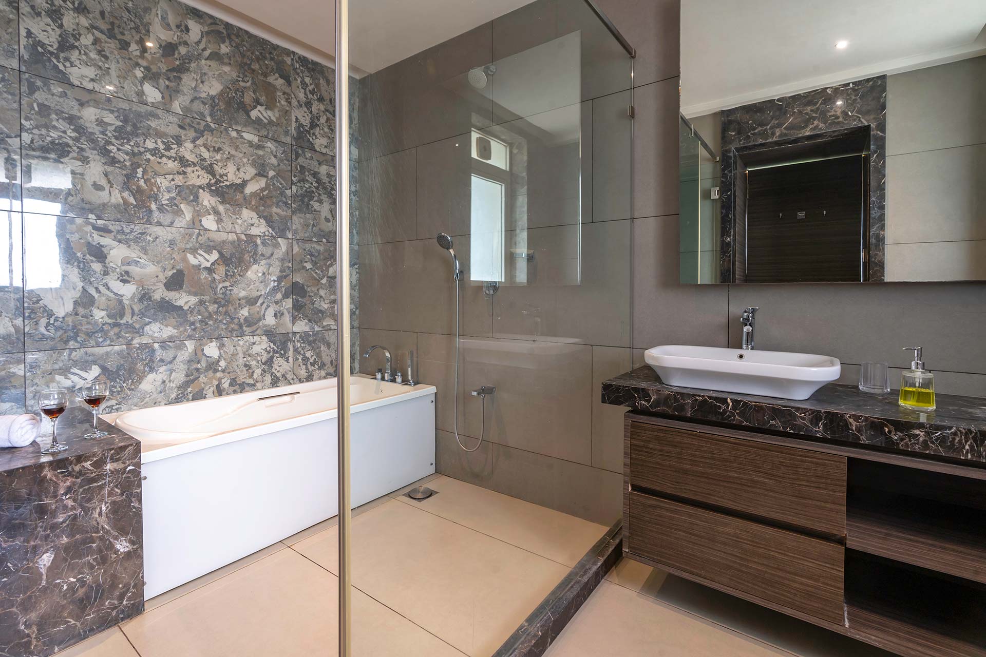 – One of the bathrooms in each unit is equipped with a bathtub, while the other one offers a jacuzzi.