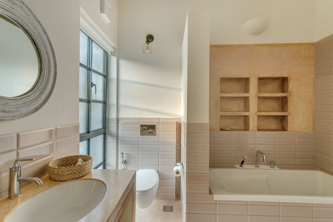 - Modern fixtures and mirrors