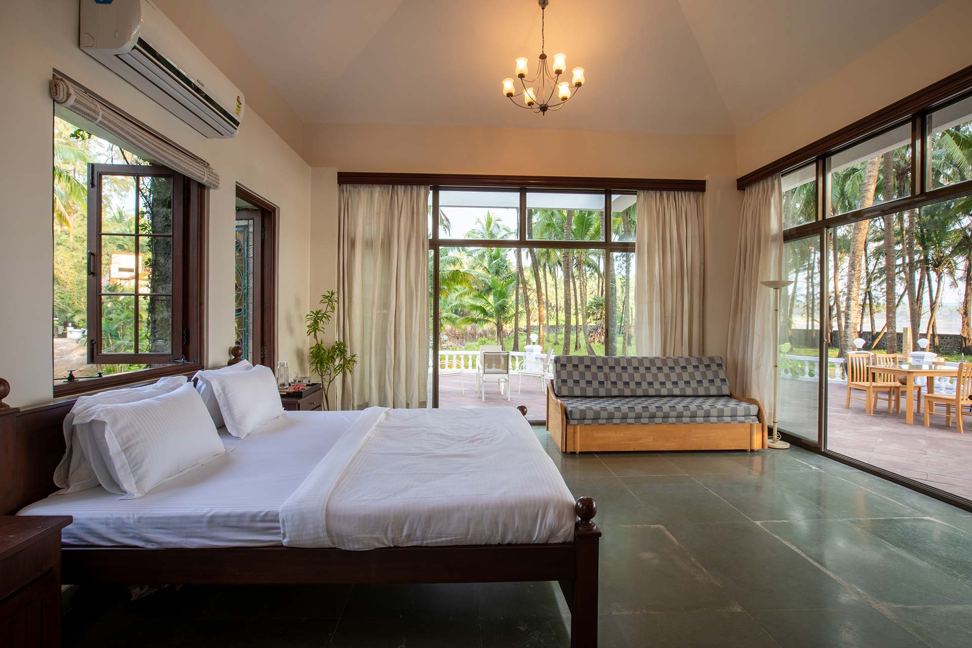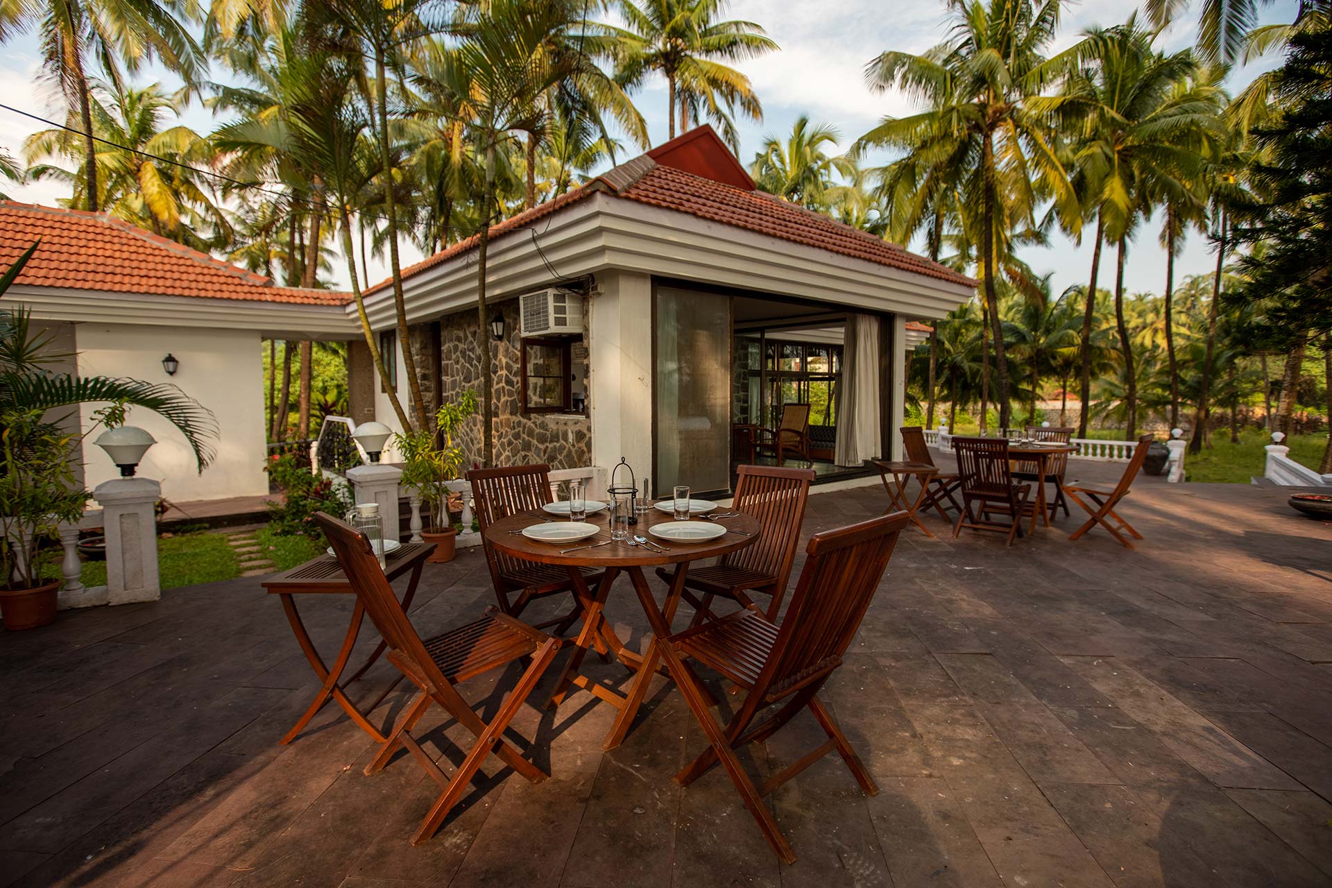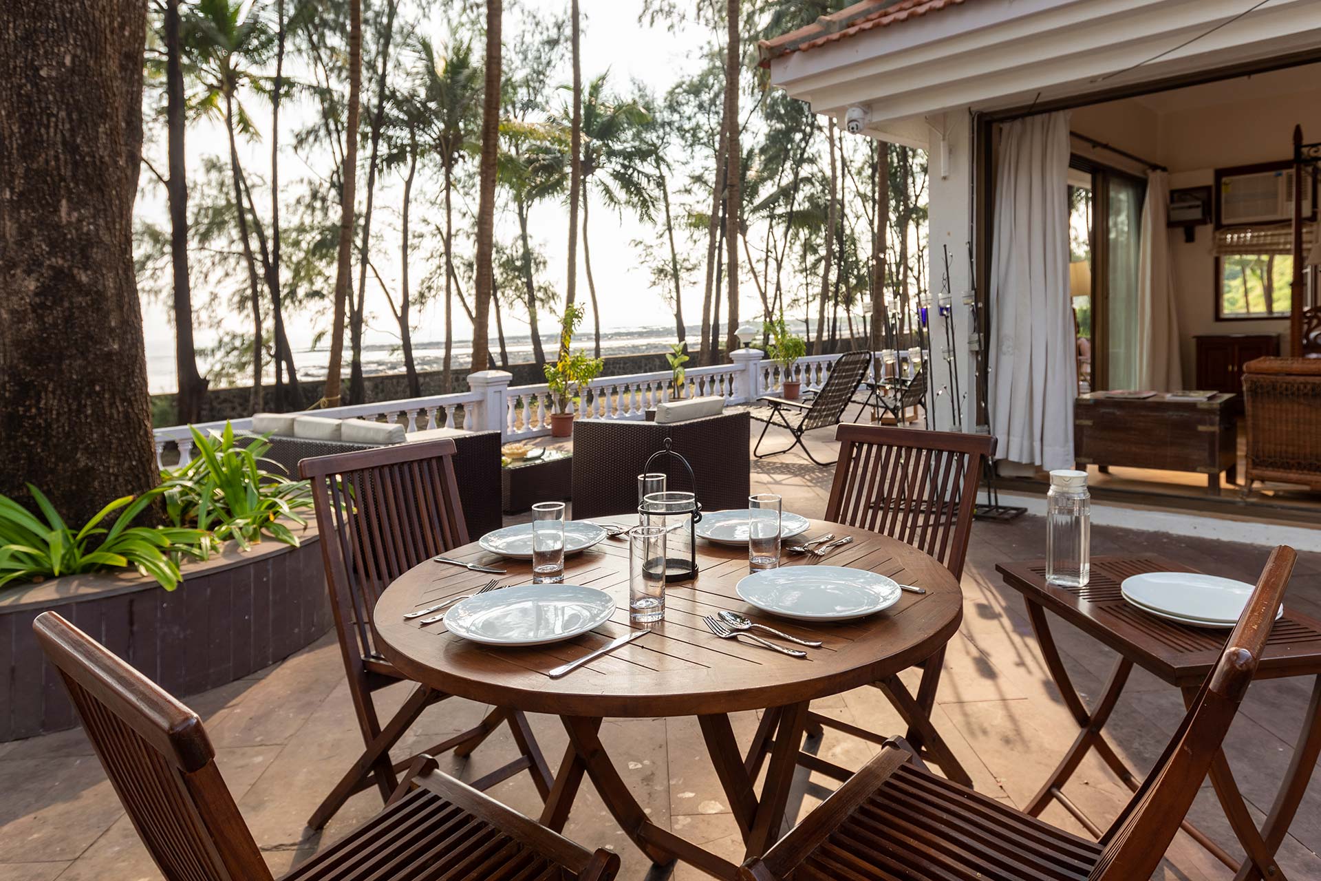 • Please note that the dining set-up will be moved into one of the bedrooms in case of heavy rains, as the patio is open-to-sky.