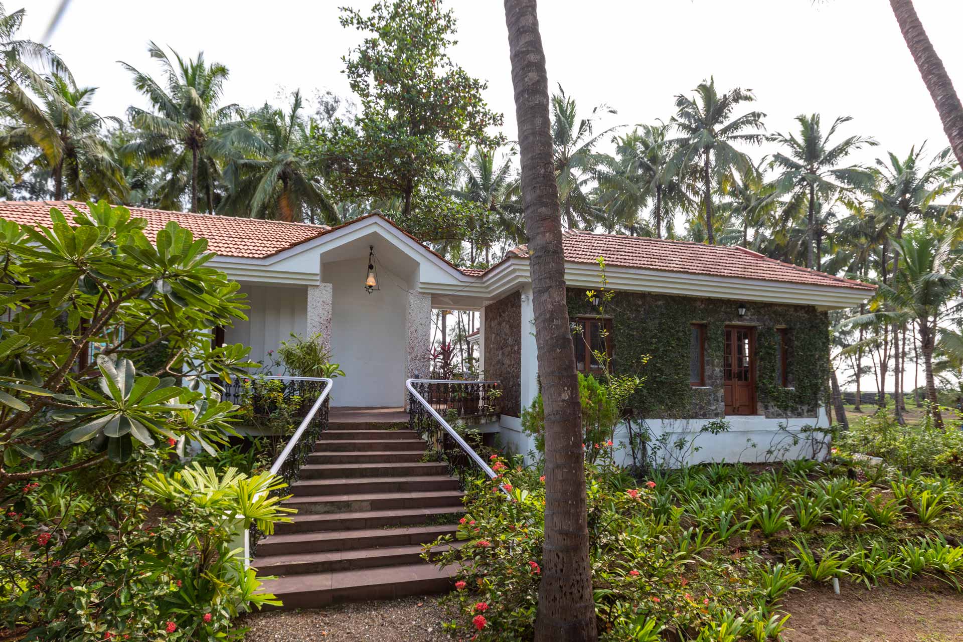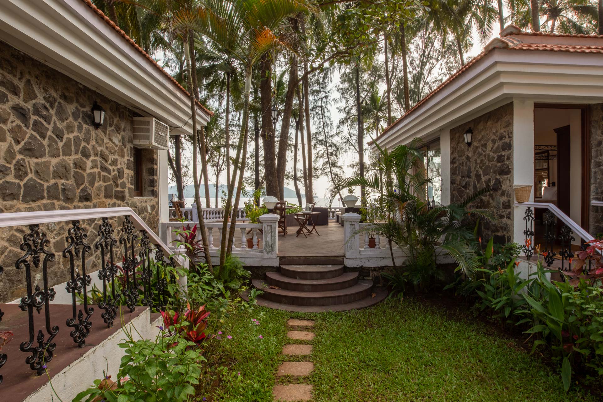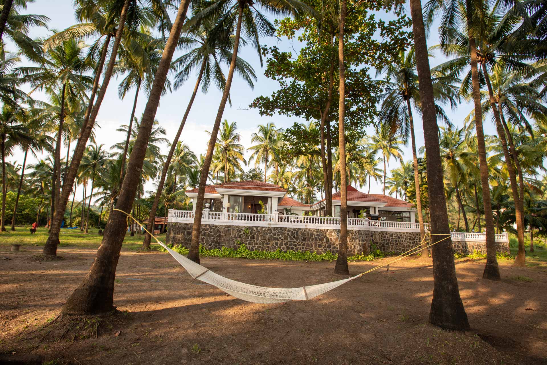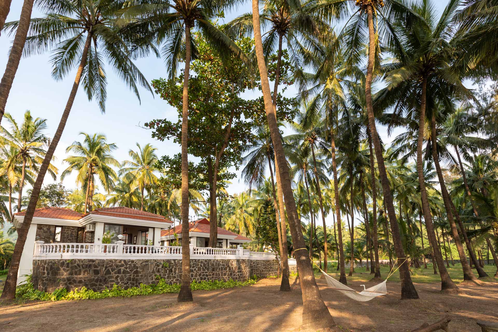 – Sprawling lawn with coconut palms.