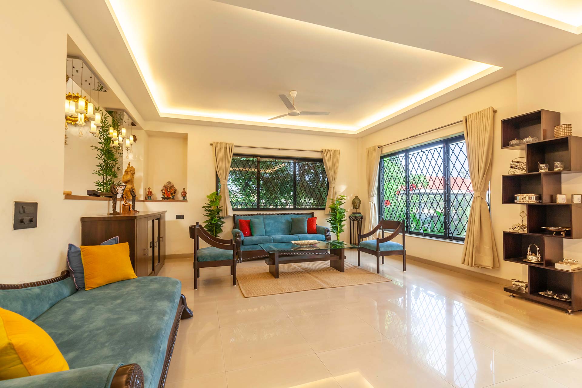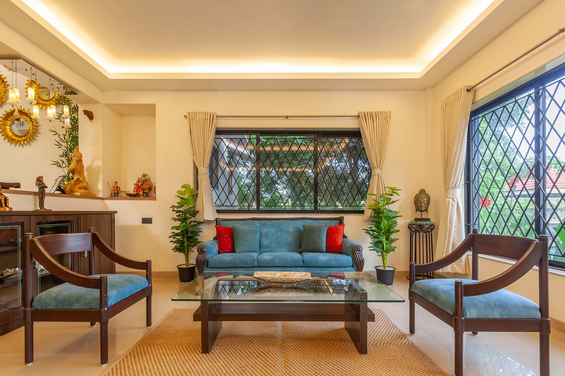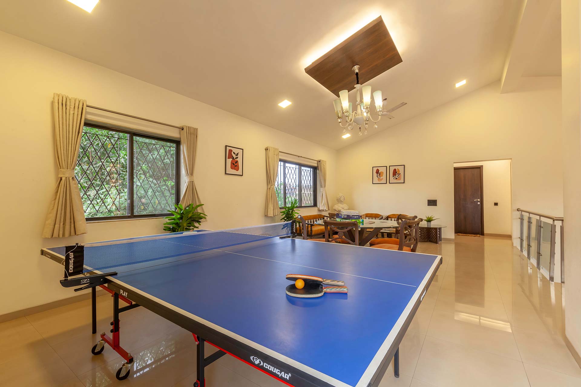 – Both the living rooms provide comfortable seating for 15 people.