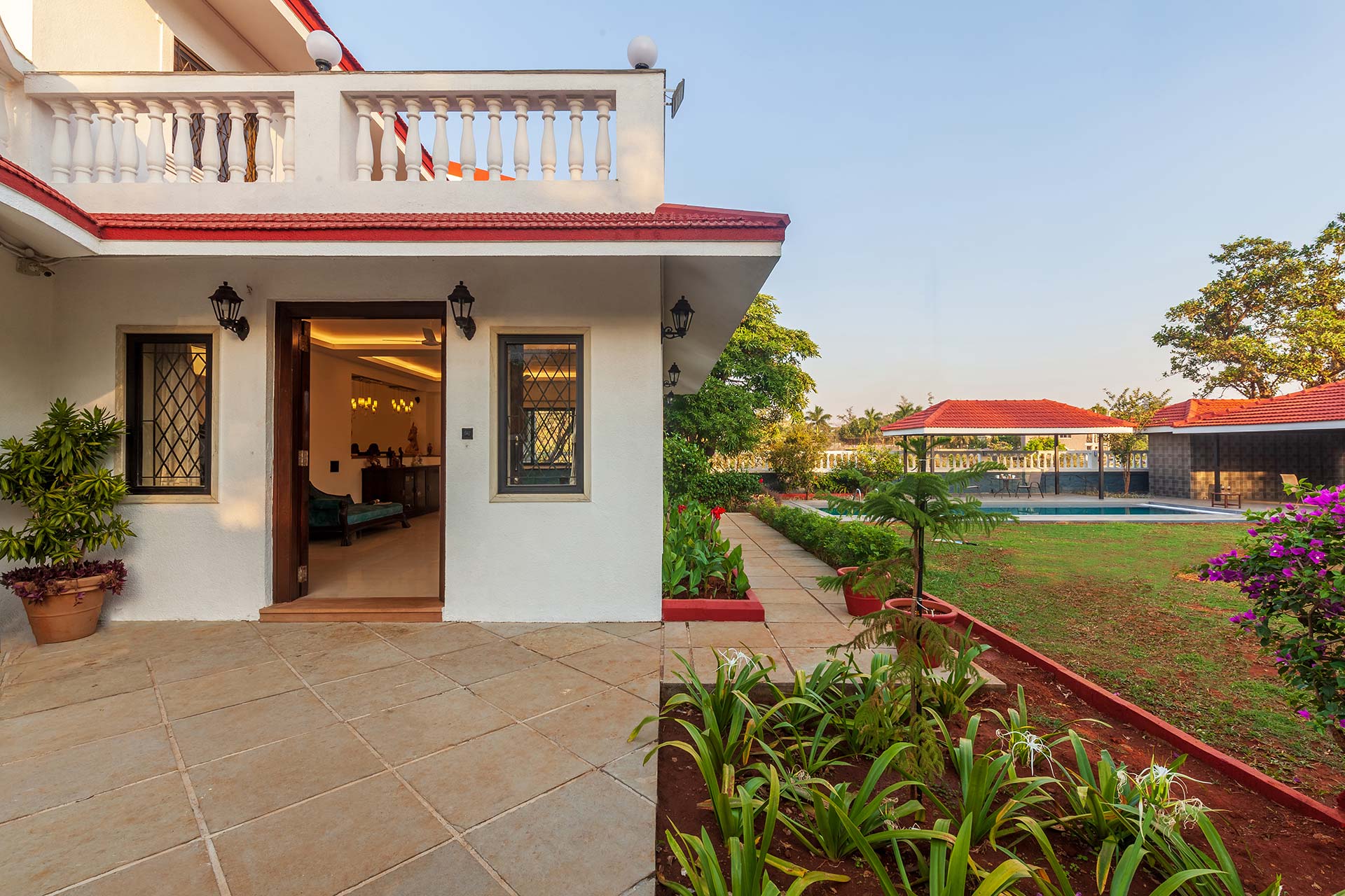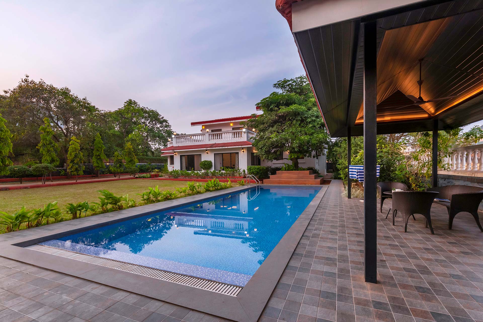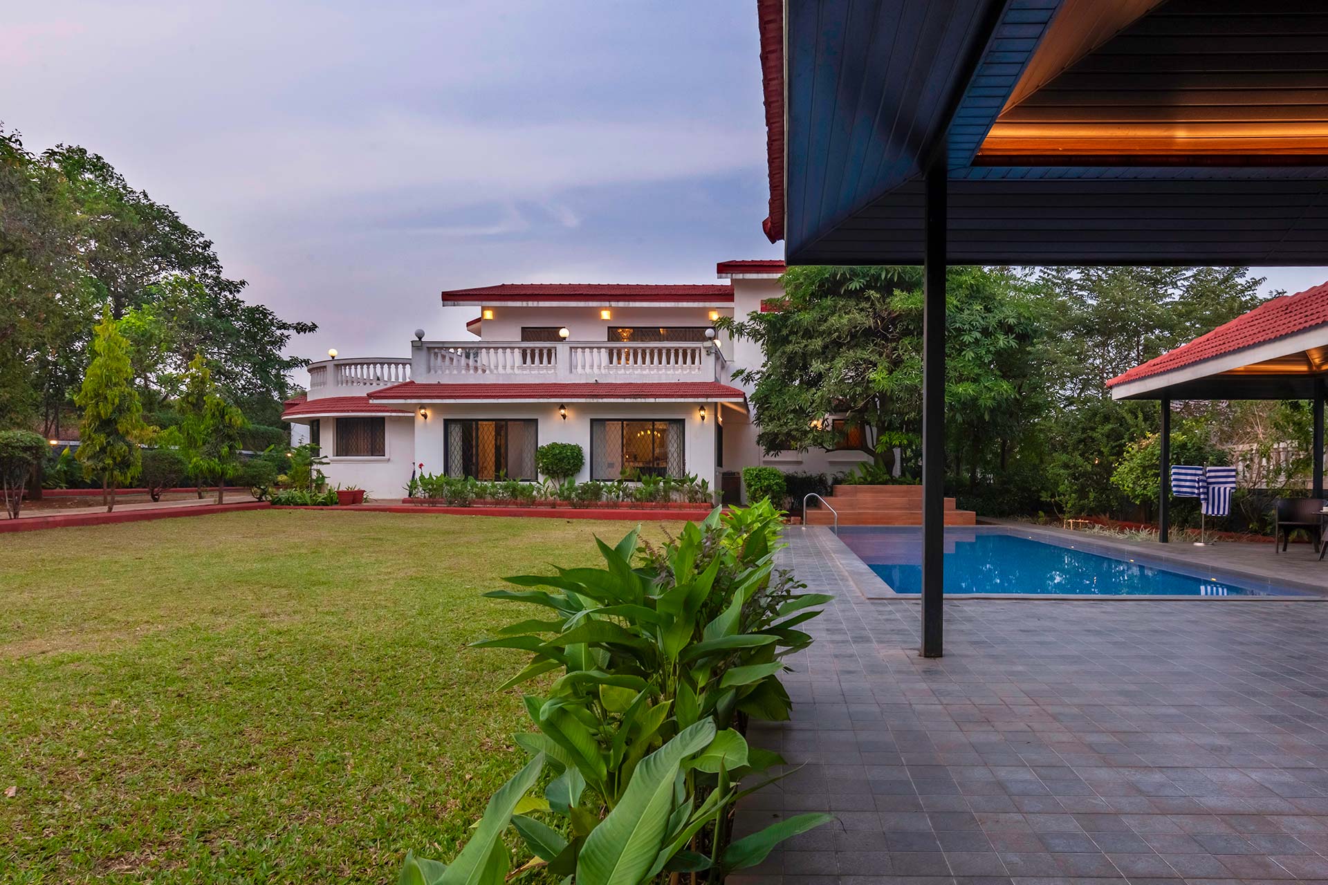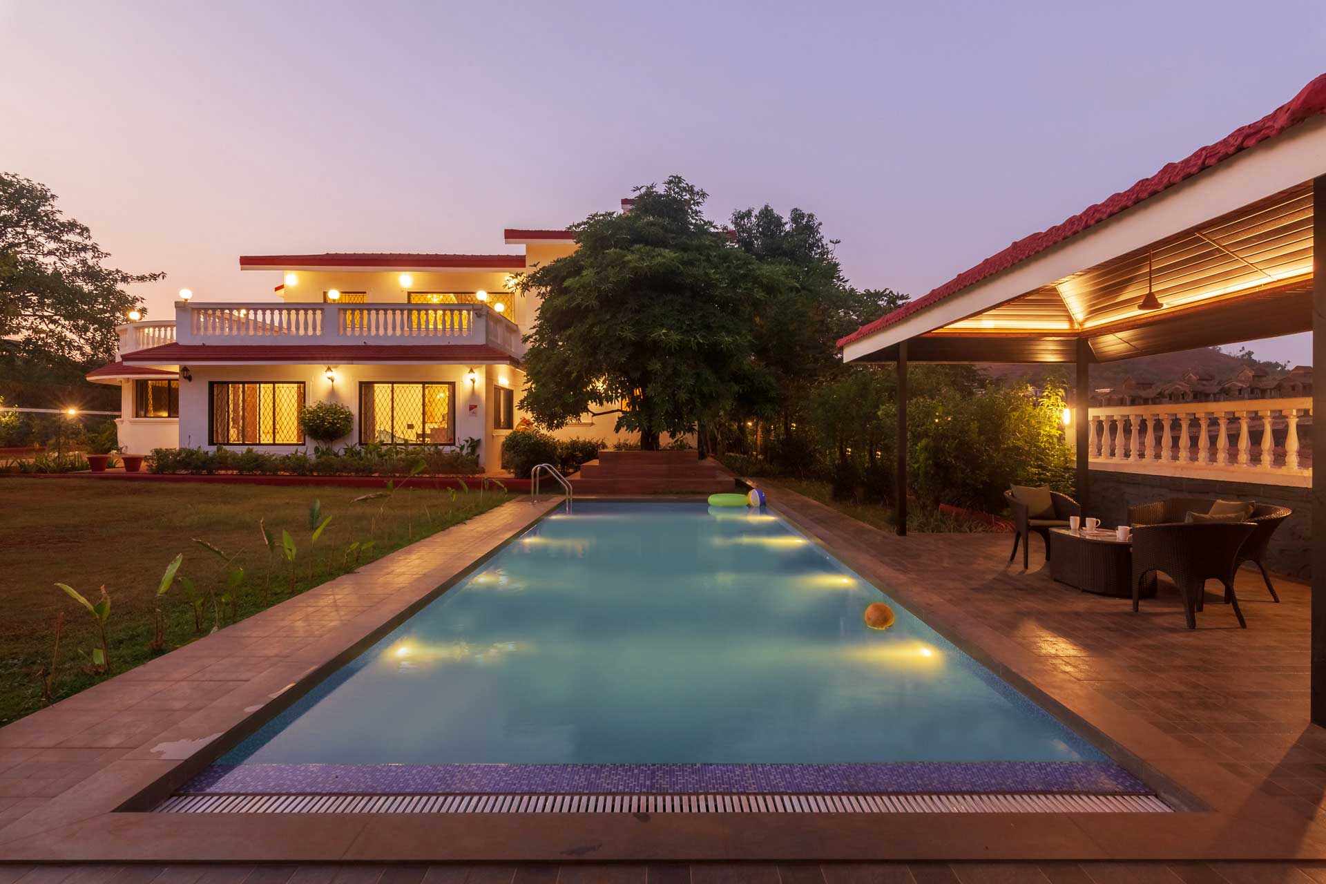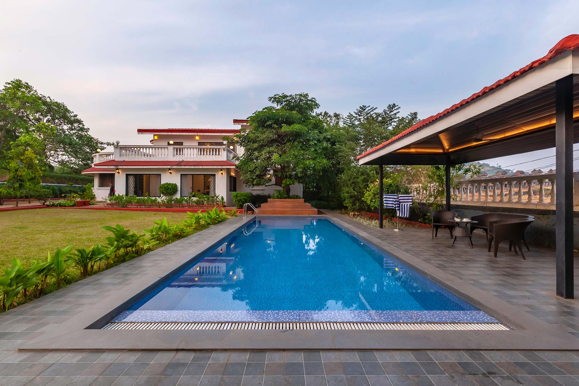 – There is a huge lawn with an attached gazebo. It can accommodate up to 12 people.