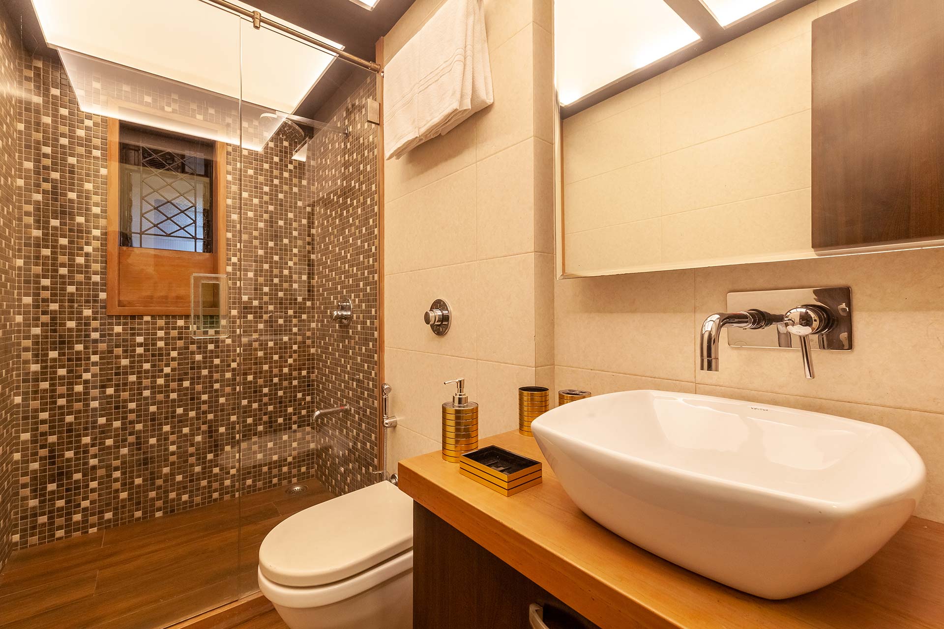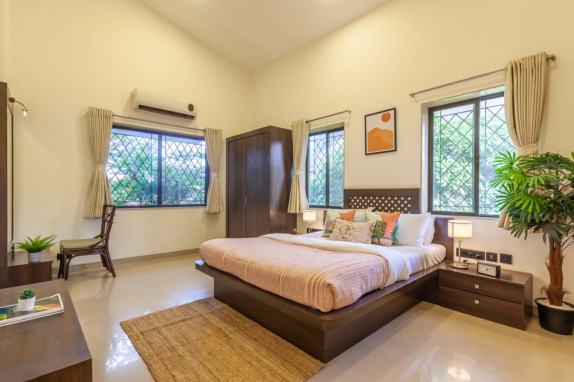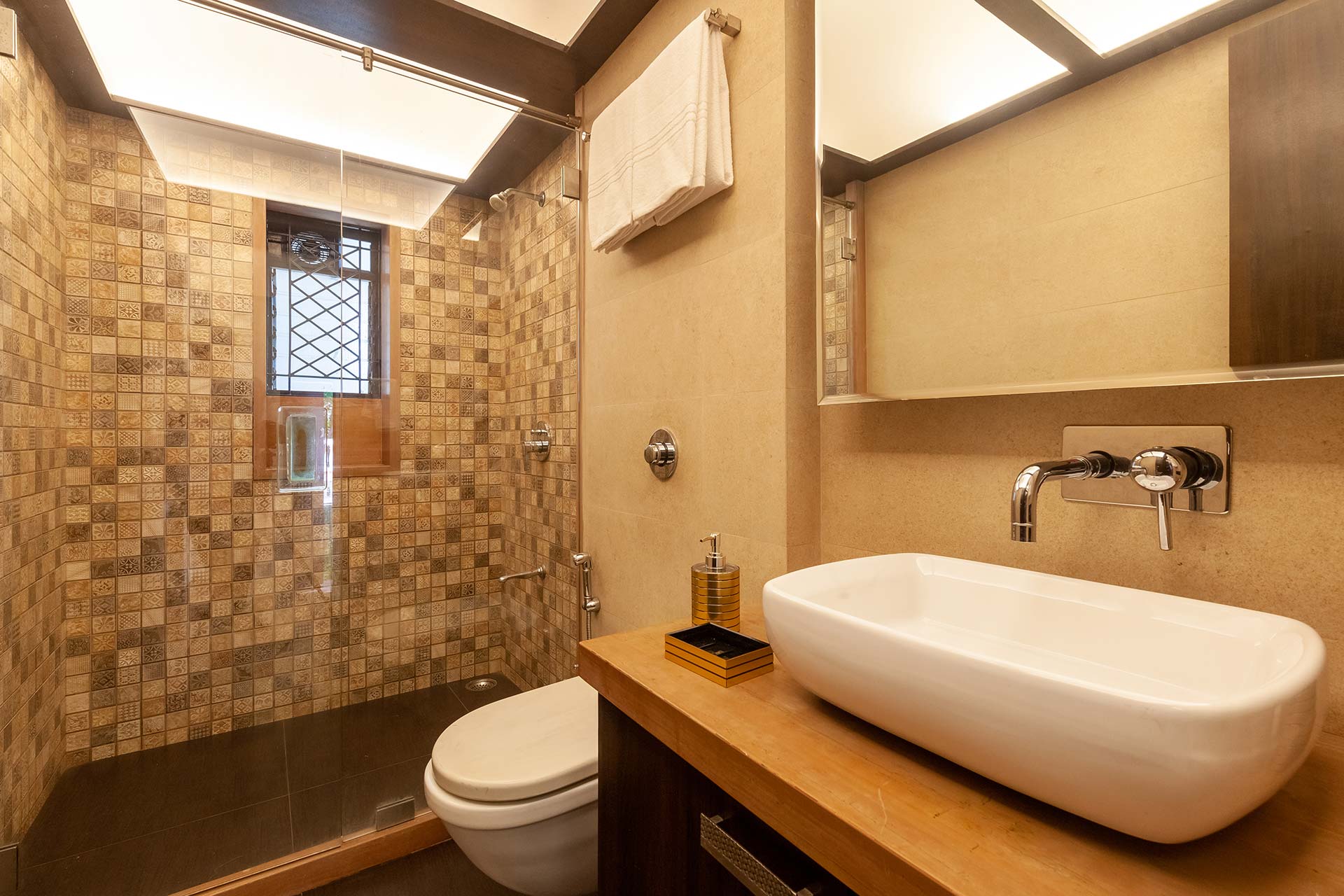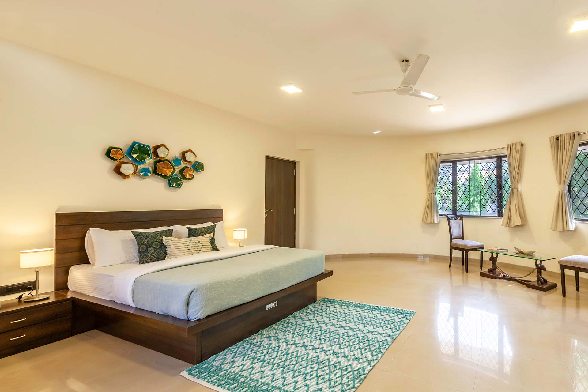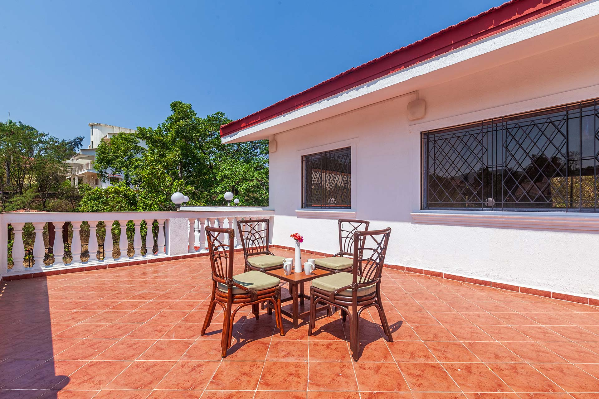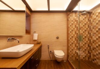 – There are 5 bathrooms in the villa – 3 attached, 2 common.