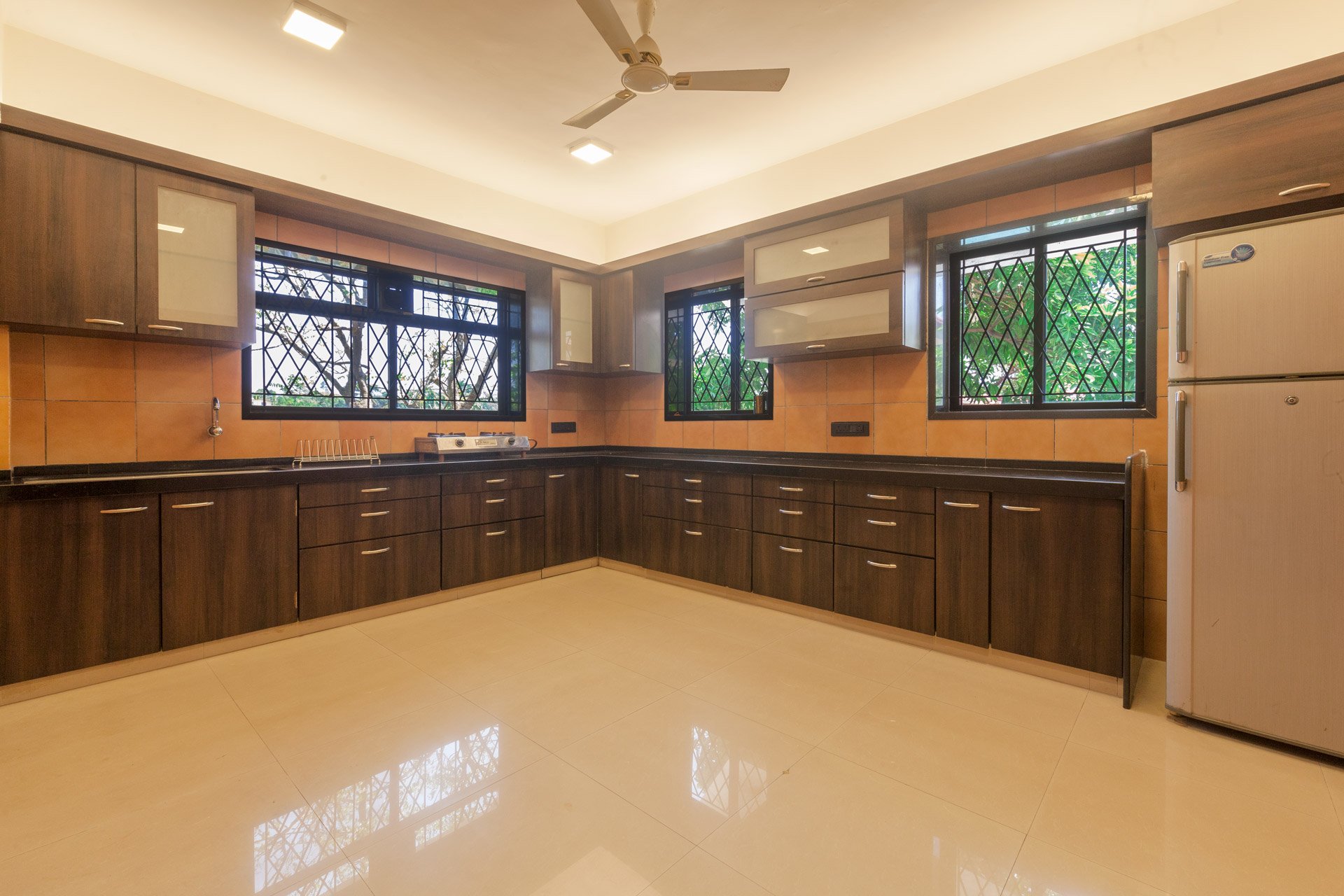 – It is equipped with a microwave, gas stove, refrigerator, water purifier and a mixer-grinder.