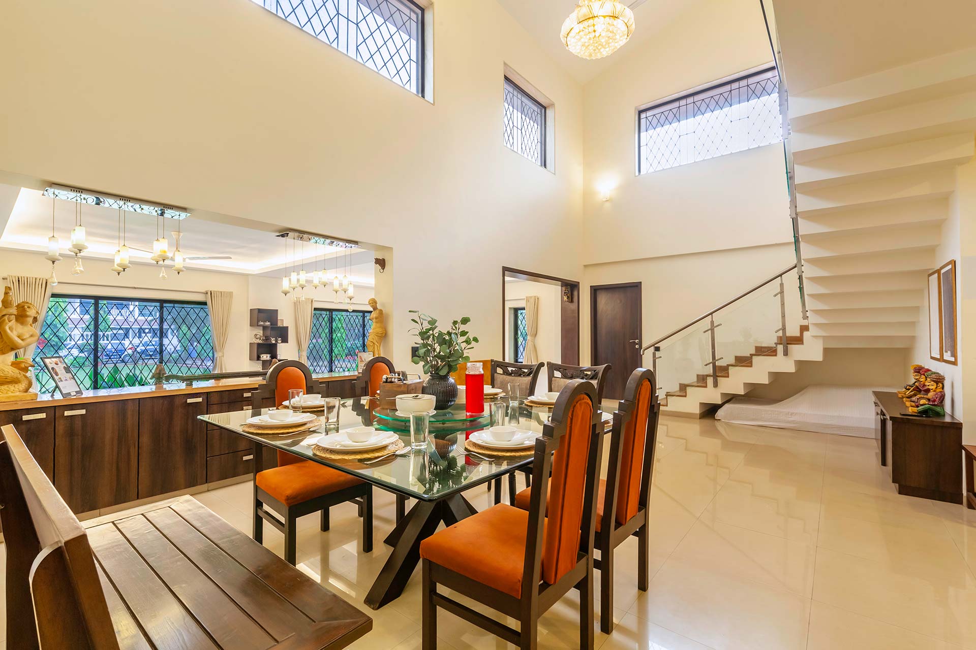 – The air-conditioned dining room is a part of the living room on the ground floor and provides comfortable seating for 8 people.