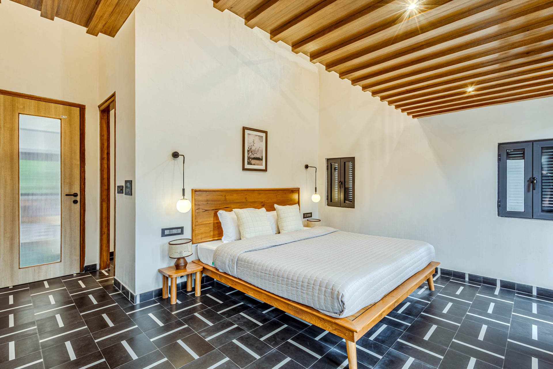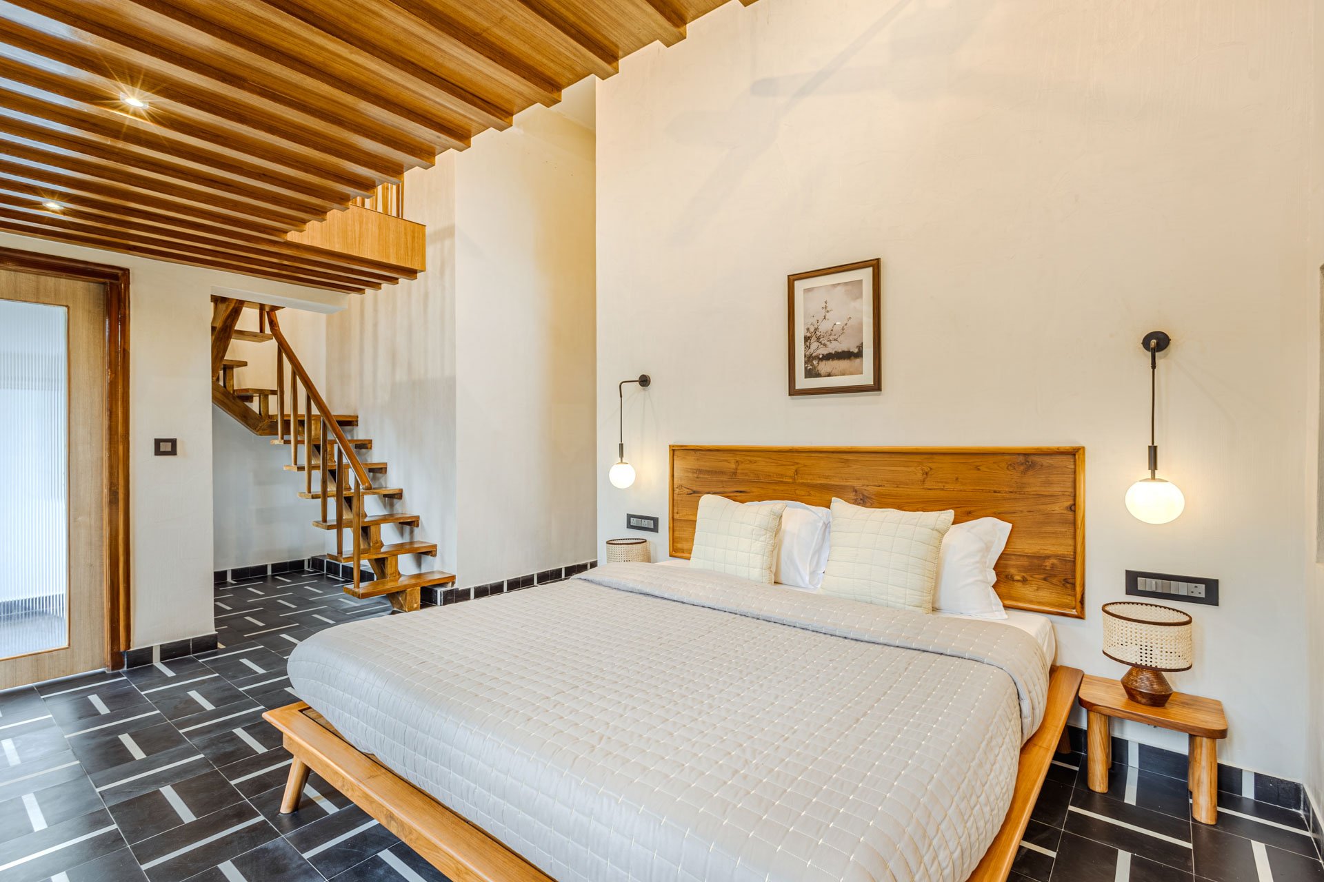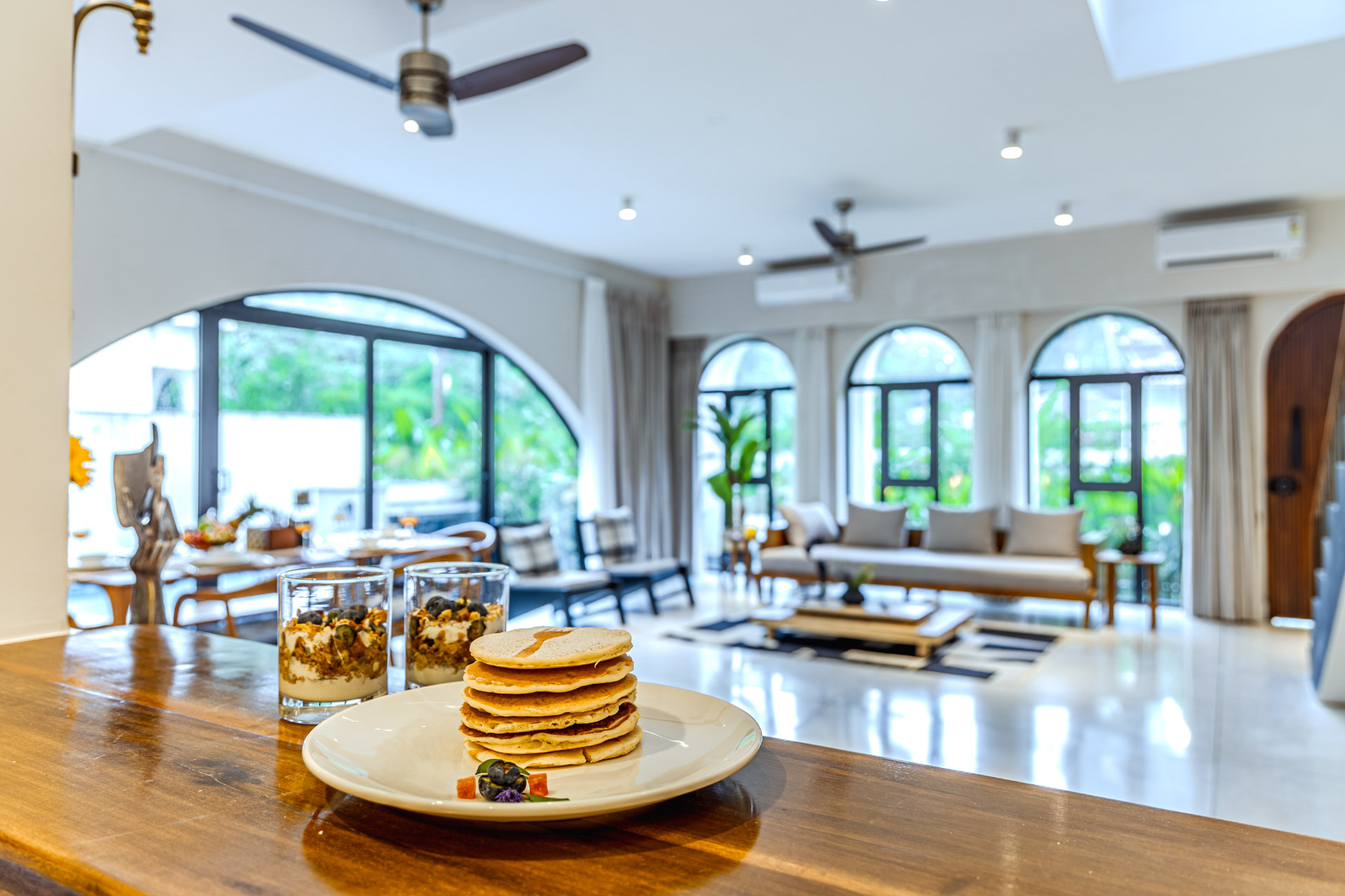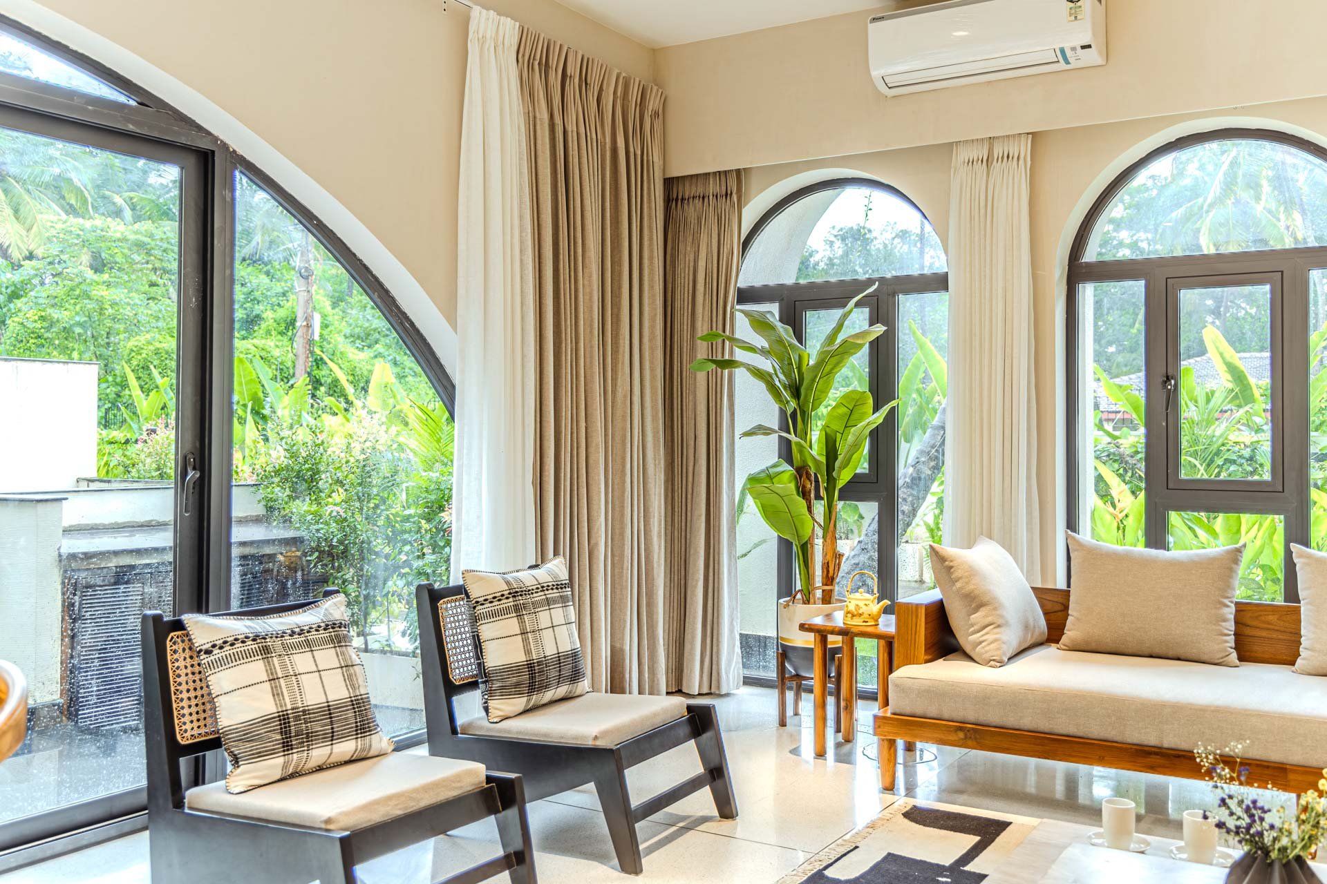 Begin your day with a steaming cup of coffee on the sunlit verandah of Casa Lumina, watching the morning light dance across Siolim’s serene landscapes. After breakfast in the earthy, elegant dining space, take a leisurely swim in the private pool or lounge by the manicured lawn, surrounded by the villa’s lush, picturesque garden. Midday calls for a quiet siesta indoors, where the earthy interiors and elemental grandeur create a naturally calming ambience. Later, venture out to explore Siolim’s charming lanes, vibrant markets, and nearby beaches, returning just in time to catch the golden sunset from your garden seat. Evenings at Casa Lumina are best spent with a home-cooked meal in the villa kitchen, followed by starlit conversations by the pool. Whether you choose to unwind indoors or immerse yourself in the beauty of North Goa, each moment at Casa Lumina flows effortlessly between relaxation and exploration.