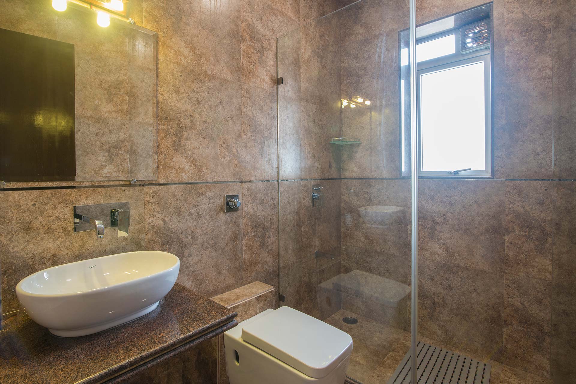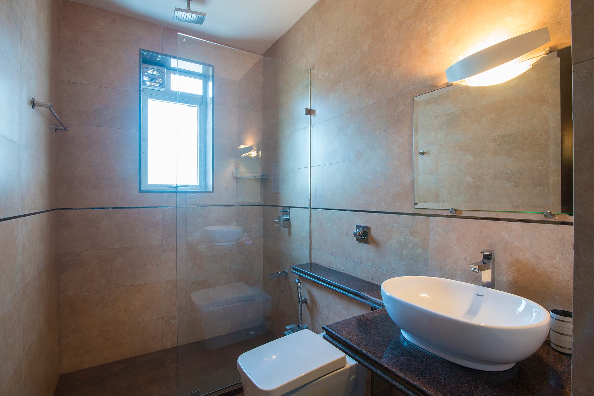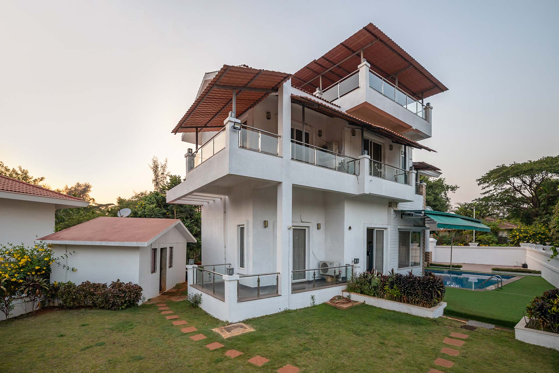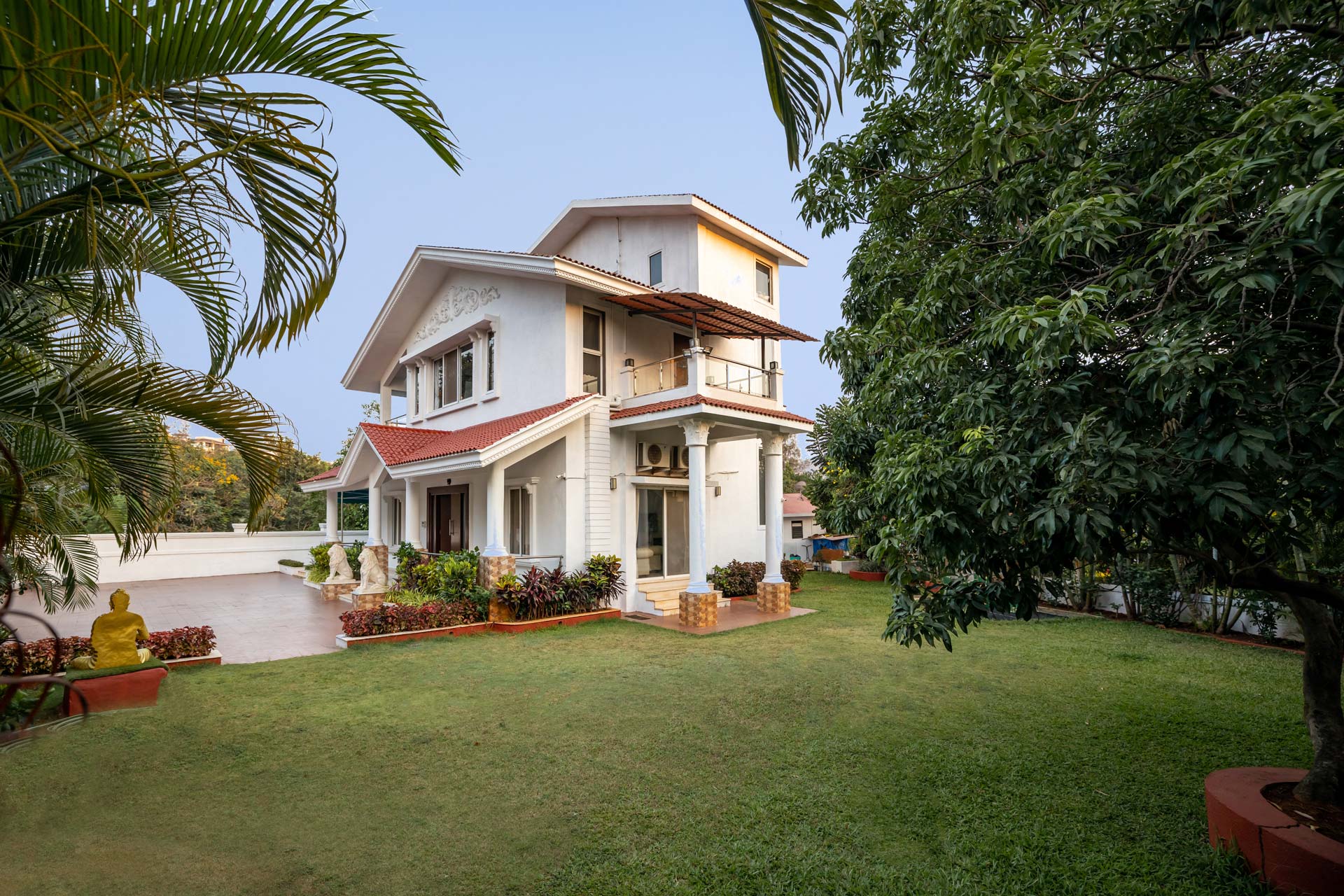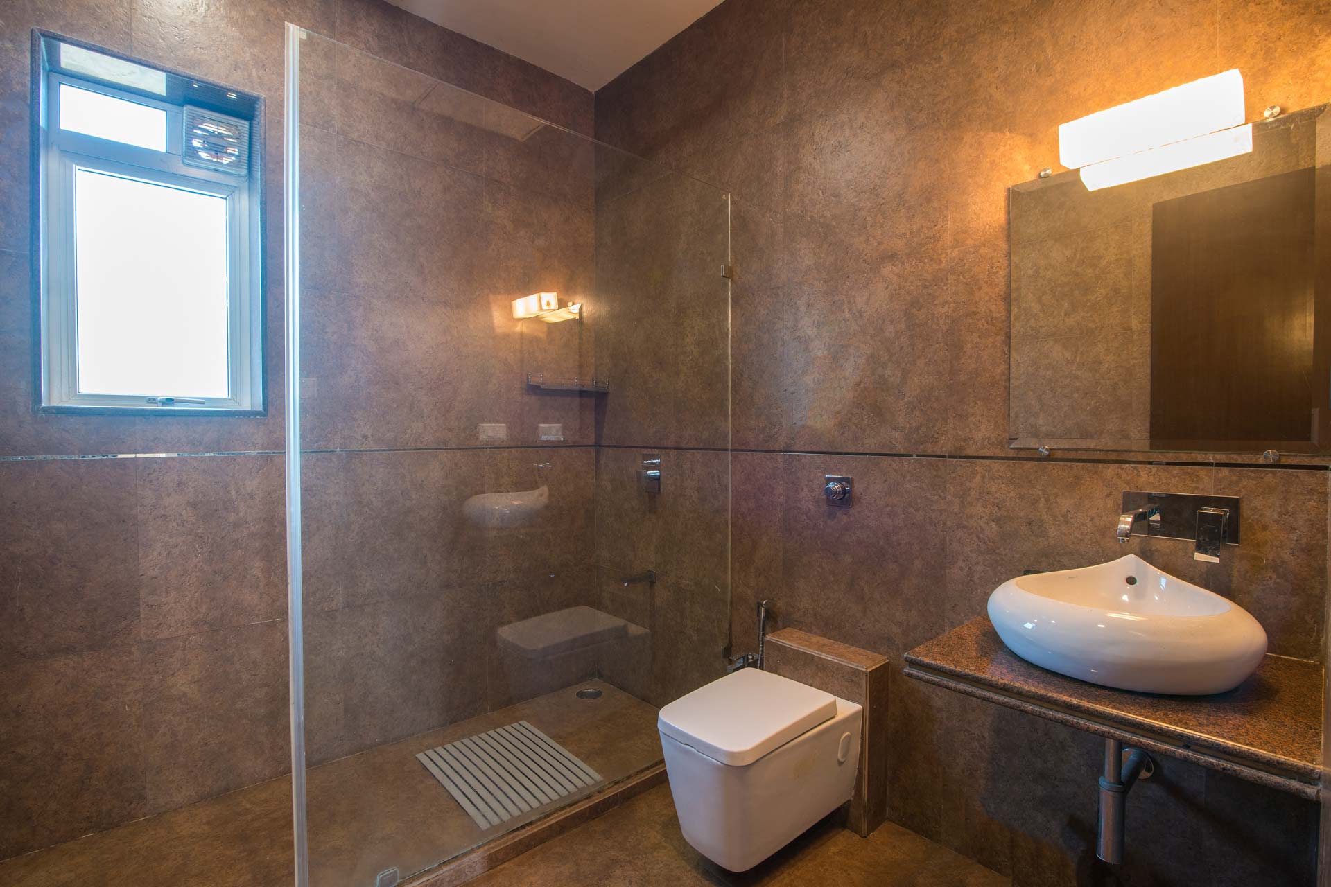 – There are 5 bathrooms in the villa. – 4 attached, 1 common bathroom on the ground floor.