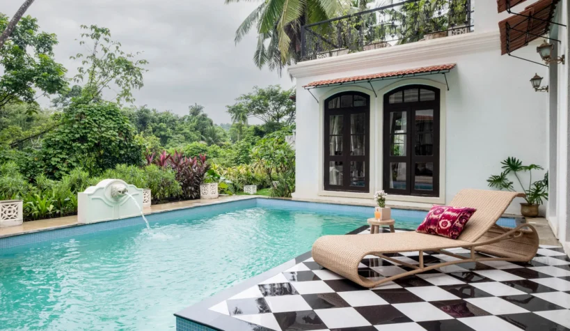 Derived from the word ‘castle’, Castello Villa 6 celebrates the unification of modern and timeless design. Part of the Castello villa community in Assagaon, the home seamlessly weaves together traditional Mediterranean architecture with modern, world-class amenities. The stunning living and dining room opens up into a beautiful pool area, perfect for relaxing with a chilled cocktail in hand, while taking in the lush green views. The four gorgeous ensuite-bedrooms include a master suite that comes with a private sit-out. The cozy terrace on the second floor will allow you to make the most of balmy Goan evenings and is ideal for hosting an intimate soirée. Focus on work or unwind with a book in the study, or don the chef’s hat in the fully equipped kitchen. And if you’d like to step out and explore or indulge in some of our unique in-villa experiences, guest relations and concierge teams will be at hand with the best recommendations and thoughtful assistance. Secluded yet thriving, Assagaon has it all. Its leafy streets, lush fields and nearby pristine beaches are where you can stop and catch a breath before heading off to one of its popular restaurants for a thumping night of fun.