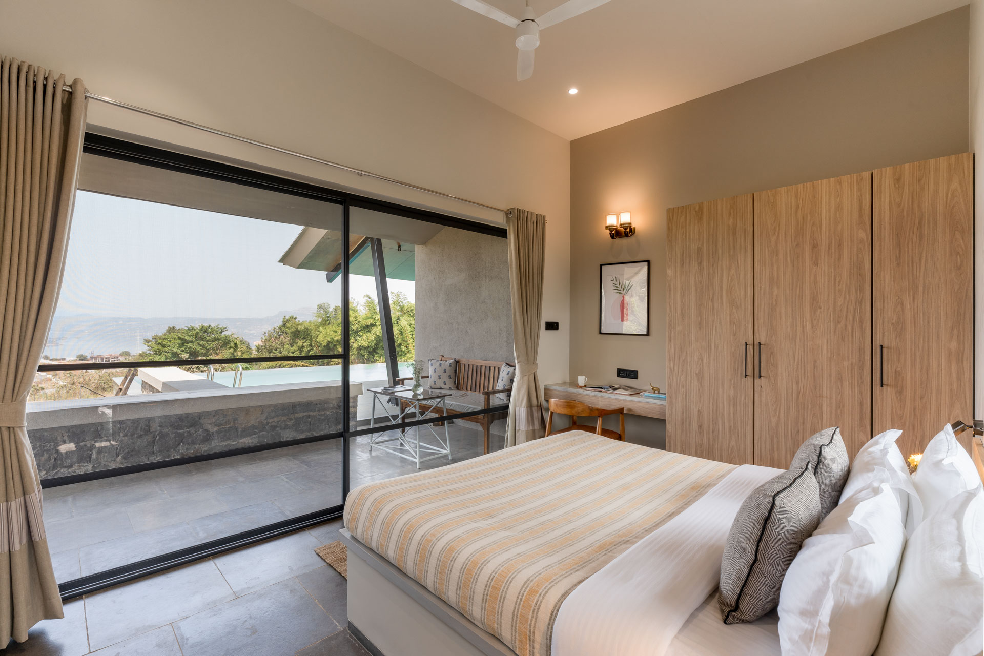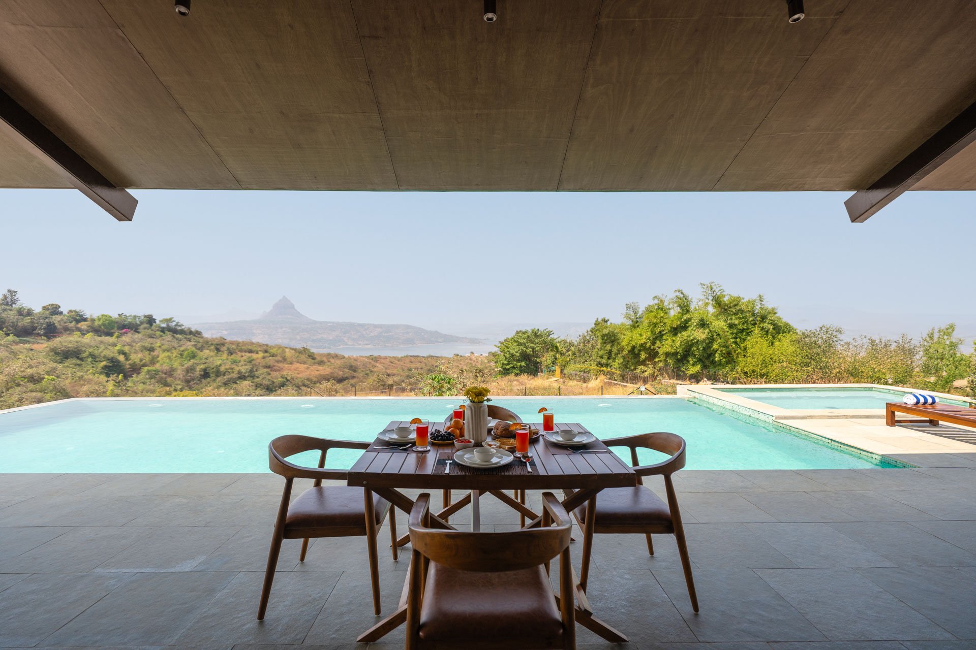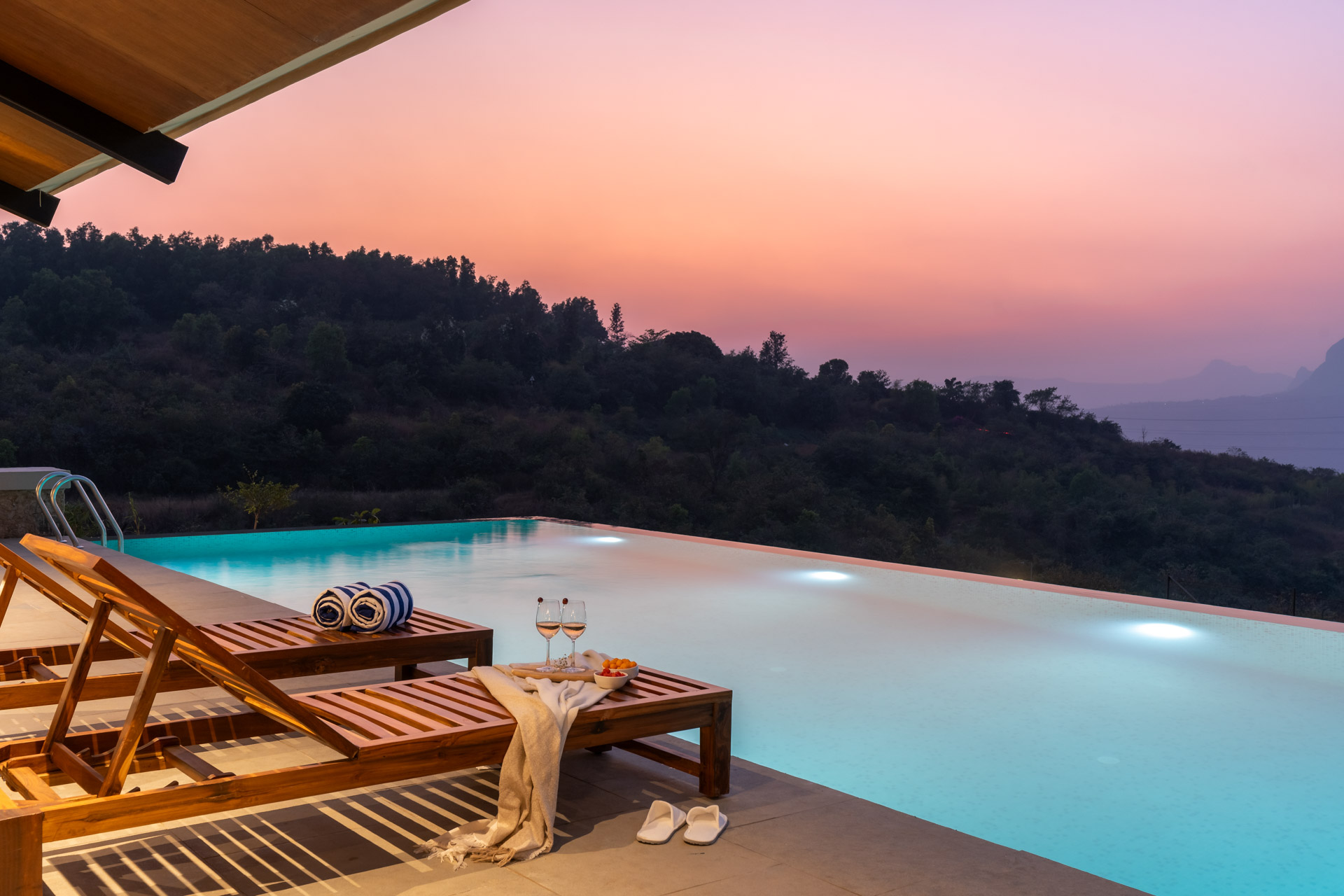 Chitrakoot is a humble villa in Lonavala, wrapped in lush greenery and breathtaking valley views. With a striking facade, this five-bedroom retreat effortlessly marries sophistication with nature. The tranquil silence draws you in, far enough from the road to enjoy the peace, yet close enough to feel connected to the local charm. Steps away, an inviting outdoor pool and heated jacuzzi await, a perfect spot to unwind under the sky, framed by mesmerizing vistas. The spaces are thoughtfully crafted for relaxation, with plush, understated decor that creates an elegant yet homely vibe. Conveniently accessible from Lonavala, Pune, and Ambe Valley, Chitrakoot is tucked amidst scenic surroundings near Tikona, a locale favoured by celebrities. It is the perfect getaway to pause, rejuvenate, and make timeless memories.