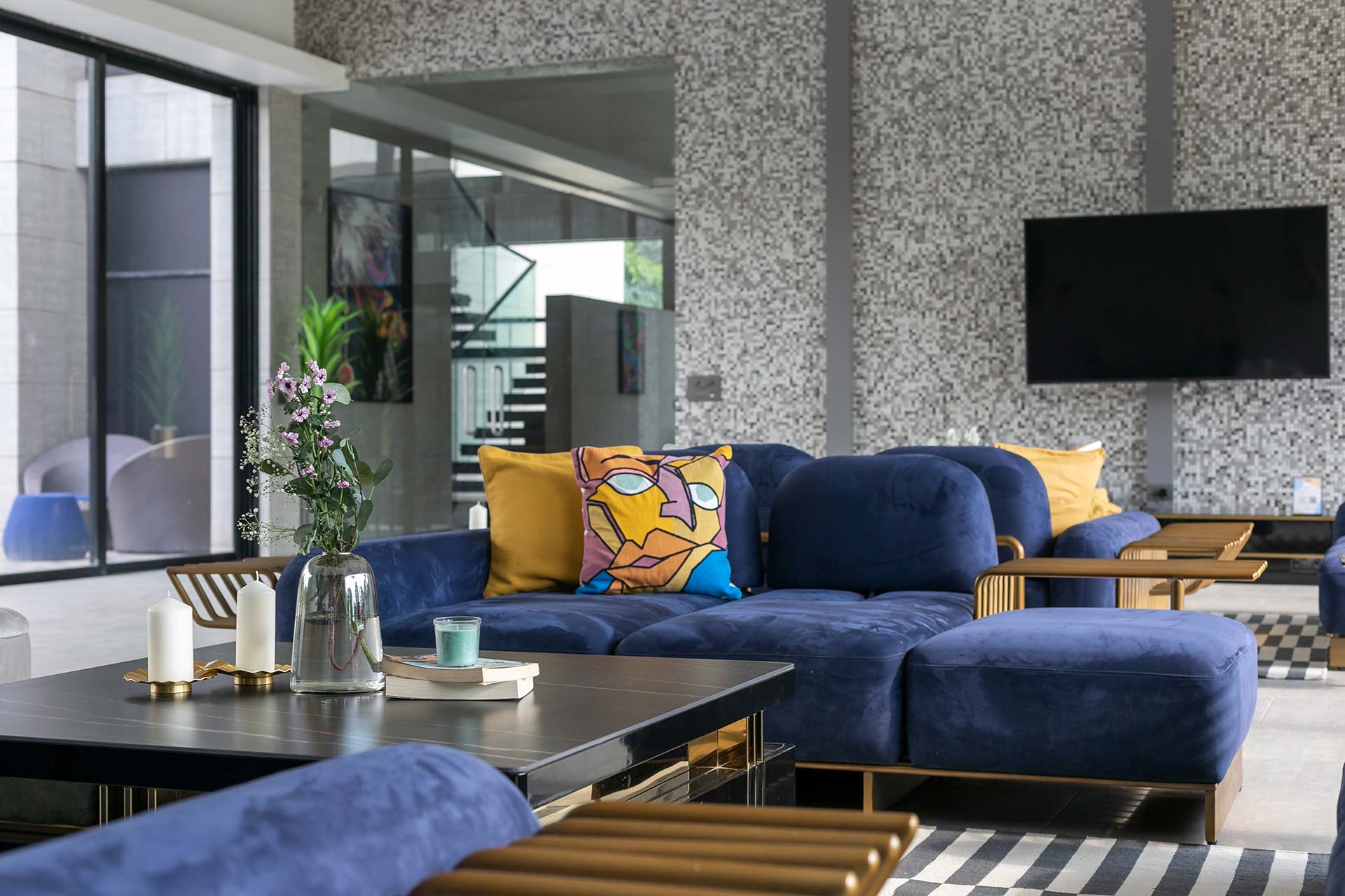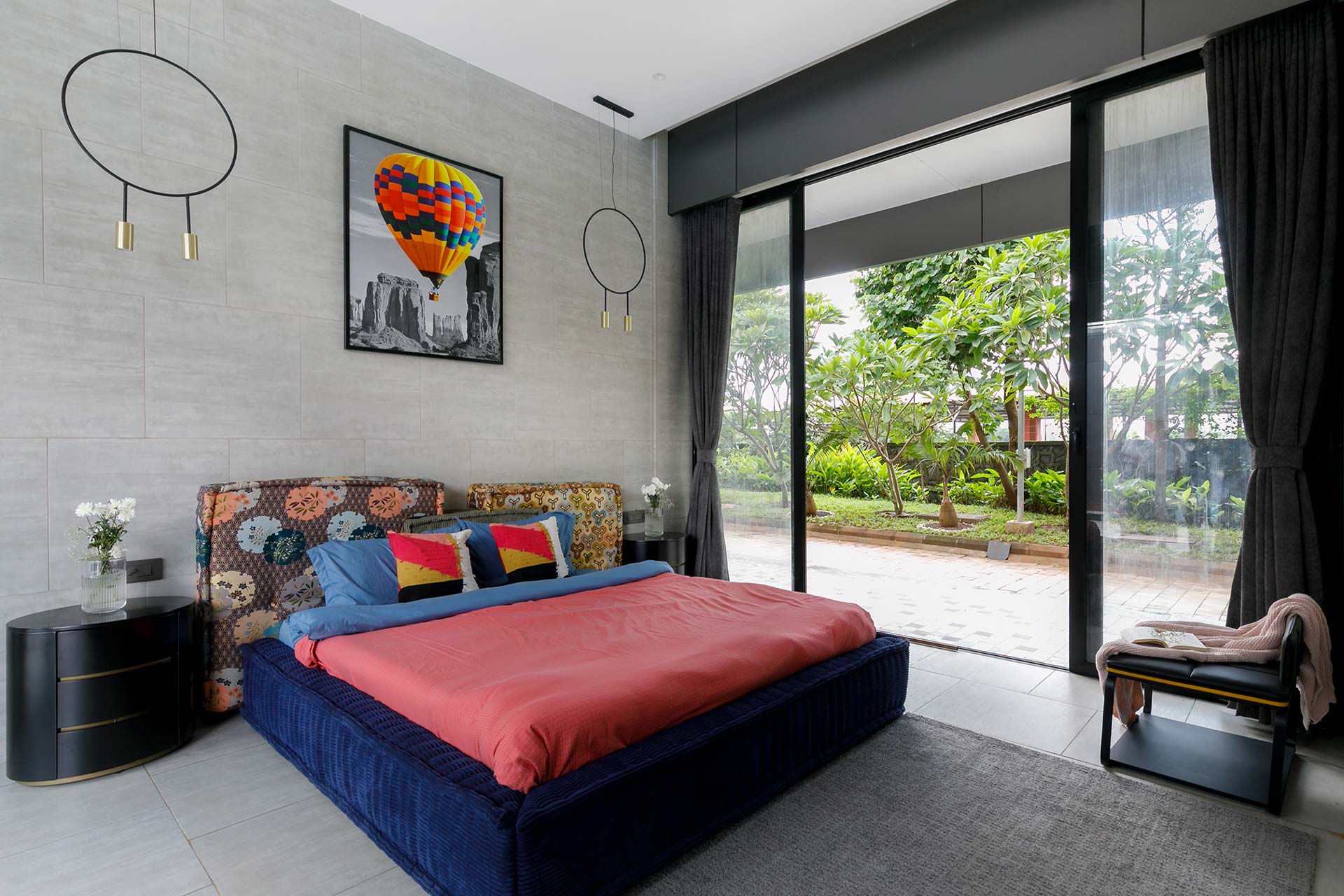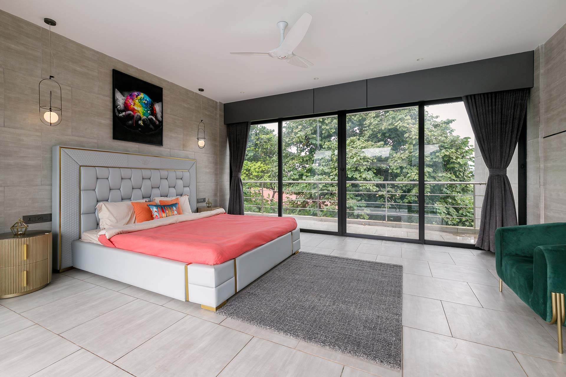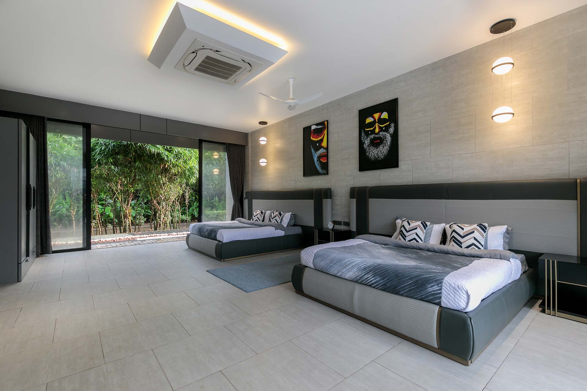 Redefining the epitome of luxury living, this massive opulent abode set amidst a picturesque lush backdrop is sure to guarantee you a memorable trip; whether it be with your large family or group of friends. It’s the kind of space that offers a wonderful glimpse into the luxe life – inviting you to savour the joy of being together in a beautiful setting. This home makes the most of its stunning environs with an enormous glass façade and bright, airy interiors that reflect the soothing sunlight, the endless cool blues of the pool, and much more! As you gather together to reconnect with loved ones, soak in the scenic beauty of the evergreen vistas, swim under the open sky, kick back in the jacuzzi, and raise a glass to good times. The exteriors are just as extravagant as the interiors and offer an assortment of amenities to suit every taste. It doesn’t matter if it’s the magnificent promenade, a cosy machan with a view of the cascading rivulet, or a huge garden for your kids, there’s something for everyone here.