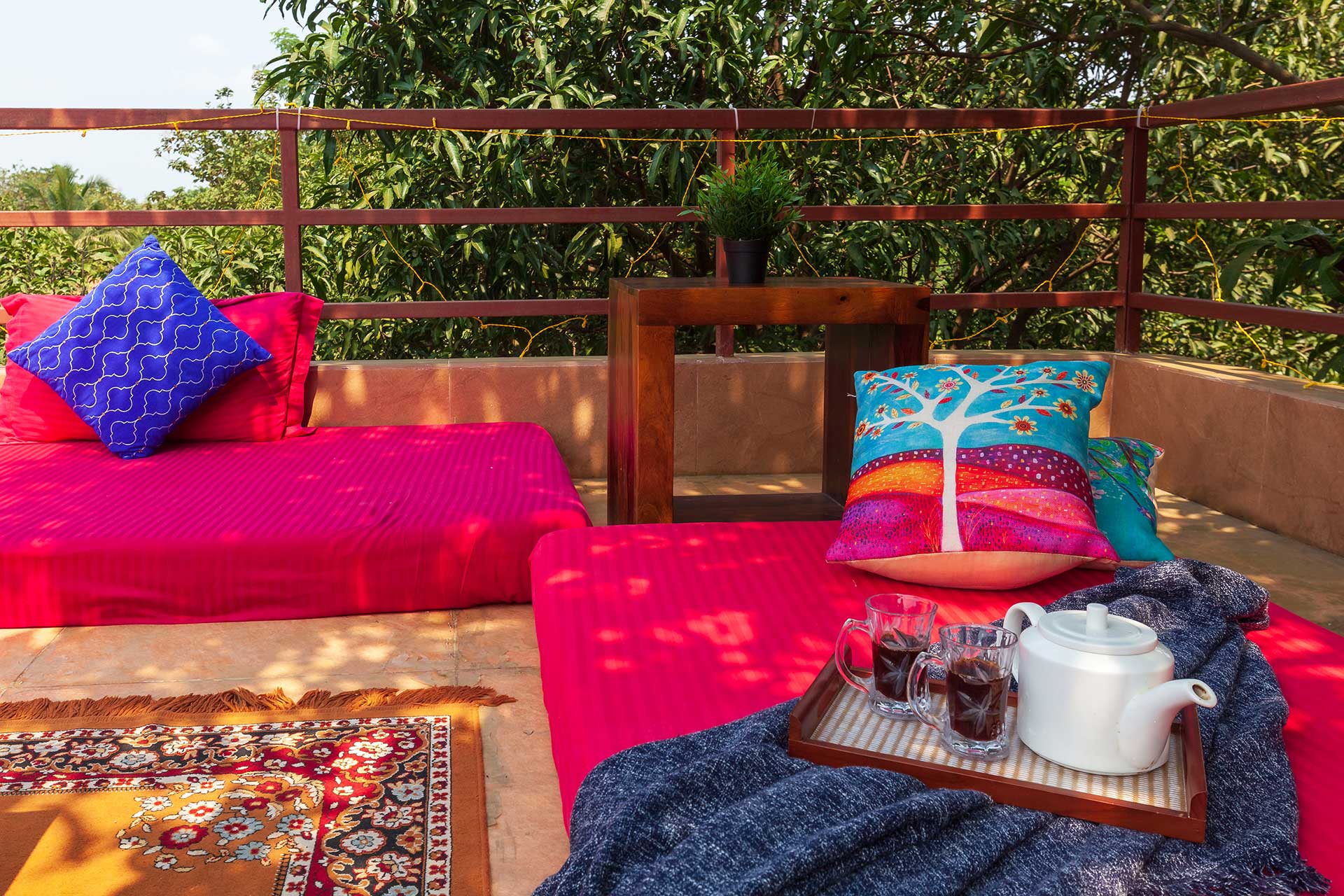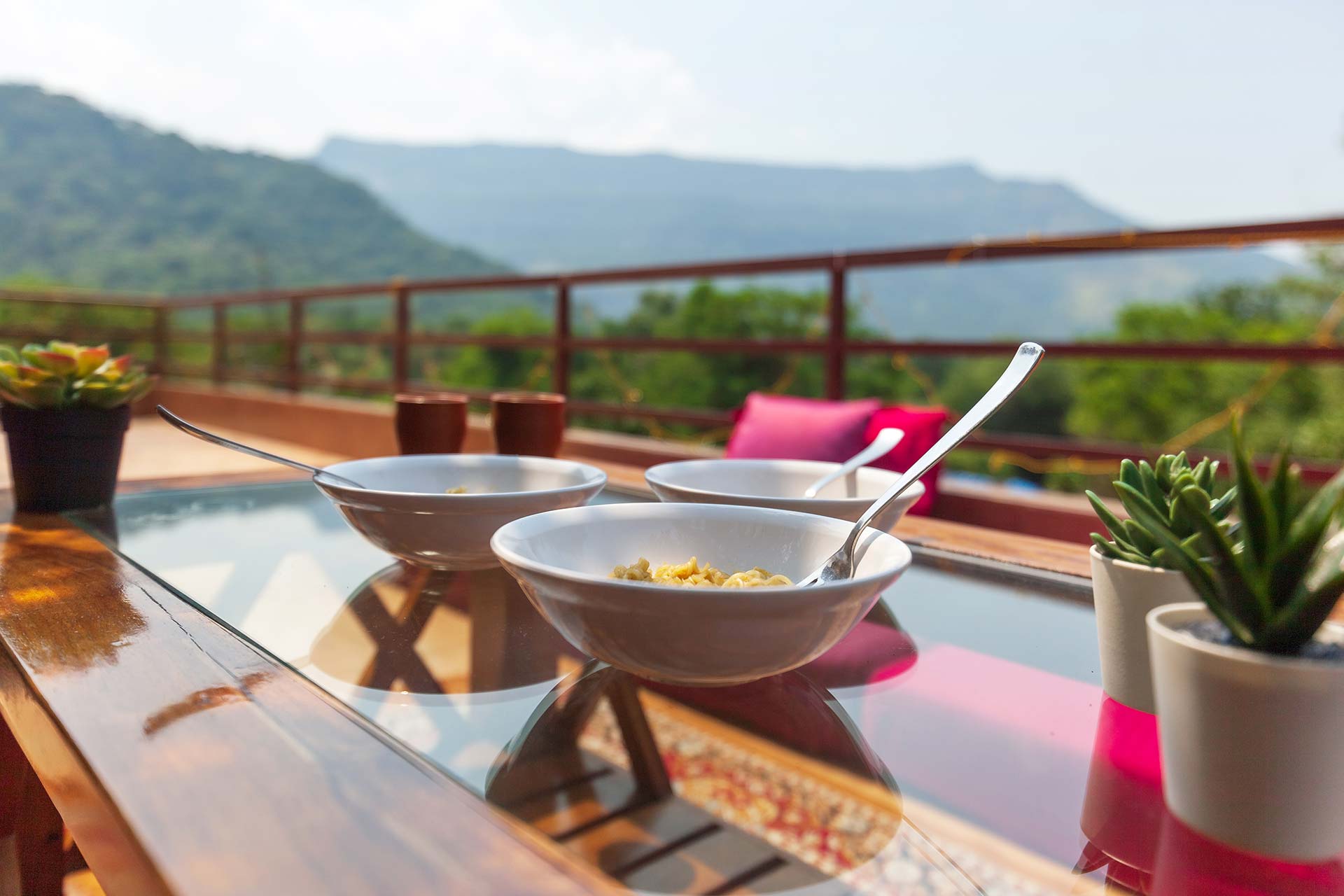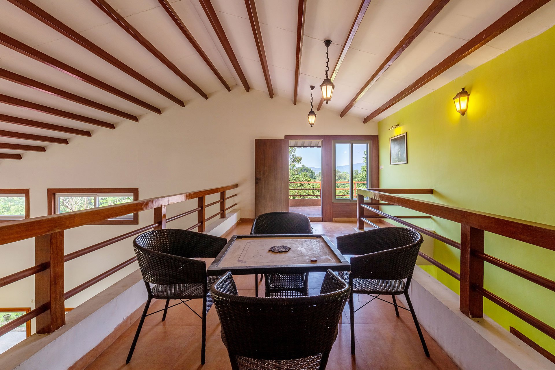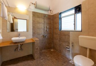 Within the property, guests can enjoy a relaxing time or simply unwind. They can take a peaceful stroll on the lawn and bask in the sun. If you’re up for some fun and frolic, guests can also enjoy a game of soccer or cricket on the well-manicured lawns. Enjoy competitive rounds of board games such as Ludo, Snakes & Ladders or foosball with your peers. Swing leisurely at any of the multiple spots, or find a cosy nook to read a book, meditate or do some yoga. Guests can soak in the gorgeous views from the balconies. Want to watch movies or catch up on sports? Get your Wi-Fi streaming devices and connect to the TVs. Guests can also relish a hearty barbecue meal. A mini-trek can be organized through the lush forests and hillocks for a small extra fee, subject to the caretaker’s availability.