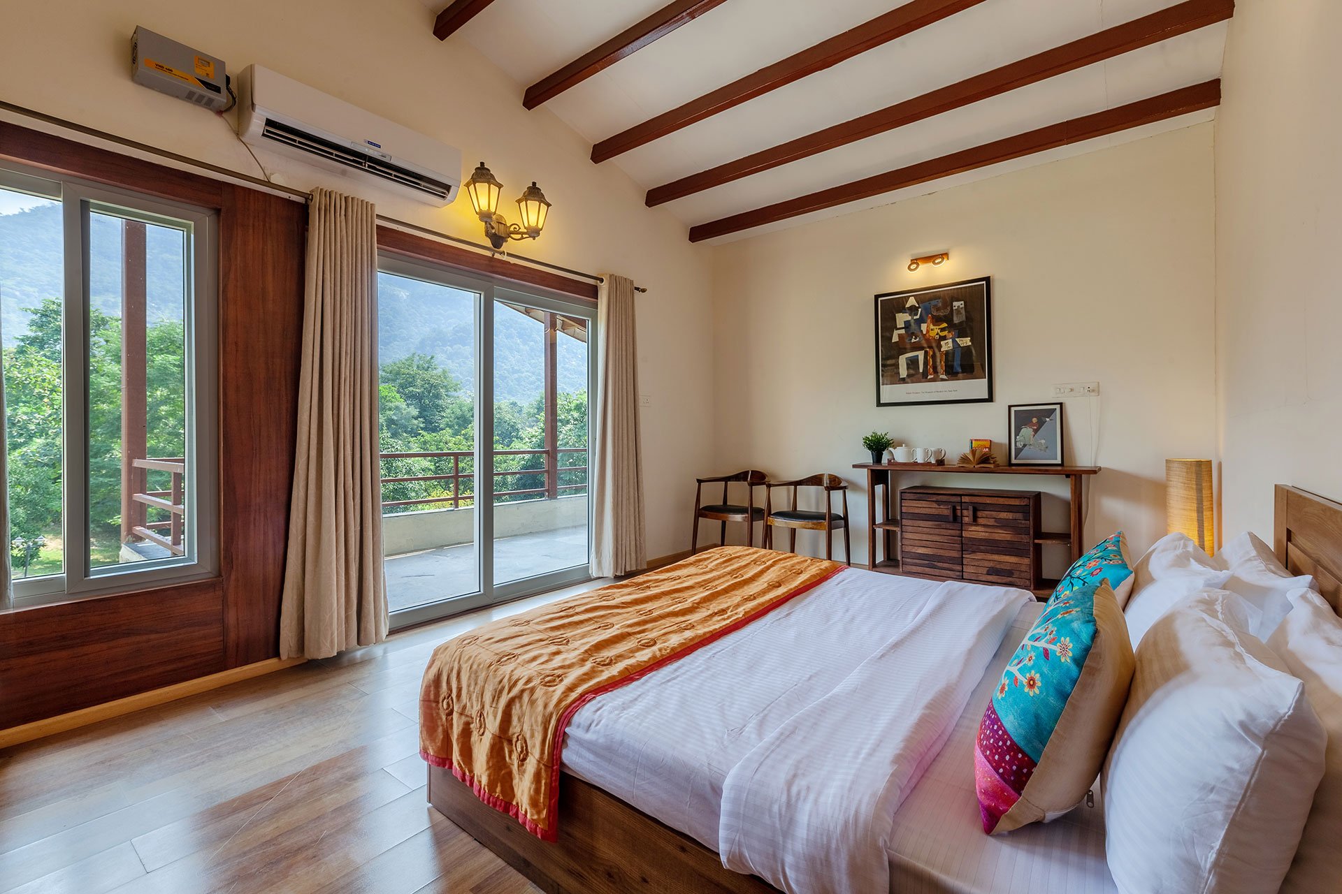 – All bedrooms offer amenities such as an AC, king-sized bed, extra mattress, Wi-Fi, and a wardrobe.