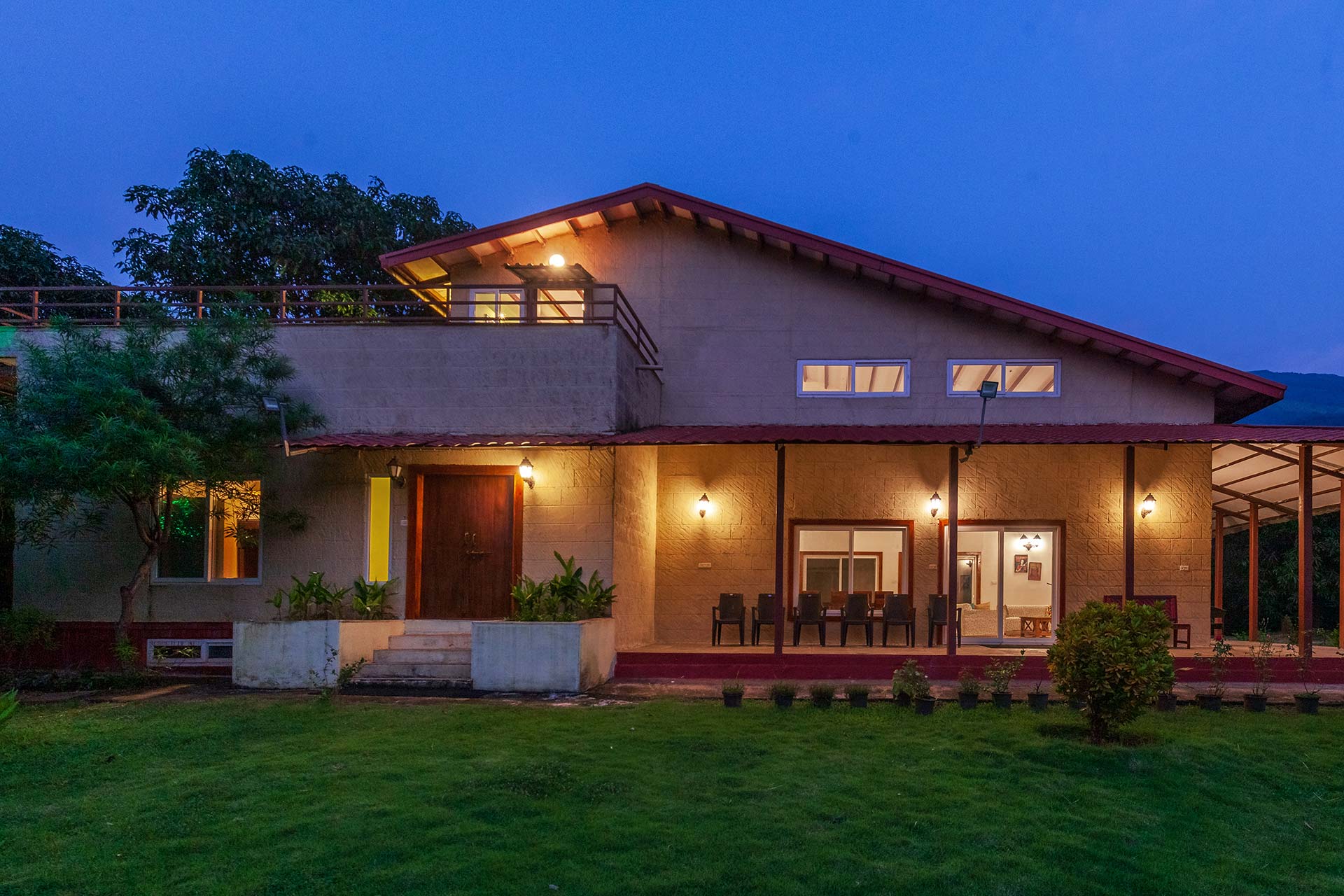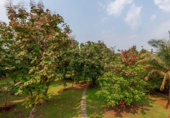 – 3.75 acres sprawling lawn featuring tall trees and a mini mango orchard with ample seating arrangements.