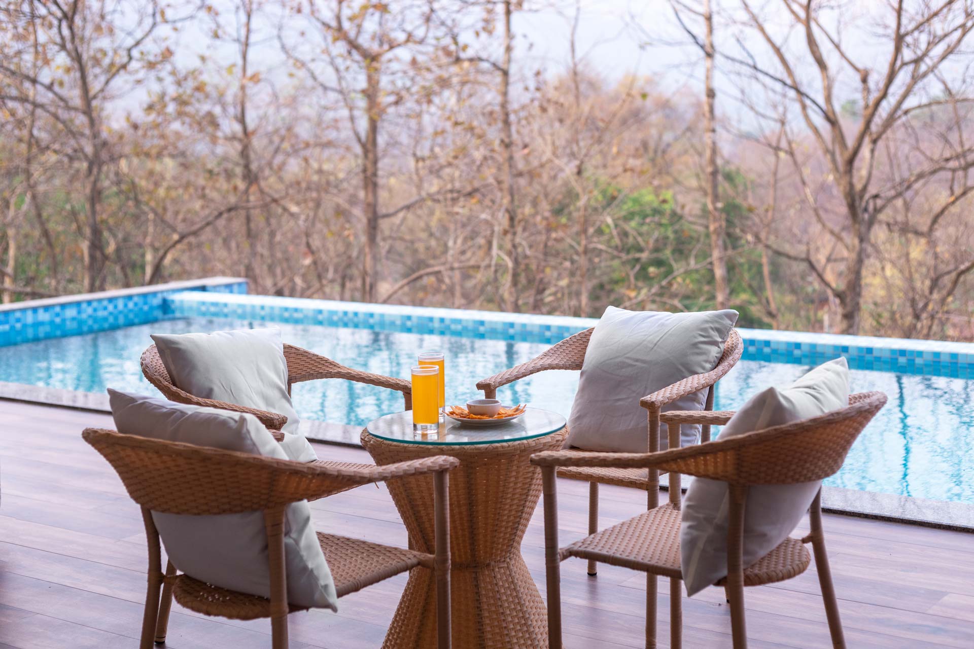 Nestled in an incredible natural setting in a quaint corner of Khopoli, one can experience a peaceful yet fun-filled holiday like nowhere else at Eden Glade. Start your day with an elaborate breakfast, as you soak in the refreshing breeze and the splendid views that surround this home. The quietude that surrounds the premises of this property offers the guests a rejuvenating experience. Indulge in a refreshing splash in the private outdoor infinity pool. The deck offers the perfect place and backdrop to immerse yourself in your favourite literary masterpieces. This charming abode is bound to leave you with a trove full of memories.
