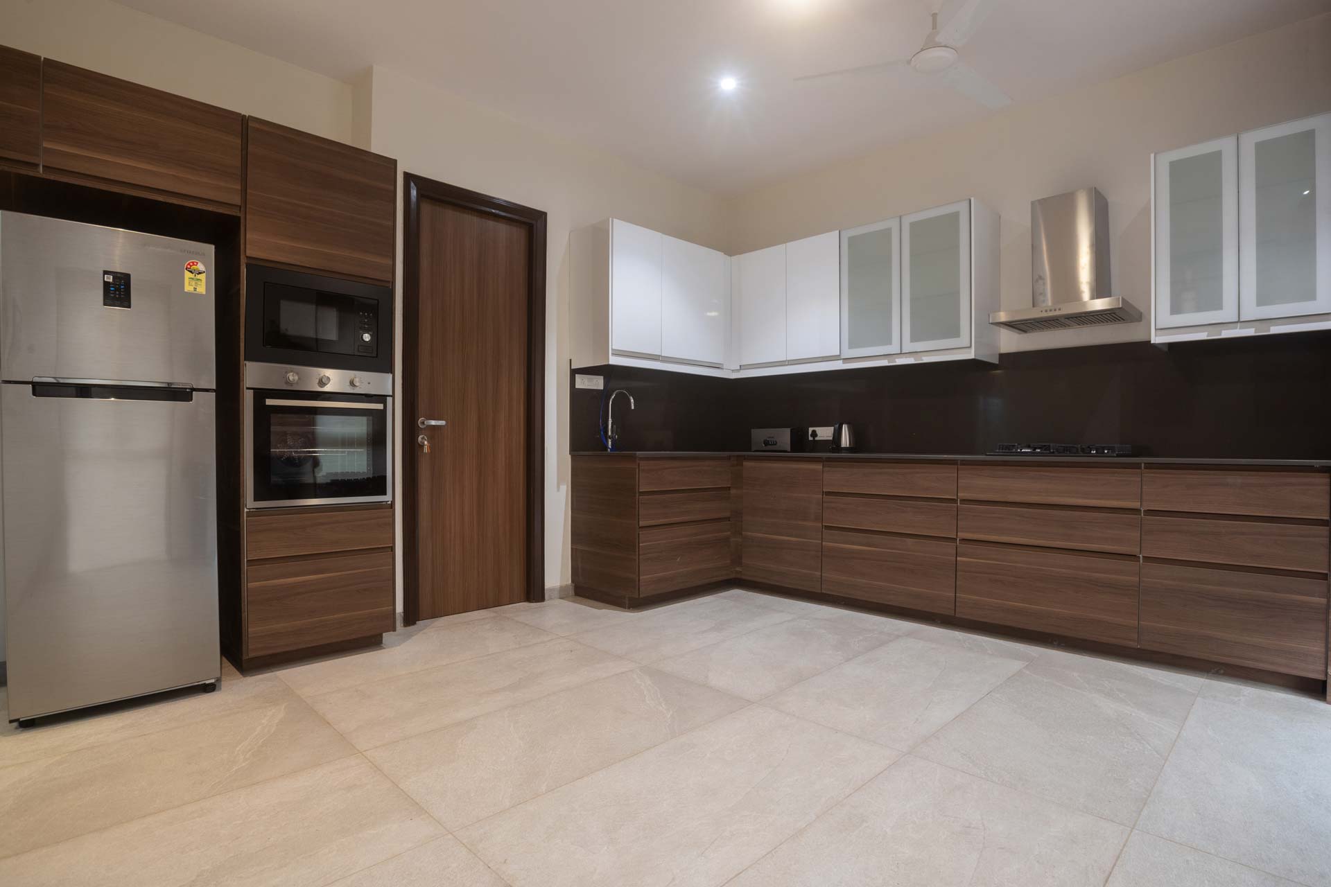 – It is equipped with a microwave, gas stove, oven, refrigerator, water purifier, and mixer grinder.