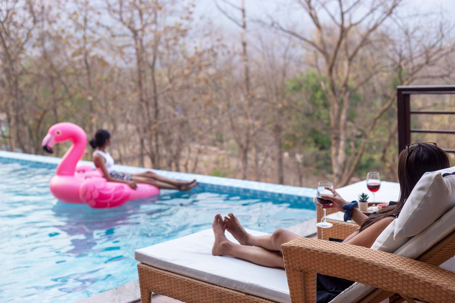 – Private outdoor swimming pool canopied by the verdurous fauna around