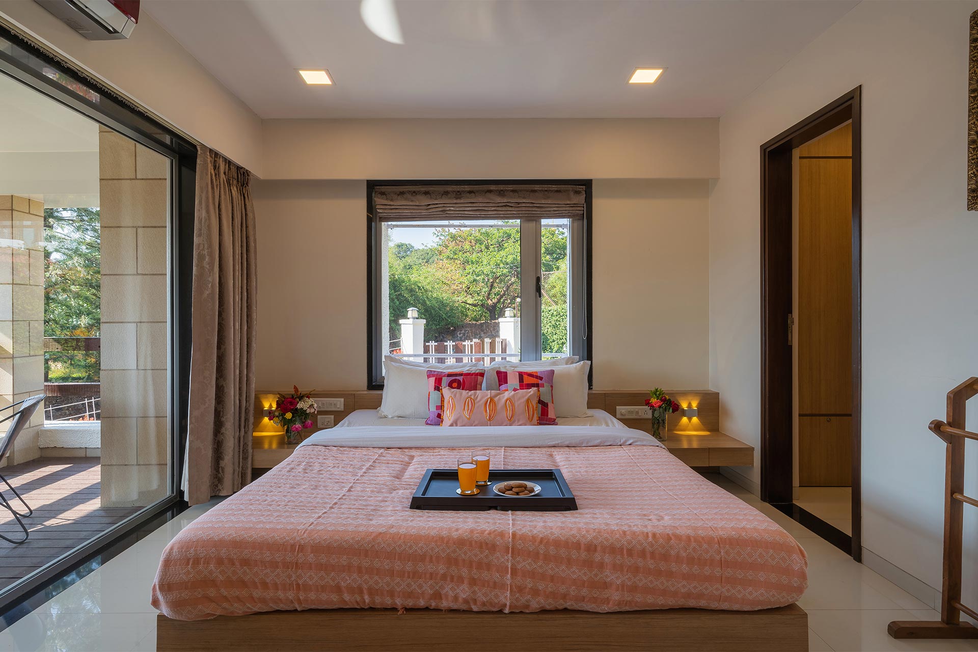 Imagine a beautiful garden that features hammocks, seating area with wooden furnishings and a jacuzzi. Emilia Villa offers the pleasures that one can’t find anywhere else. This picturesque property has several cosy corners where one can sip their favourite coffee and relax with a book. The best part is its inhouse library that offers you a wide selection of books so you can unwind yourself in the mountains of Mahabaleshwar. Another refreshing way to relax yourself would be enjoying a therapeutic soak in the jacuzzi that is present in the lawn, bringing you closer to nature. A gymnasium is present in the villa that is perfect for the fitness enthusiast who want to keep themselves active. Within the property, guests can enjoy the plethora of games offered in the gaming room like table tennis, carrom and many board games. One can end the day by enjoying a beautiful sunset from the deck with ample sitting space. A bonfire and barbeque can also be arranged at an additional cost. Emilia Villa offers a getaway in the tropics of Mahabaleshwar along with a cornucopia of amenities that’ll create a treasure trove of memories.