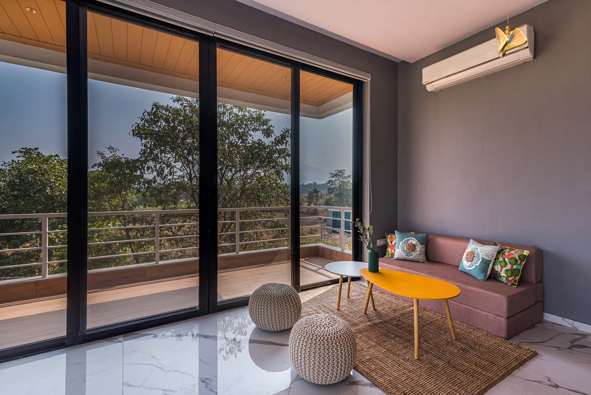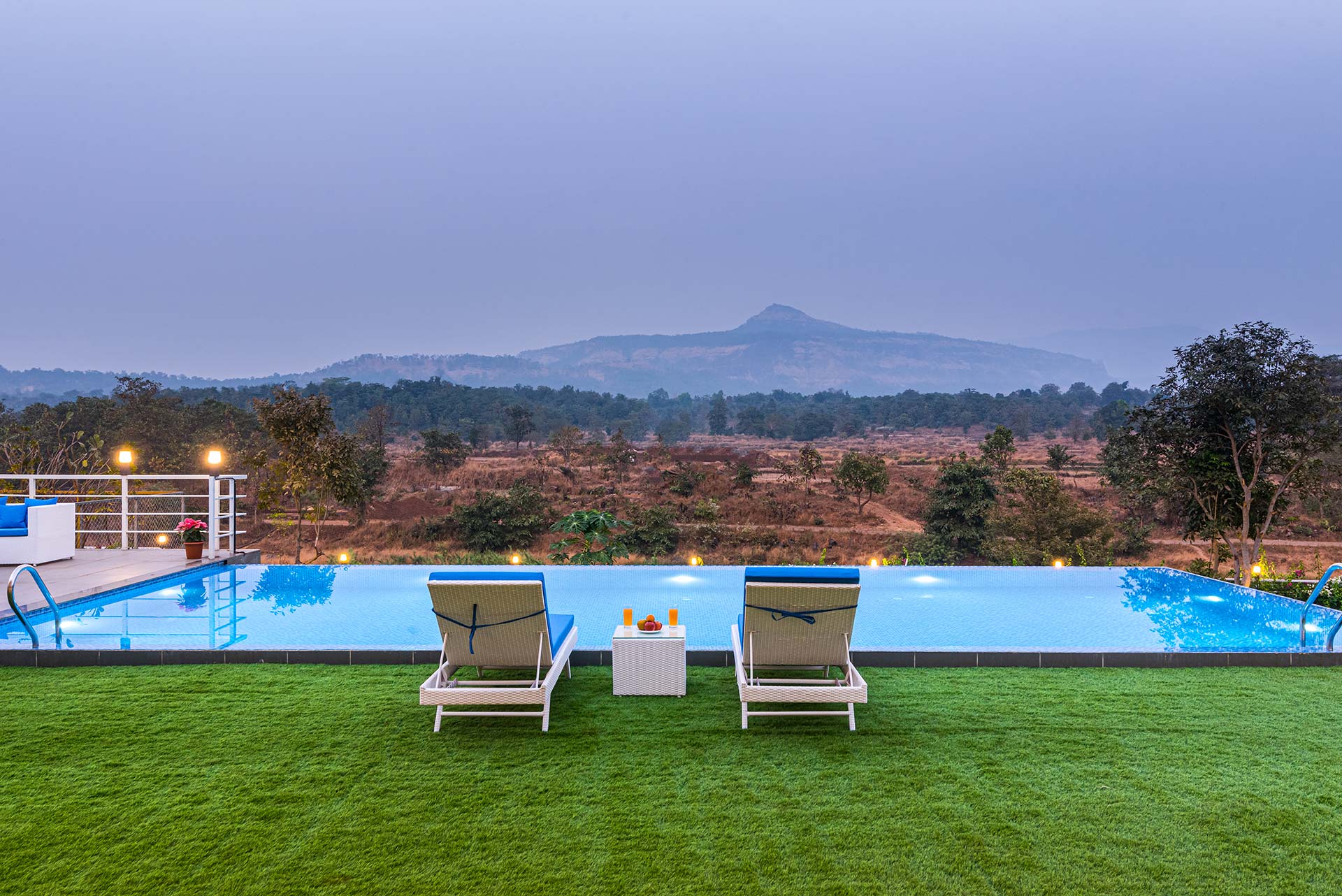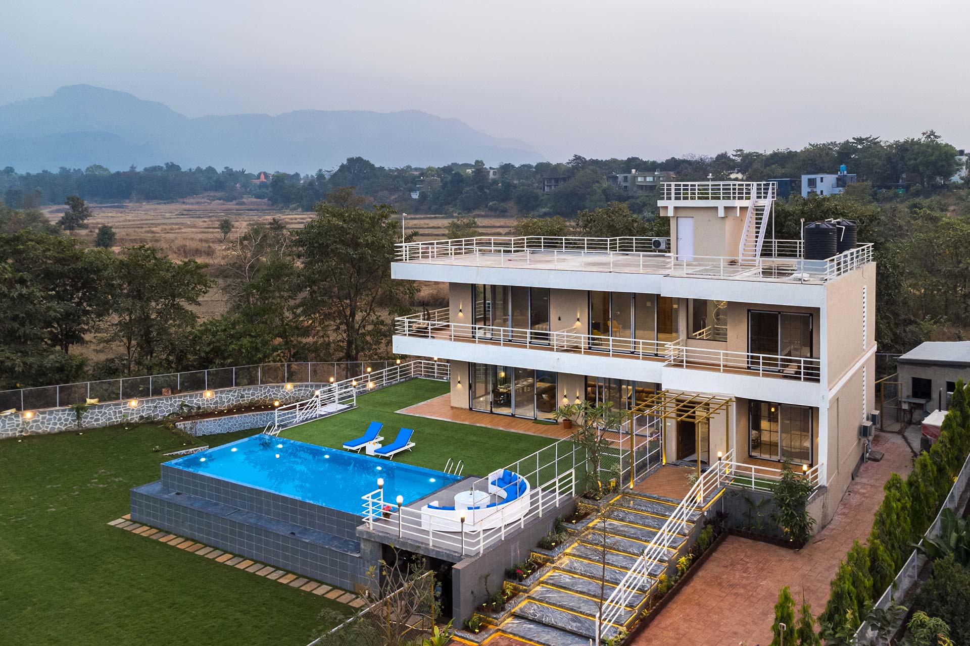 A fun-filled and secluded getaway tucked away in Karjat, this magnificent home offers something for everyone. Whether it be following the river trails, enjoying a 360-degree backdrop on the terrace area, or simply lounging in the infinity pool, Euphoria is as welcoming as it is ethereally beautiful.