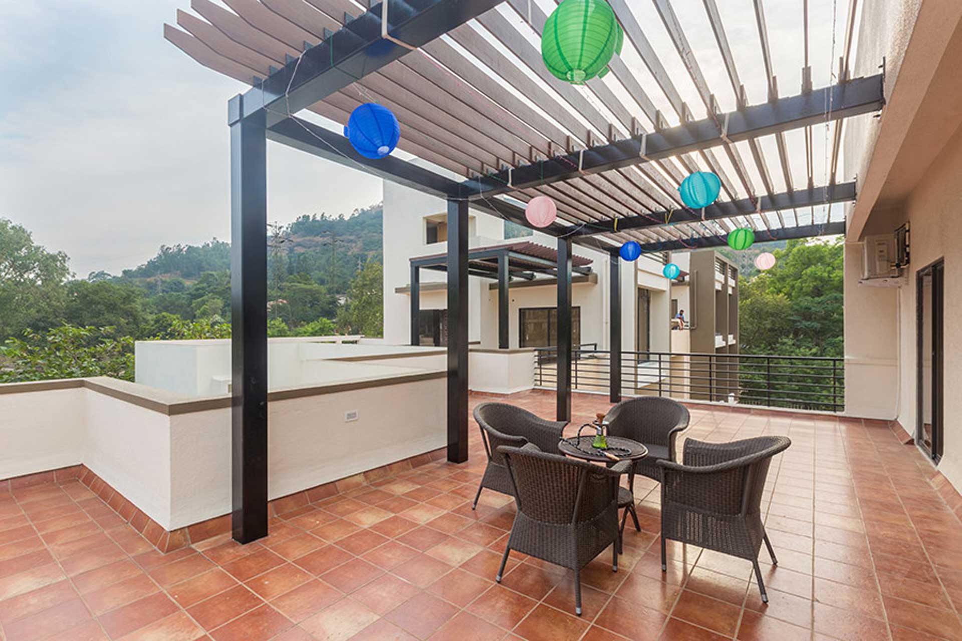 – Each of the villas offer a private lawn & a terrace with seating space where guests can sit out and relax while having a cup of their favourite beverage.
