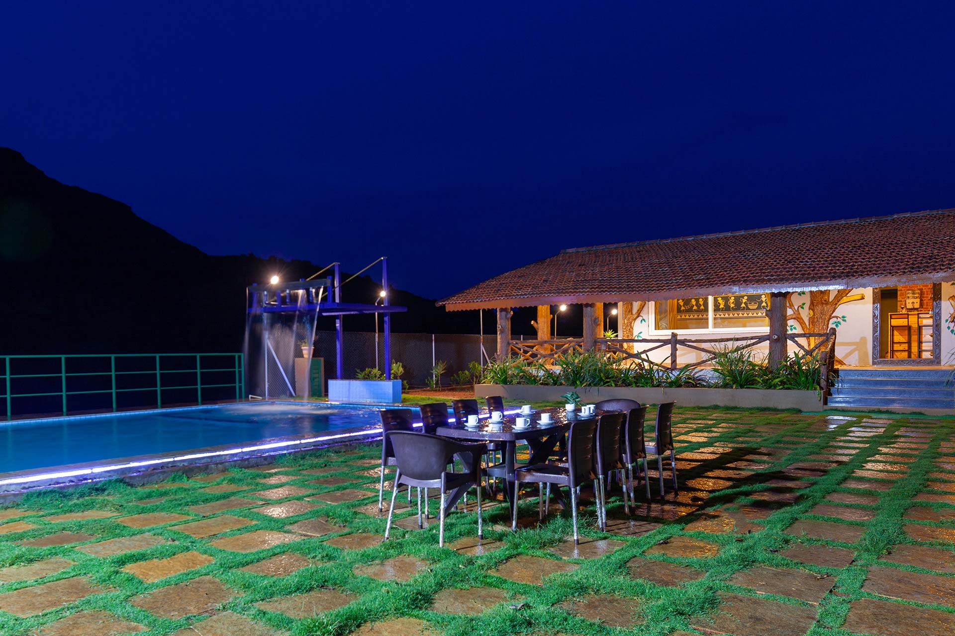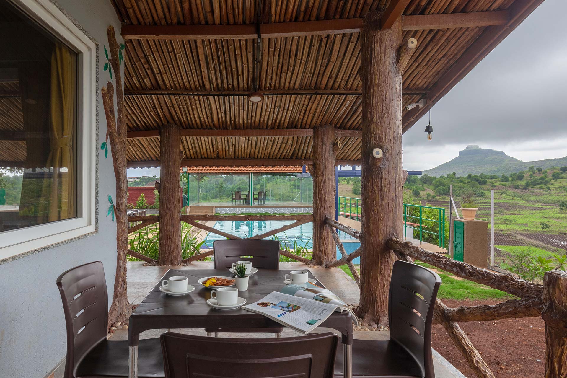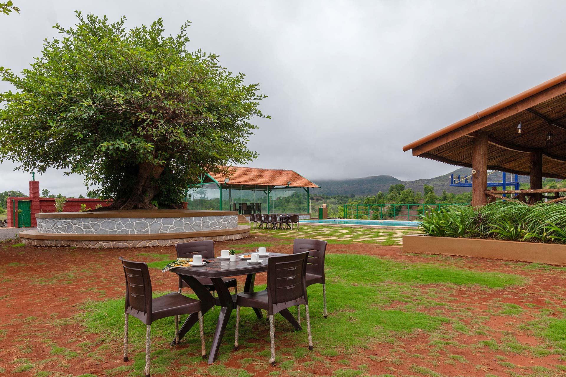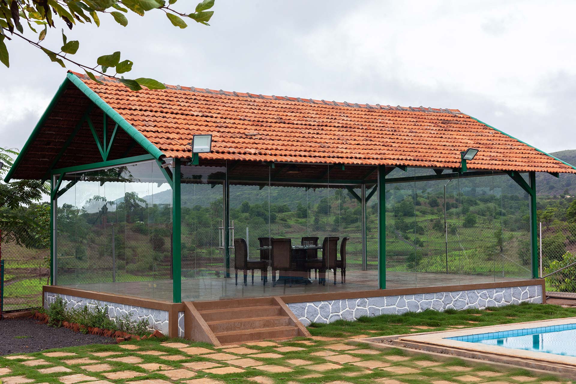 – The glasshouse or the covered gazebo, is another place to enjoy the lush green surroundings and the immaculate views of the Sahyadris.