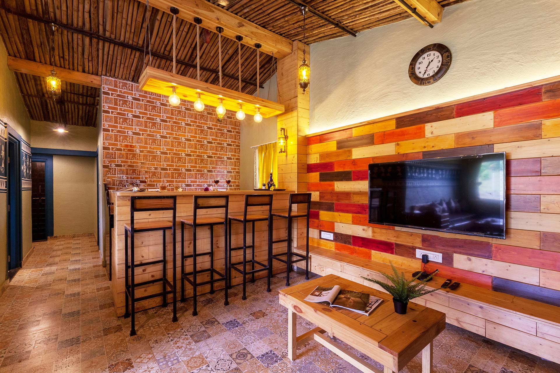 – As you make your way through the artistically designed rustic doors of this unique homestay, you’ll find yourself in a cosy living room on the ground floor.