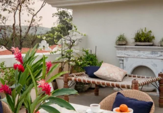 Villa E, part of Fonteira comprises of four bedrooms and a study room. Located in Assagaon, also known as “the Beverly hills of Goa”, the home is inspired by traditional Indian havelis. Bedrooms have ochre cane cabinets, brick-red tiles and wooden lattice work windows that make this home feel like a warm, welcoming space. Whenever you tire of lazing around in your poolside gazebo, head to the terrace for a meal under the stars.