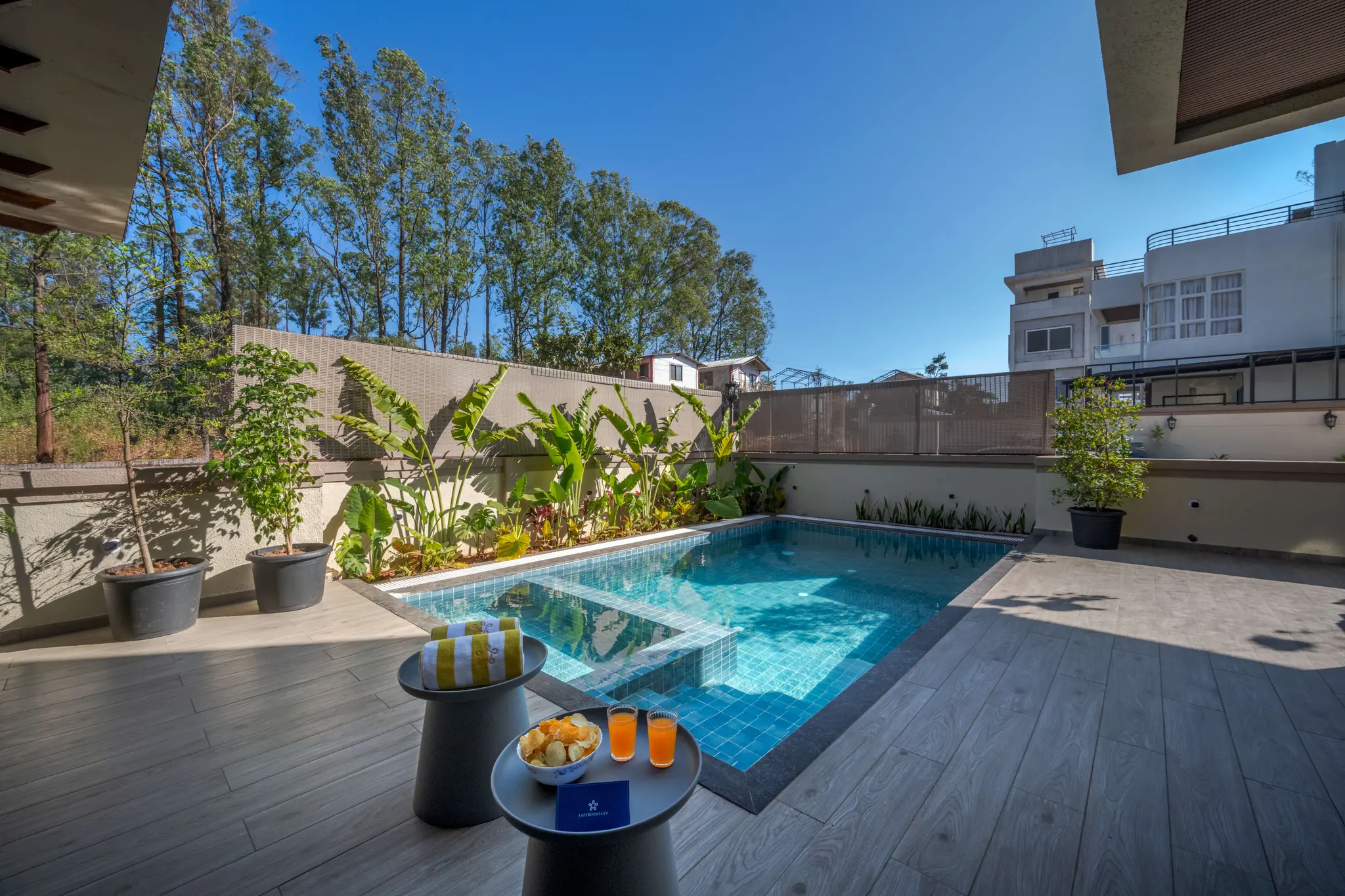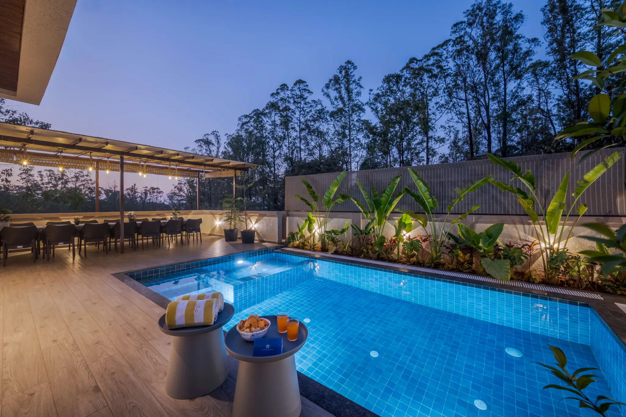 • Step outside to enjoy poolside loungingalfresco dining, a spacious parking area for 3-4 cars, cosy bonfire nightsBBQ evenings, and even driver accommodation for added convenience.