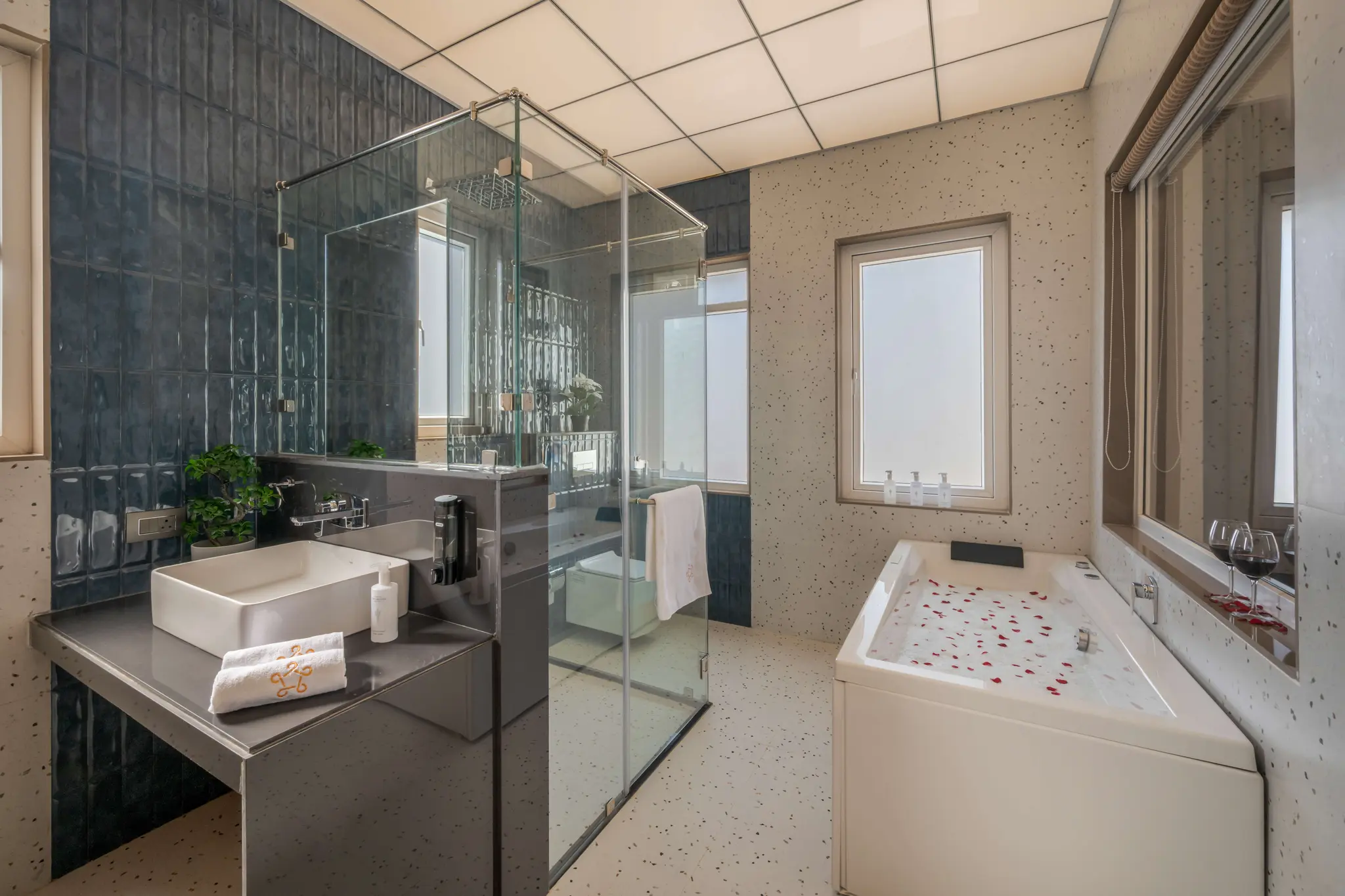 • Each bedroom promises comfort and luxury, with three jacuzzi-equipped rooms on the first floor, one featuring a jacuzzi inside the bedroom itself, and the other two offering soothing in-bathroom jacuzzis. Your stay feels nothing short of a private resort.