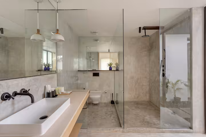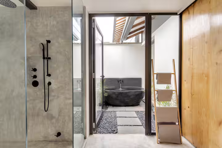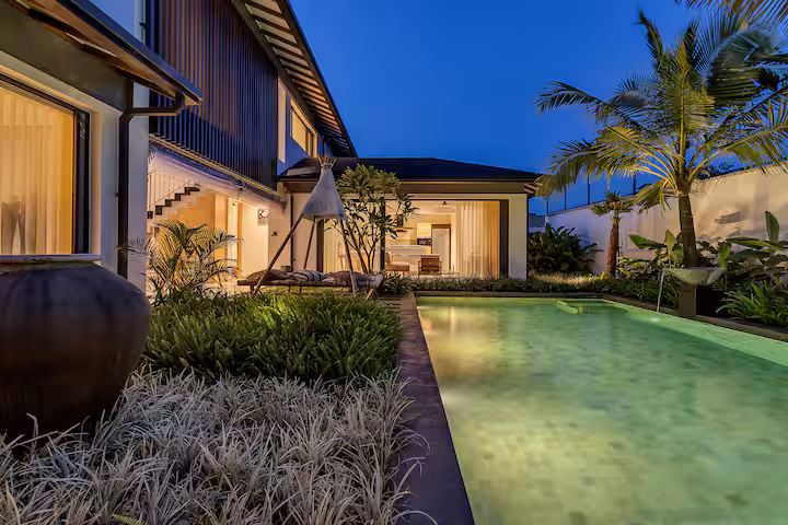 Lovingly built to bring the essence of Bali to Goa, this villa features high-beamed ceilings, warm natural textures, and refined contemporary finishes. Overlooking a lush private garden, the villa includes three spacious ensuite bedrooms, a large swimming pool crafted with shuka bhumi stone, and an expansive open living area.