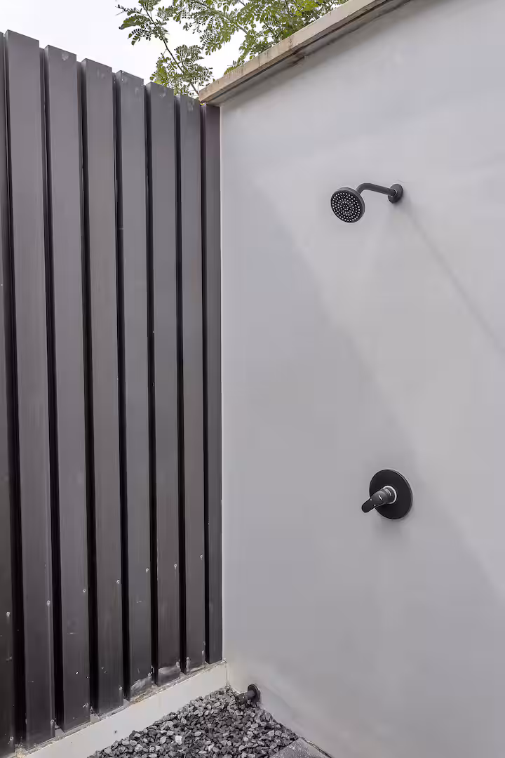Unwind in the outdoor hot tub under the open sky, surrounded by tranquil greenery. Although restaurants and shops are just a five-minute drive away, the property offers a peaceful and secluded environment for a perfect getaway.