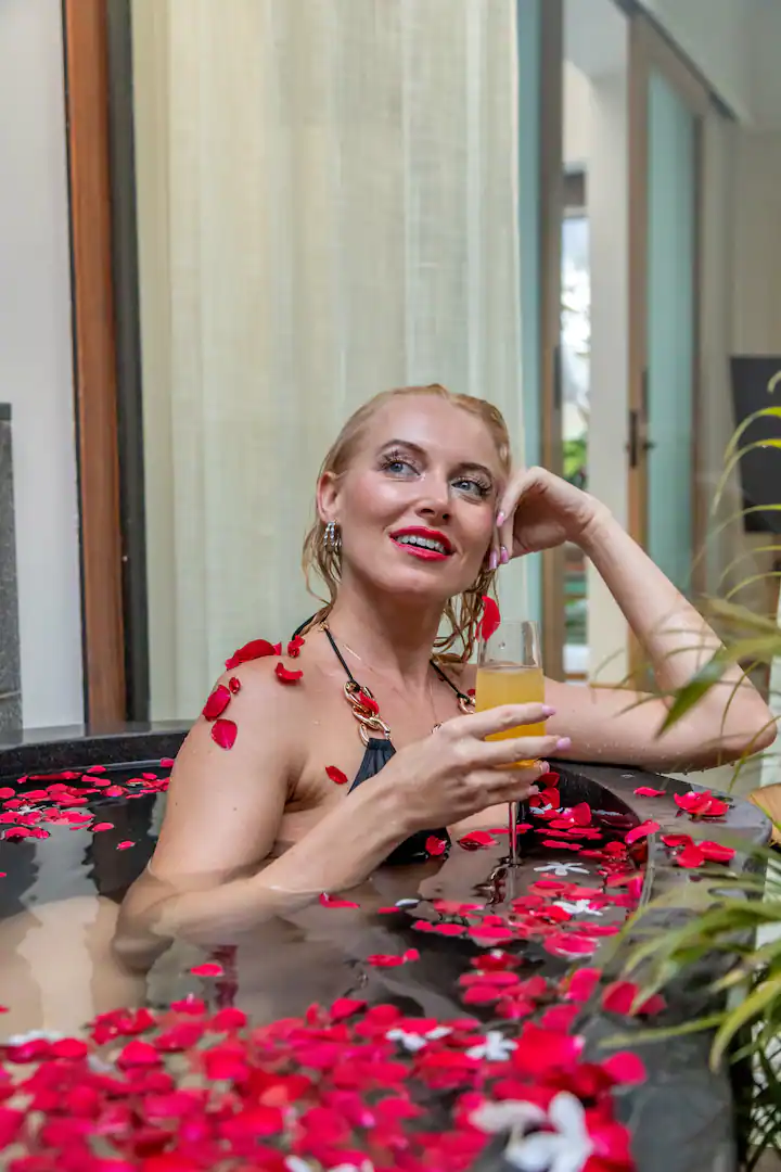 Each villa features modern amenities including complimentary Wi-Fi, air conditioning, television, a fully equipped kitchen or kitchenette, and an elegant private bathroom. Guests can also enjoy daily housekeeping, 24-hour security, free self-parking, and access to a full-service spa.