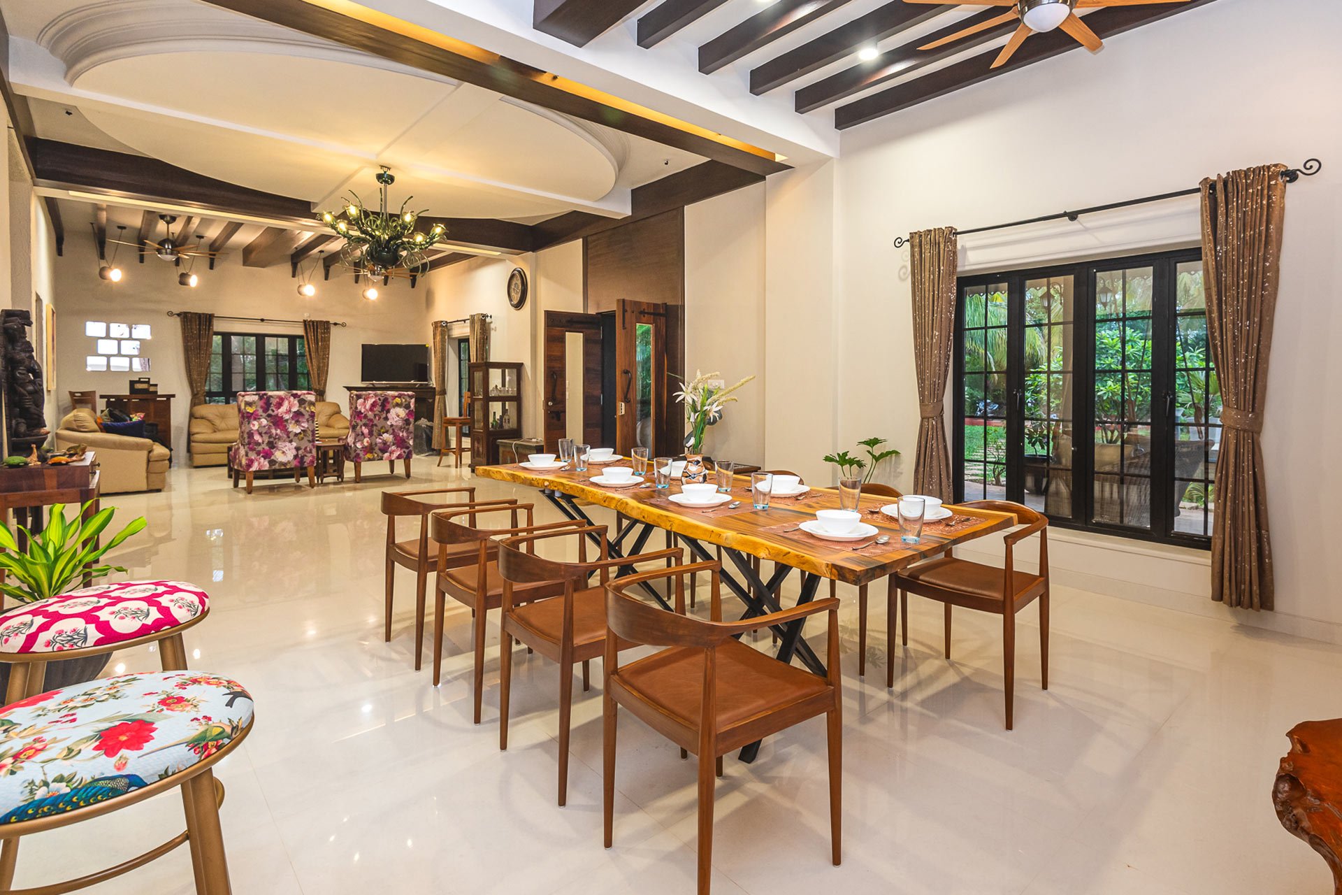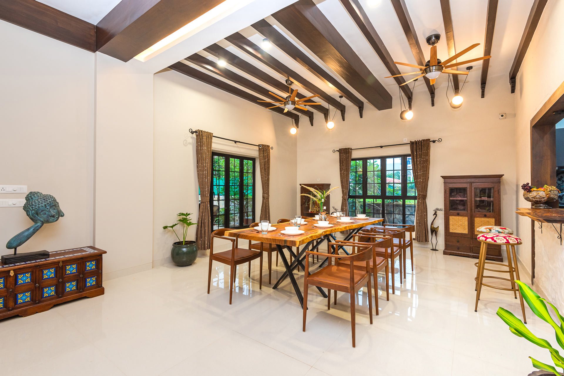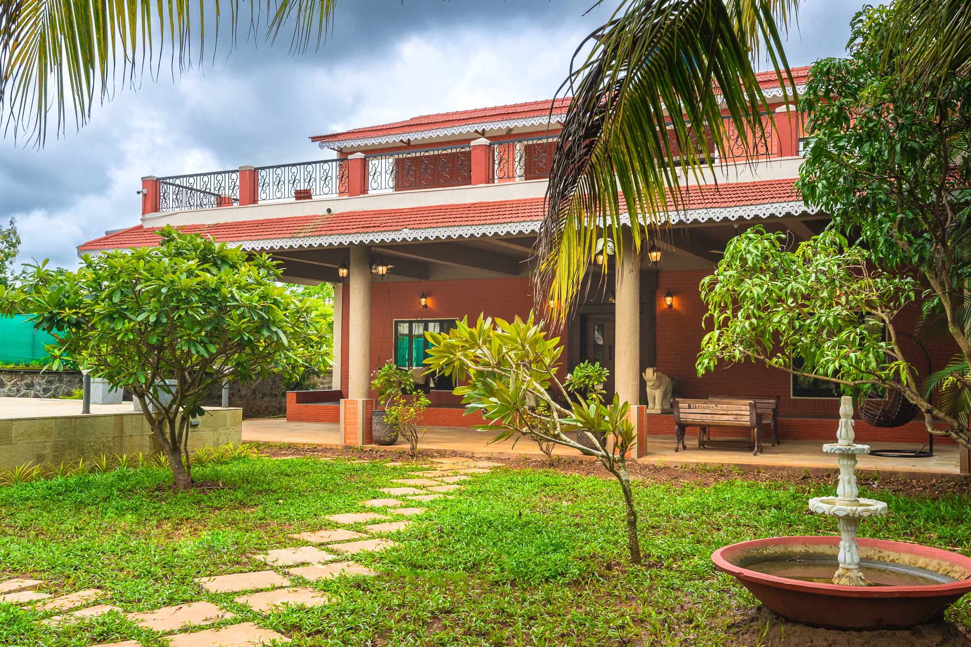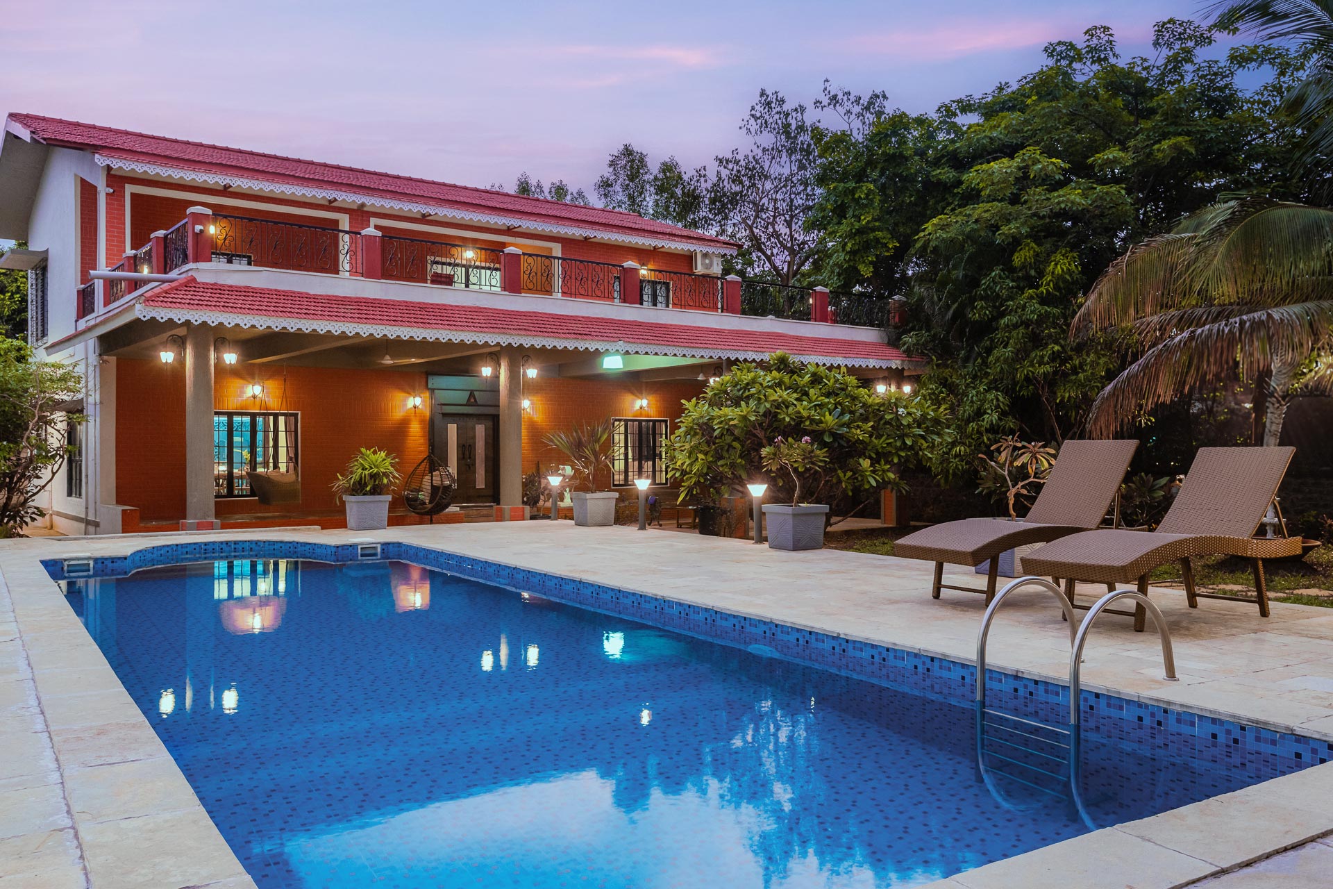 Greenscape Grandeur is a timeless getaway in Alibaug where the rustic decor artfully captures the allure of the past. This home welcomes you with a tranquil outdoor swimming pool and inviting seating areas to soak up the sun and take in the view. The lush green lawn encourages you to enjoy picnics and outdoor activities with loved ones while surrounded by nature’s peace.