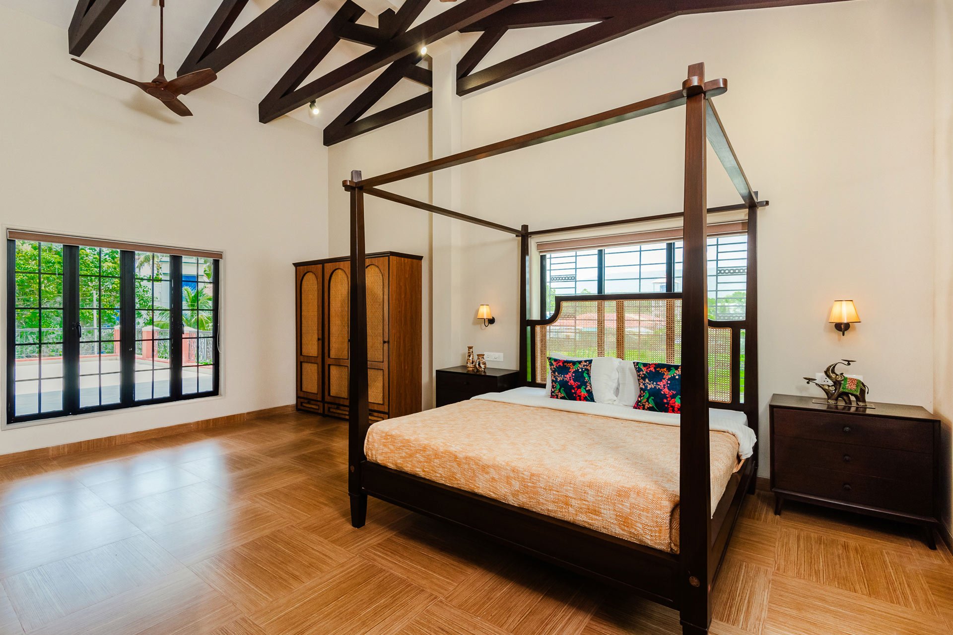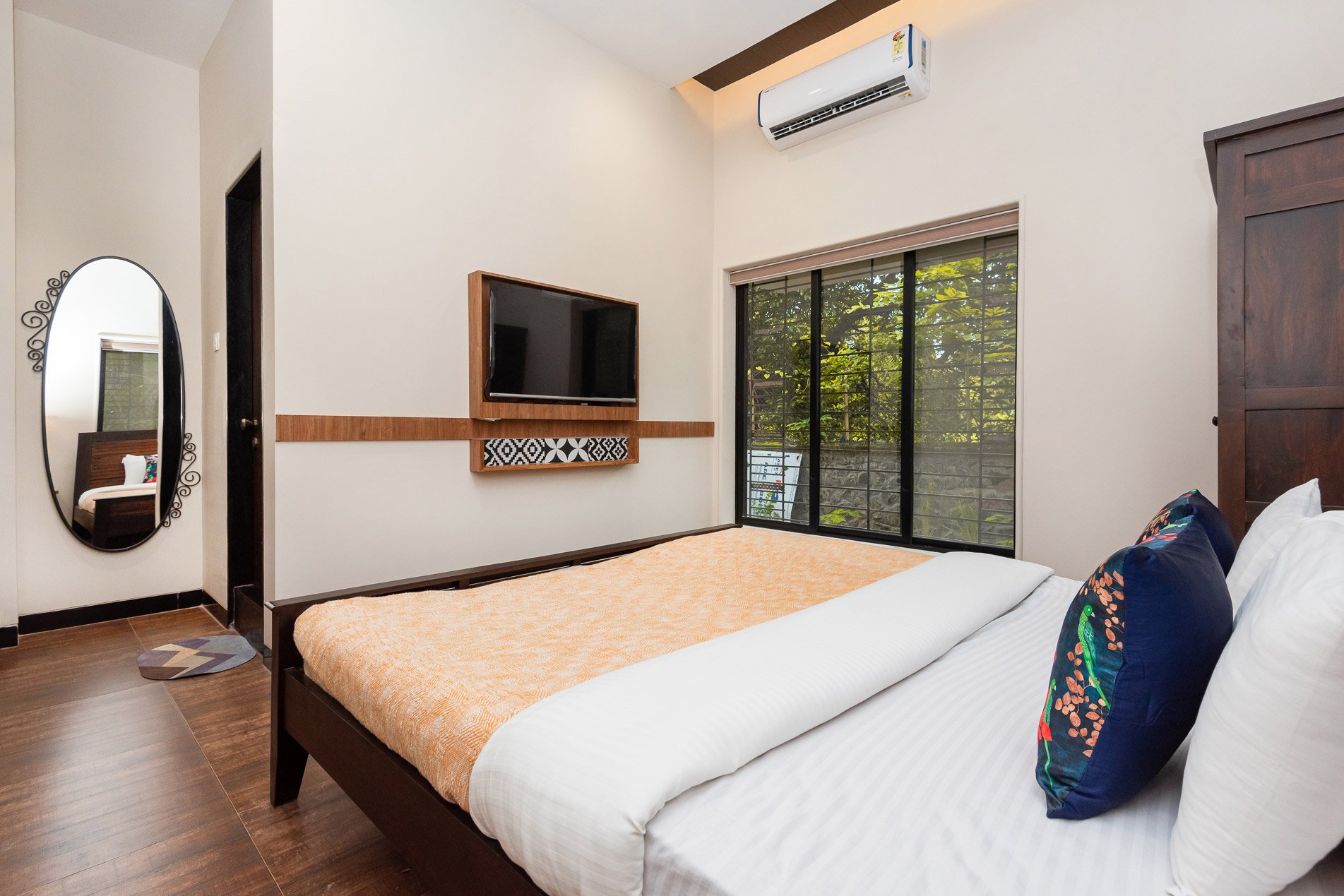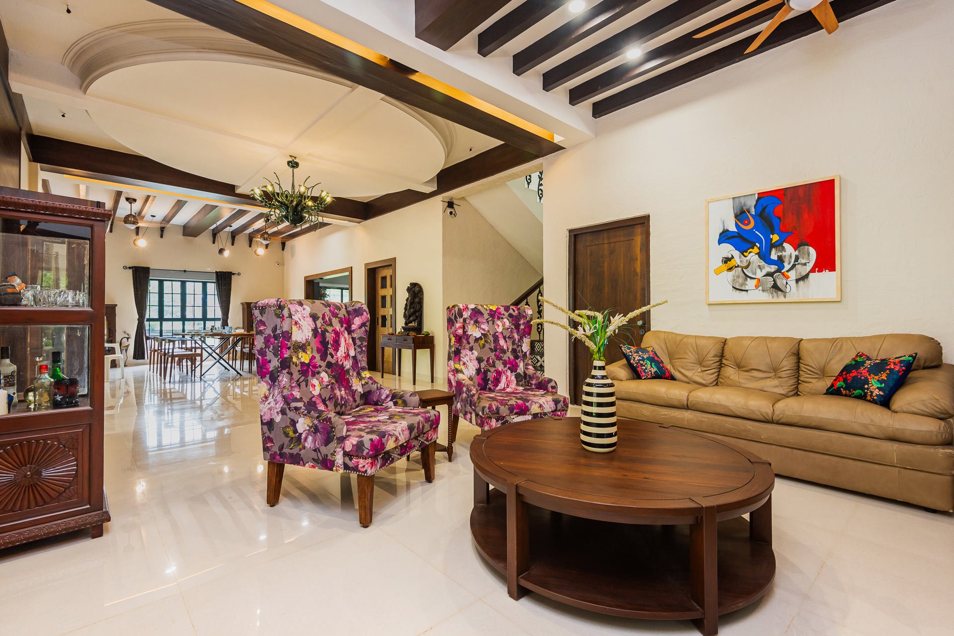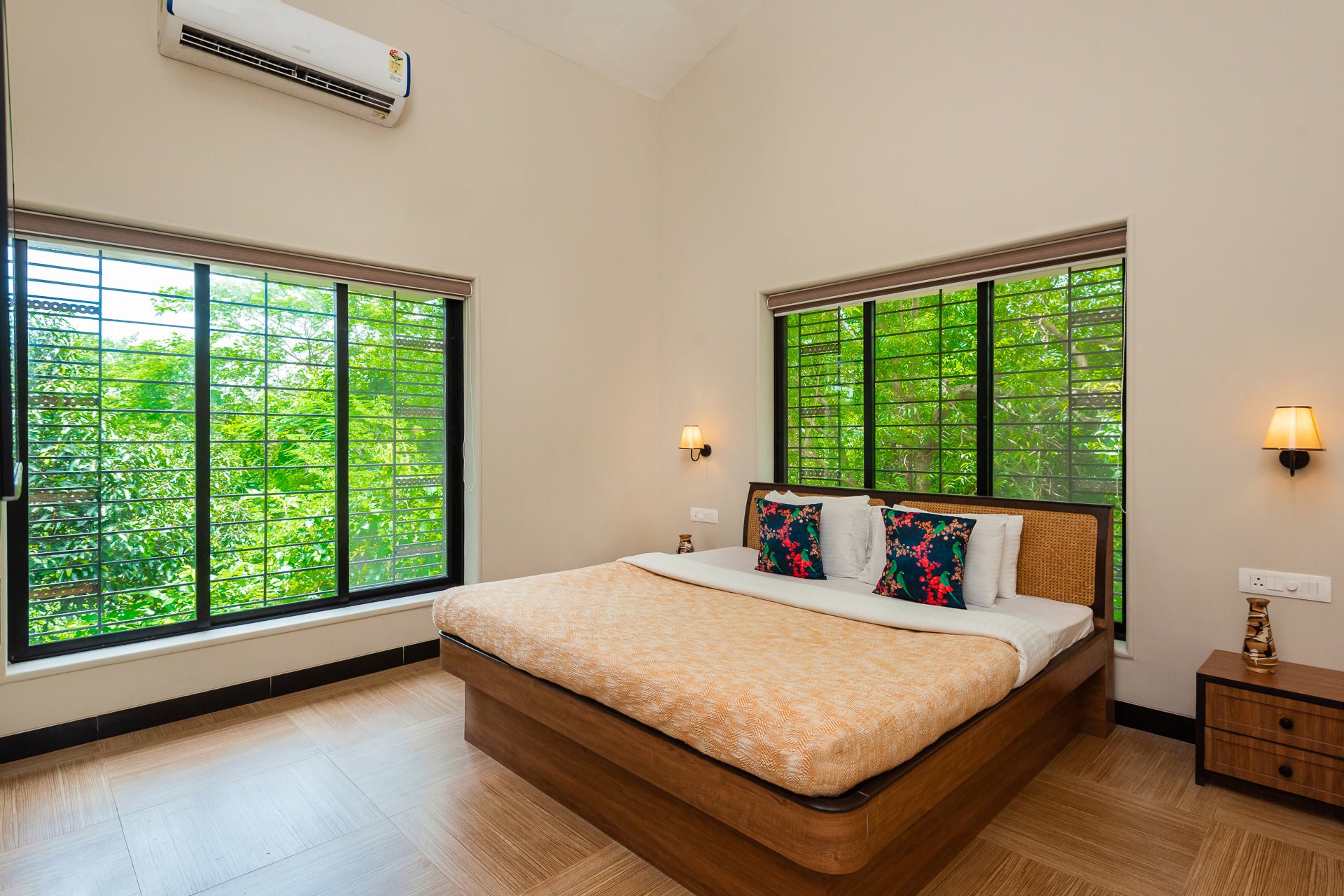 Greenscape Grandeur is a timeless getaway in Alibaug where the rustic decor artfully captures the allure of the past. This home welcomes you with a tranquil outdoor swimming pool and inviting seating areas to soak up the sun and take in the view. The lush green lawn encourages you to enjoy picnics and outdoor activities with loved ones while surrounded by nature’s peace.