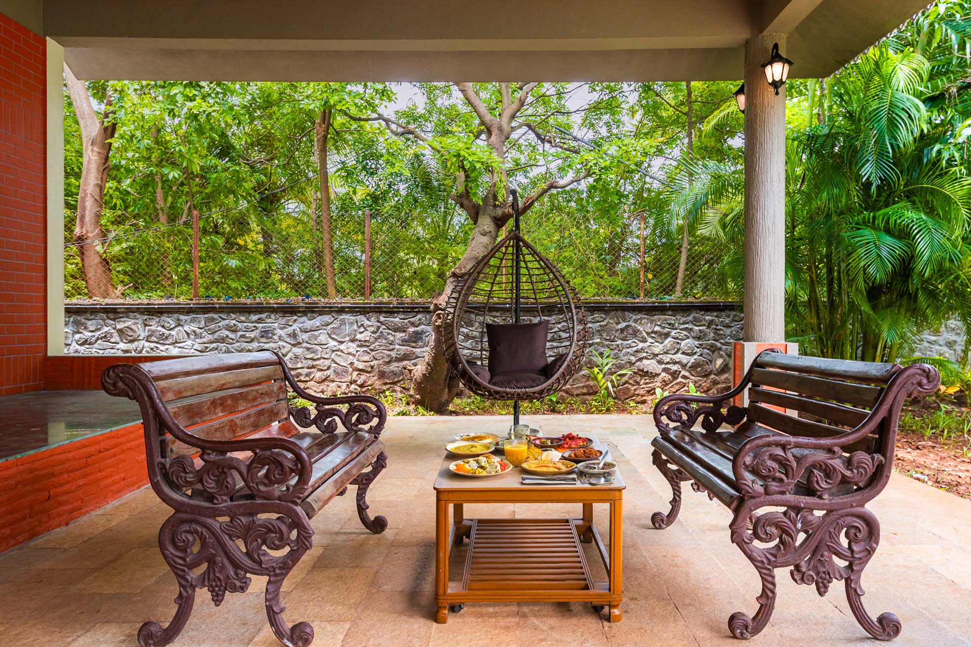 As soon as you enter, the retro atmosphere and contemporary installations meld together perfectly, adding an upscale touch to your stay. As the sun begins to set, make your way up to the expansive terrace for a clear view of the magnificent surroundings so you can take in the scenery’s grandeur and the sky’s shifting colours. This Alibaug resort is a haven that combines the beauty of bygone eras with modern luxury, guaranteeing each visitor a unique experience.