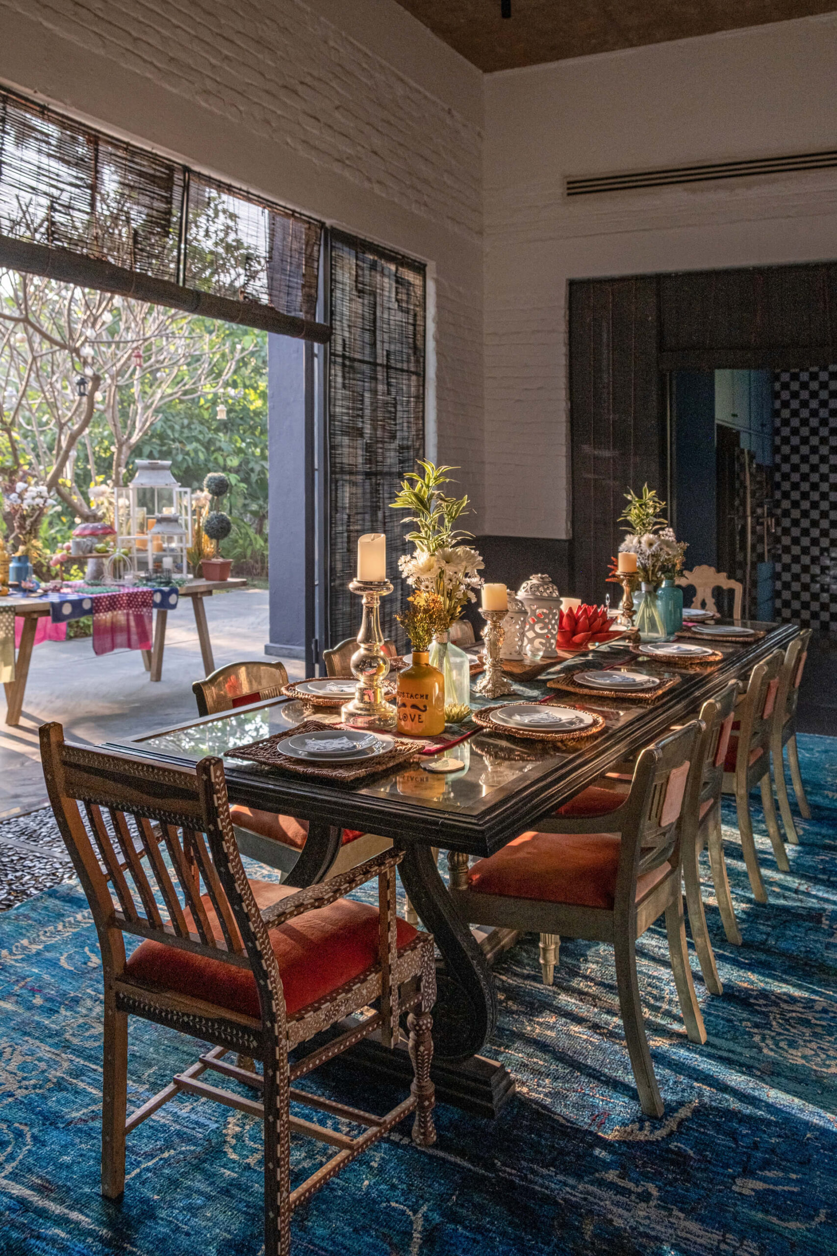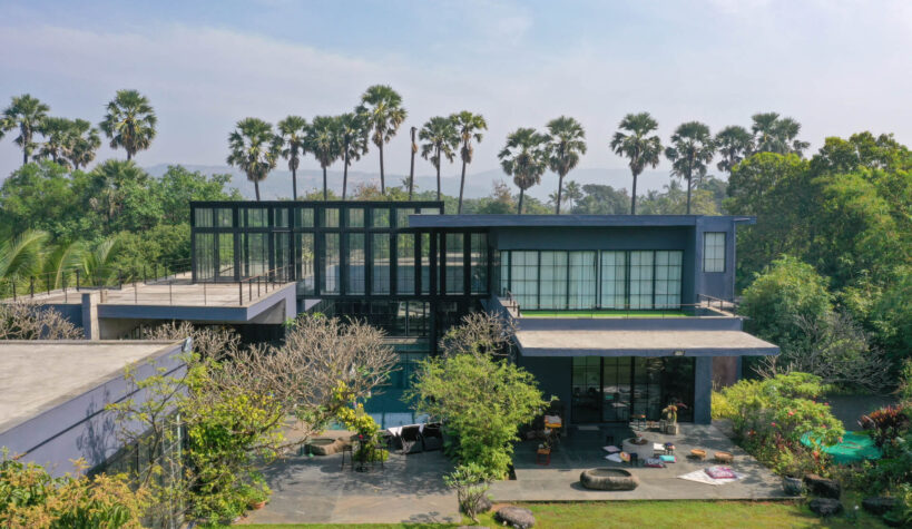 Built on the tenets of California Modernism, Greystone Manor, located in Awas, Alibaug, is a grand 5-bedroom villa that gracefully blurs the boundaries between indoors and outdoors. The transparent glass panels and the clever layout, centered around the pool, encourage interaction and spending time with loved ones. The colourful Bohemian decor strikingly contrasts the grey coloured exterior which echoes the indigenous rocks. For an intimate gathering with friends, the outdoor bar and seating areas will make the perfect setting, while the expansive lawns and dedicated games room will make for an unforgettable holiday with the family.