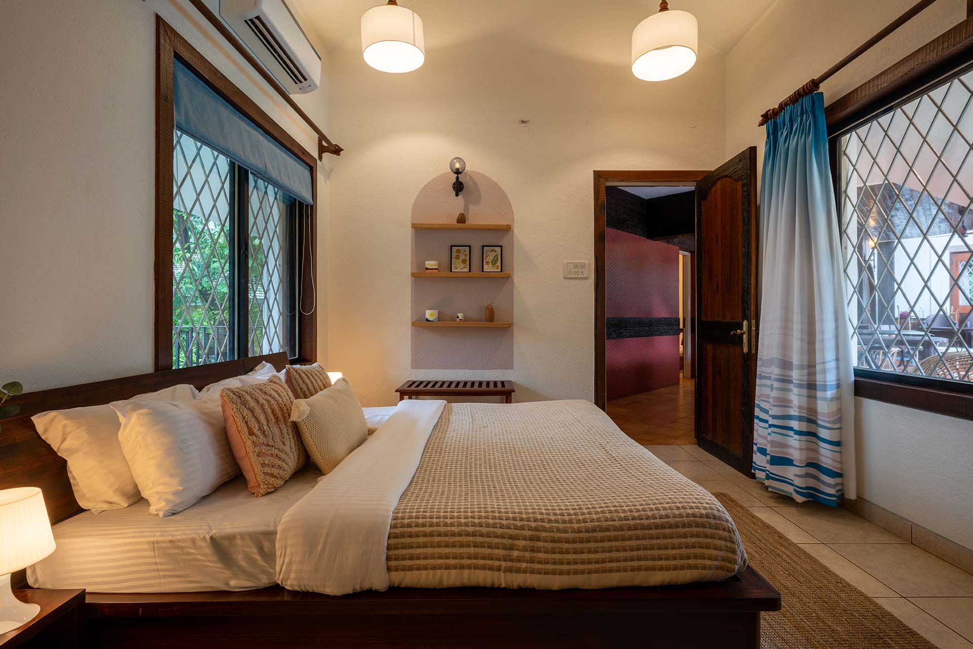 This beautiful home includes lots of common areas and spacious rooms. Get up to the sound of birds singing, take a stroll on the grass to take in the peaceful surroundings, and get a cup of your favourite beverage to enjoy with family and friends on the balconies. This elegantly stylish home offers a wide range of articles for the guests to enjoy and fill their albums with innumerable memories. This property is truly a great vacation spot for couples or families.