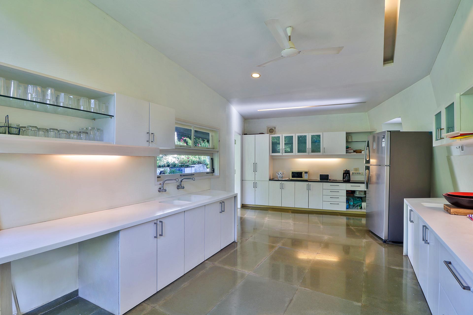 – The kitchen is equipped with a water purifier, crockery and cutlery.