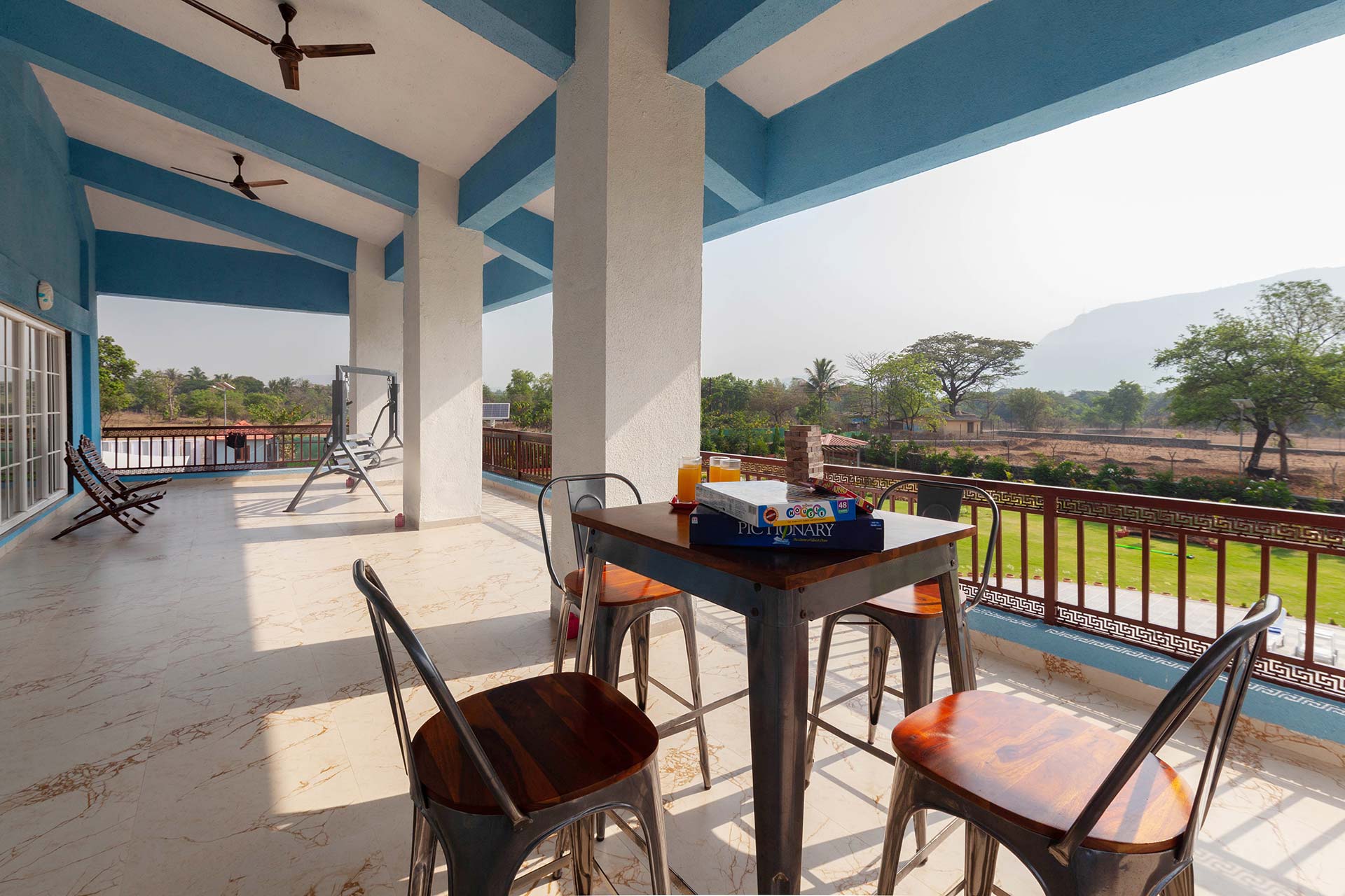 Nestled amidst tranquil mountainscapes and lush greenery, this stunning property offers a serene retreat for those seeking a peaceful getaway. With a spacious lawn perfect for barbecues and an ample swimming deck featuring a charming gazebo and seating areas, guests can soak up the sun and bask in the soothing waters of the pool. Panoramic windows throughout the property provide stunning views of the picturesque surroundings, while peaceful corners scattered throughout offer the perfect spot to relax with a book or play games with loved ones.