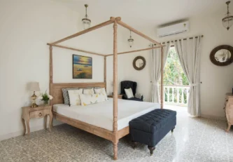 Igreha Villa B is surrounded by lush foliage which feels deeply restorative. During summers, you can see the tempting vermilion and golden hues of ripened mangoes dangling from the trees. In the spring, you can smell the aroma of fermenting cashew fruit on its way to becoming the locally made urak (also known as Goa’s Jungle Juice).