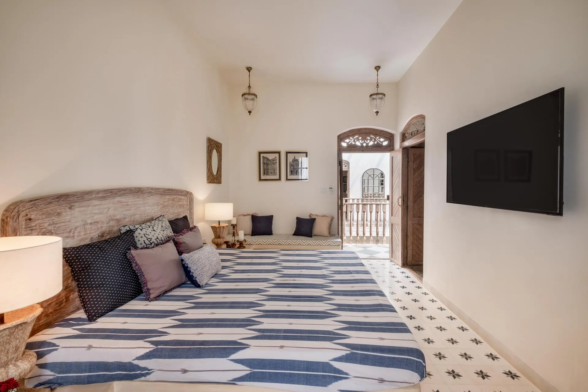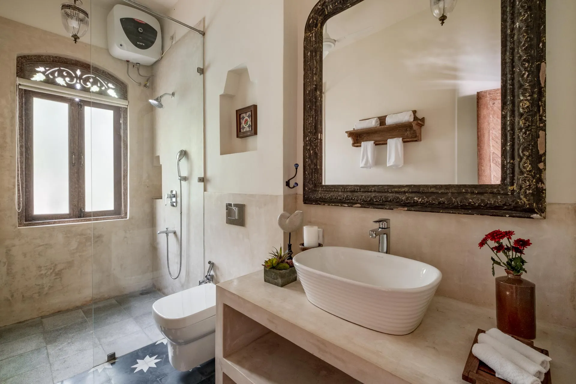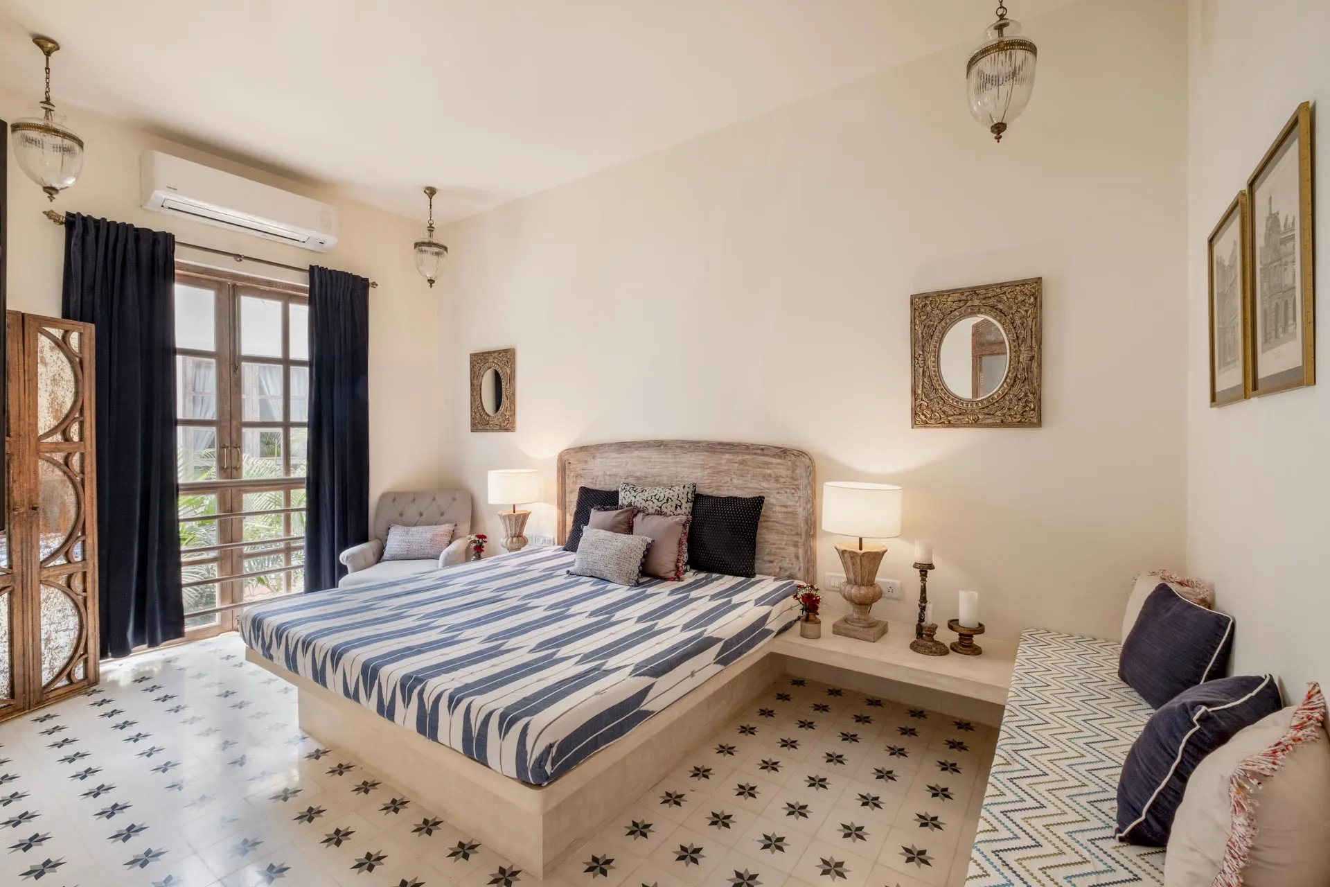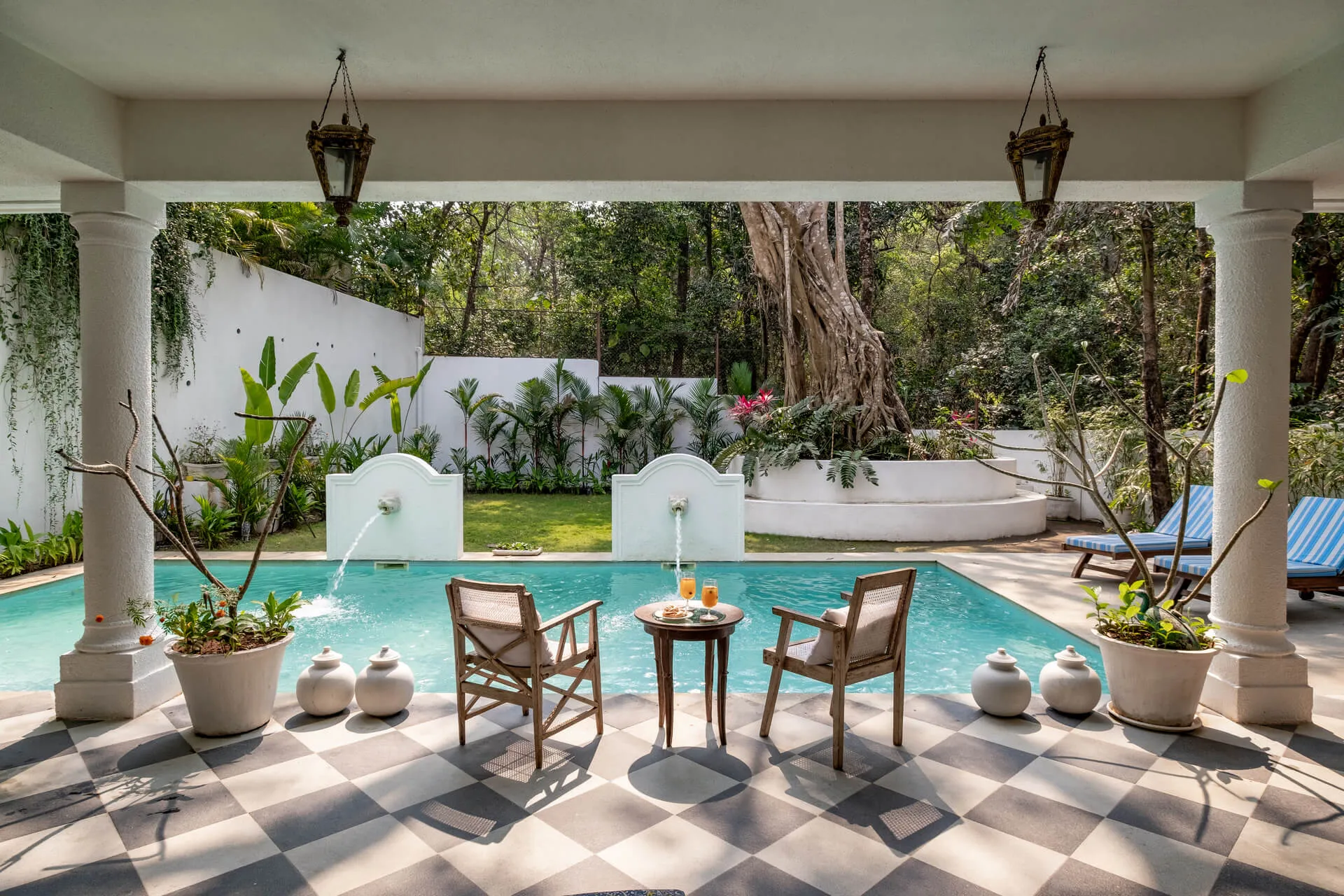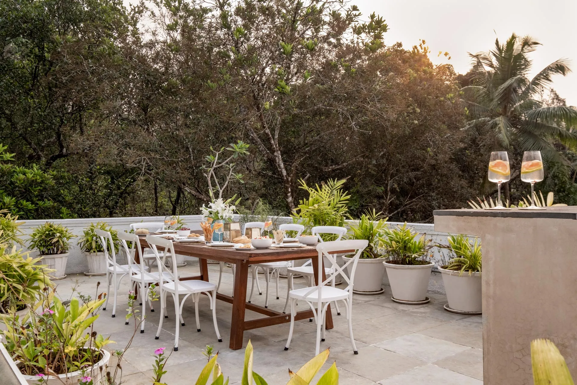 Igreha’s Villa F is surrounded by lush foliage which feels deeply restorative. During summers, you can see the tempting vermilion and golden hues of ripened mangoes dangling from the trees. In the spring, you can smell the aroma of fermenting cashew fruit on its way to becoming the locally made urak (also known as Goa’s Jungle Juice).