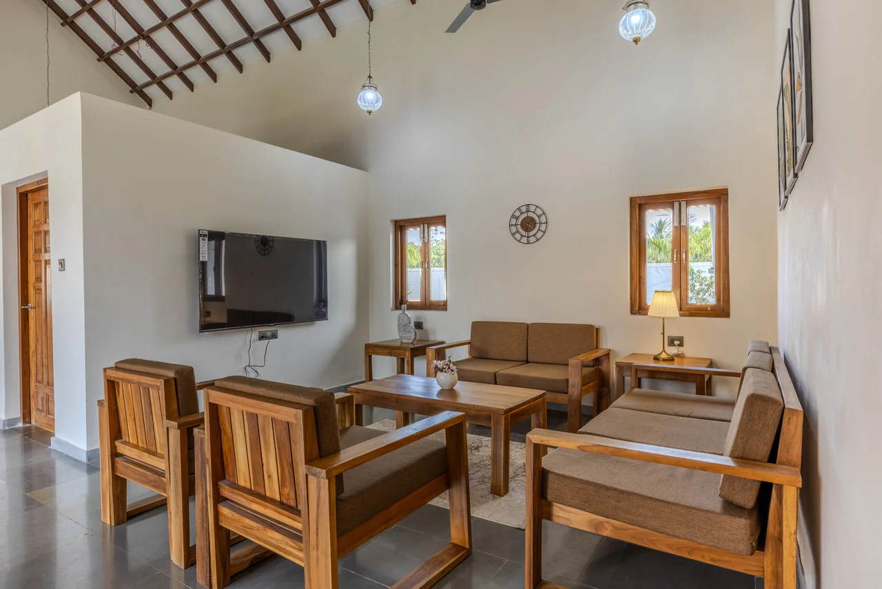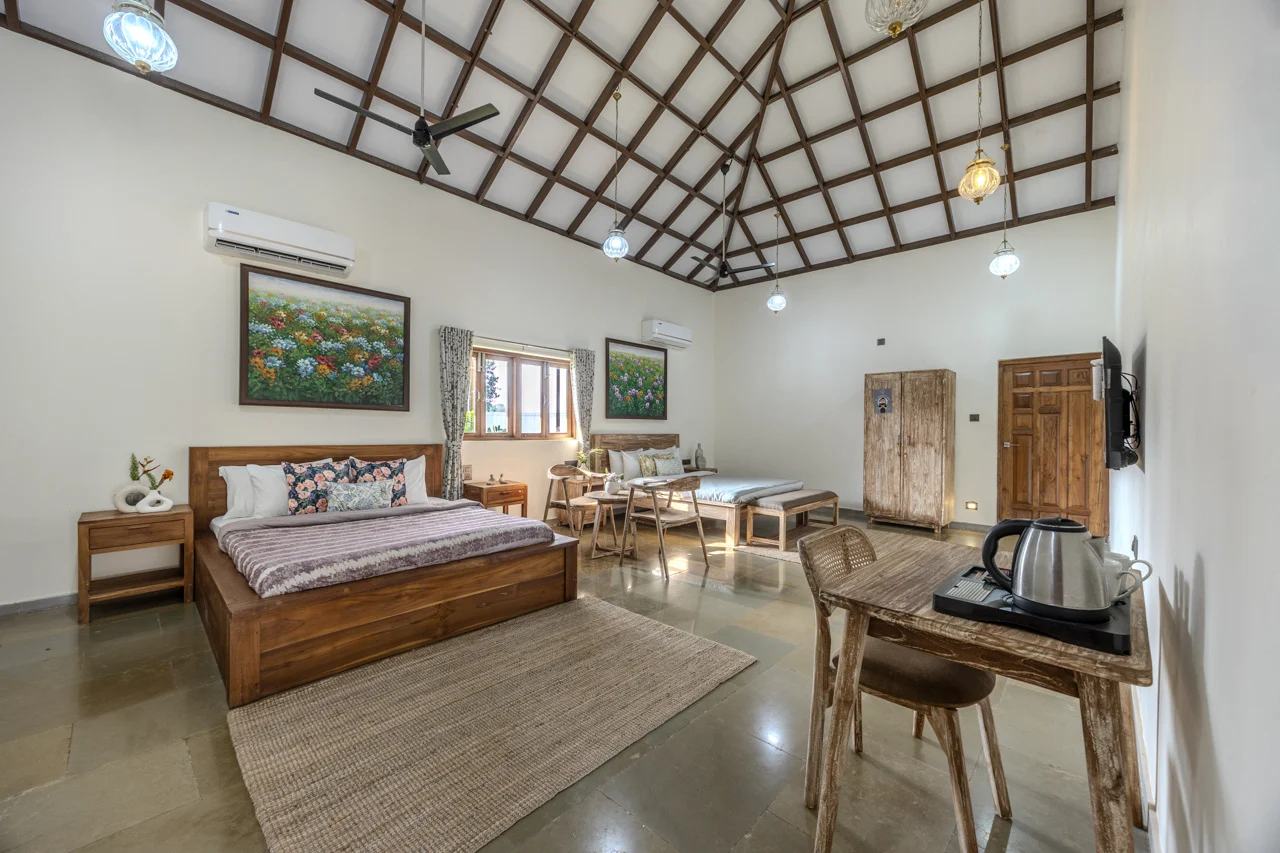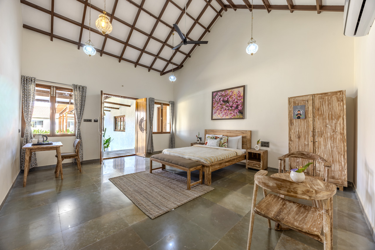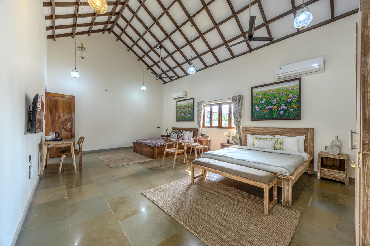 Earthy tones, handcrafted finishes, and tropical décor that capture the essence of Bali with Indian soul