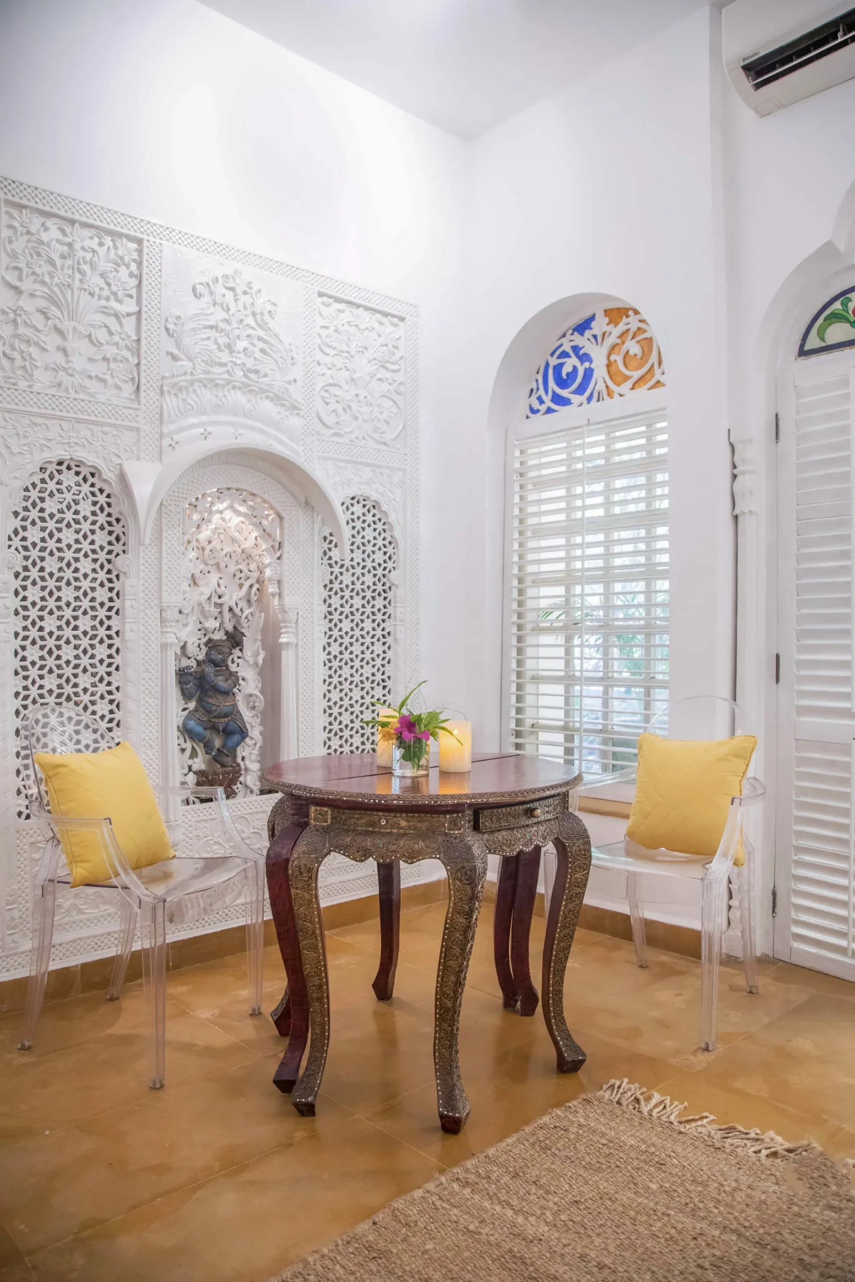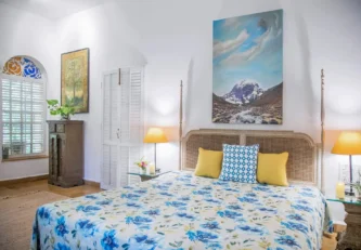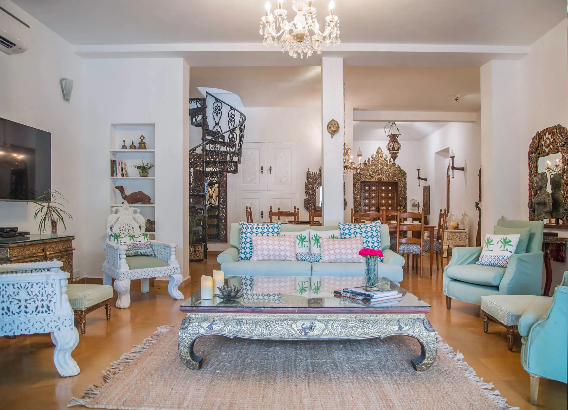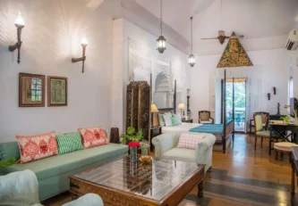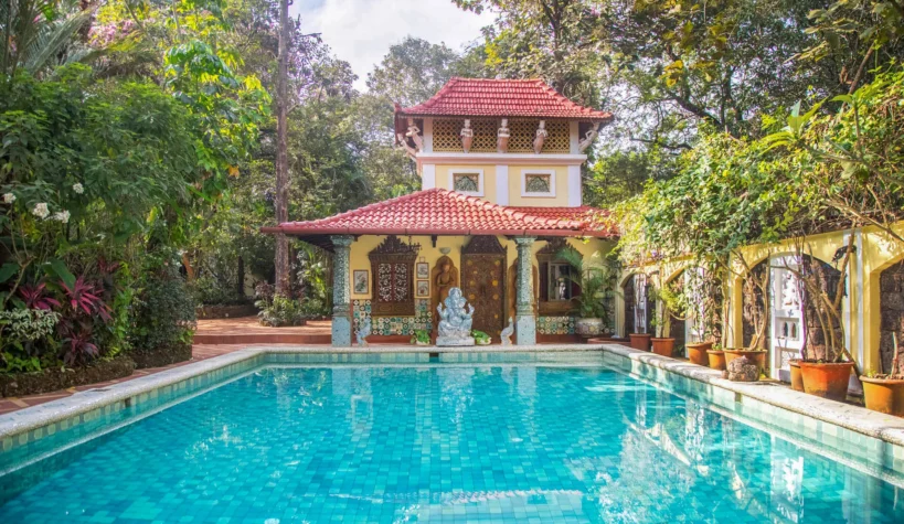 Settled amidst a lush macrocosm in Siolim, just minutes from the Chapora river, you’ll find the majestic Ishavilas. The Portuguese colonial architecture and handpicked artefacts contribute to making the villa a perfect blend of art and nature. With its seven grand bedrooms, stone statues that dress the garden, large private pool and personalized service, Ishavilas offers all the comforts of home along with an exotic and luxurious lifestyle. An ideal base to explore all that North Goa has to offer, it is a vibrant space that thrums with activities and also promotes wellness through a dedicated rejuvenation centre and Yoga Shala