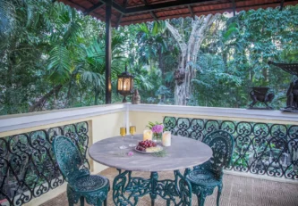 Villa H is a part of Fonteira, a gated community inspired by traditional Goan Vaddos. Located in the quaint town of Assagaon, also known as the “Beverly Hills of Goa”, the home is surrounded by lush greenery and adorned with luxury at every nook and corner. This 3-storey home features a naturally lit living and dining area, 3 ensuite bedrooms, a study, a gazebo and a self-sufficient kitchen for you to cook up a storm in. The home opens up into a beautiful pool area on the ground floor and a cozy terrace on the second floor, perfect for fun times with the kids and your partner or an exclusive evening soirée with your best pals.