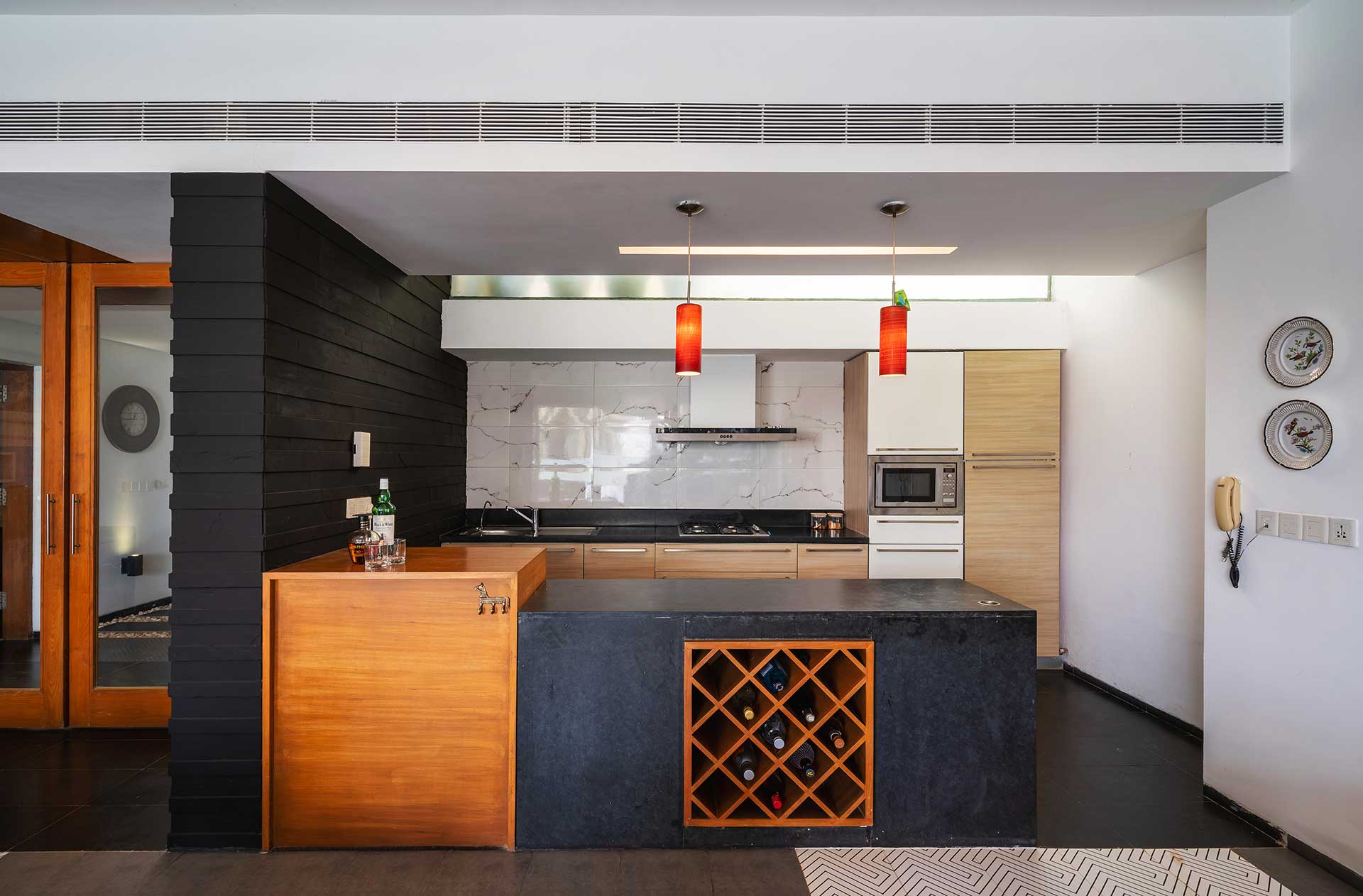 It is equipped with a microwave, gas stove, refrigerator, dishwasher, water purifier, toaster, electric grill and a mixer.
